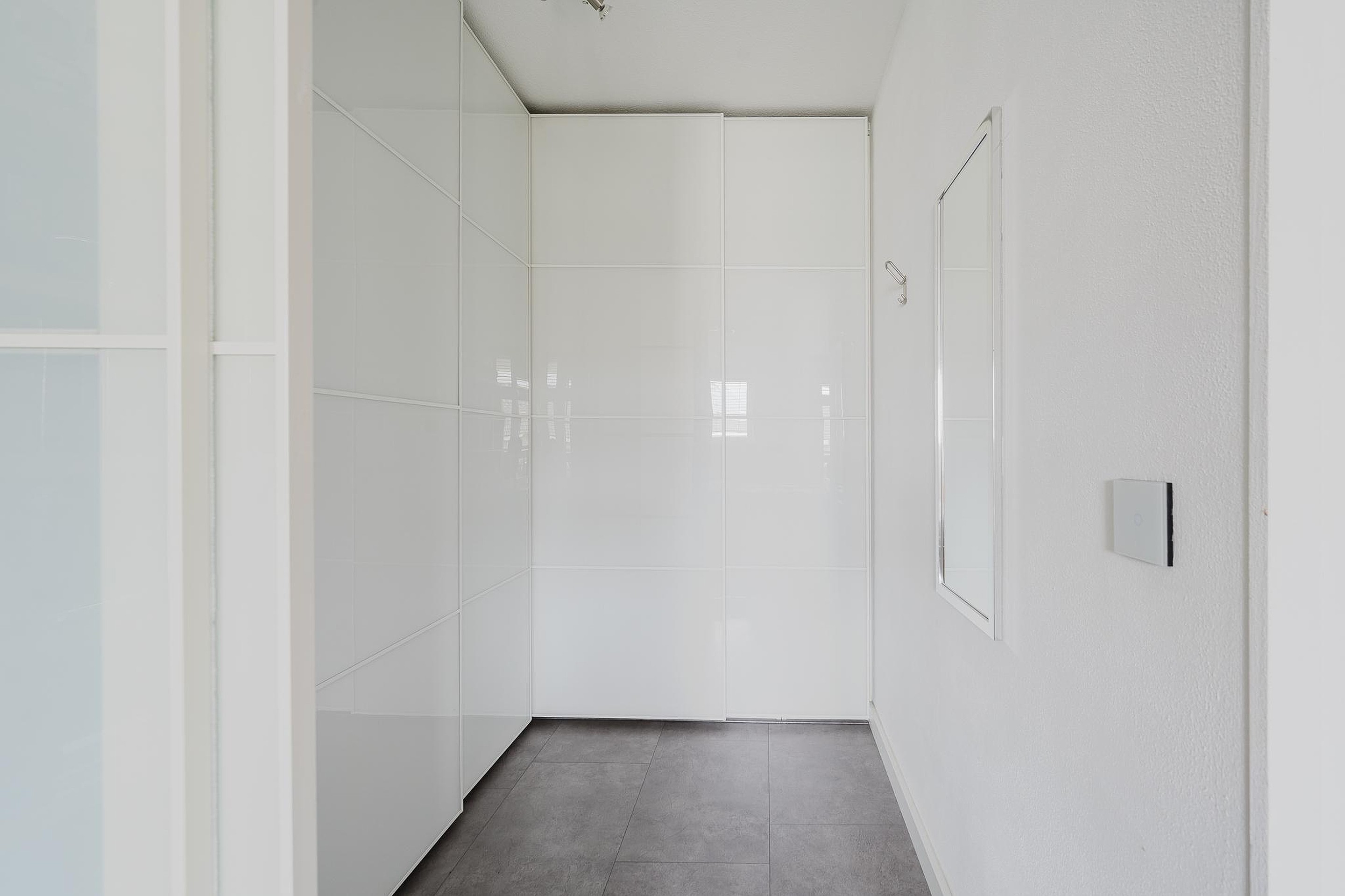 De woningentree biedt toegang tot de hal met garderobe en toegang tot het moderne toilet.