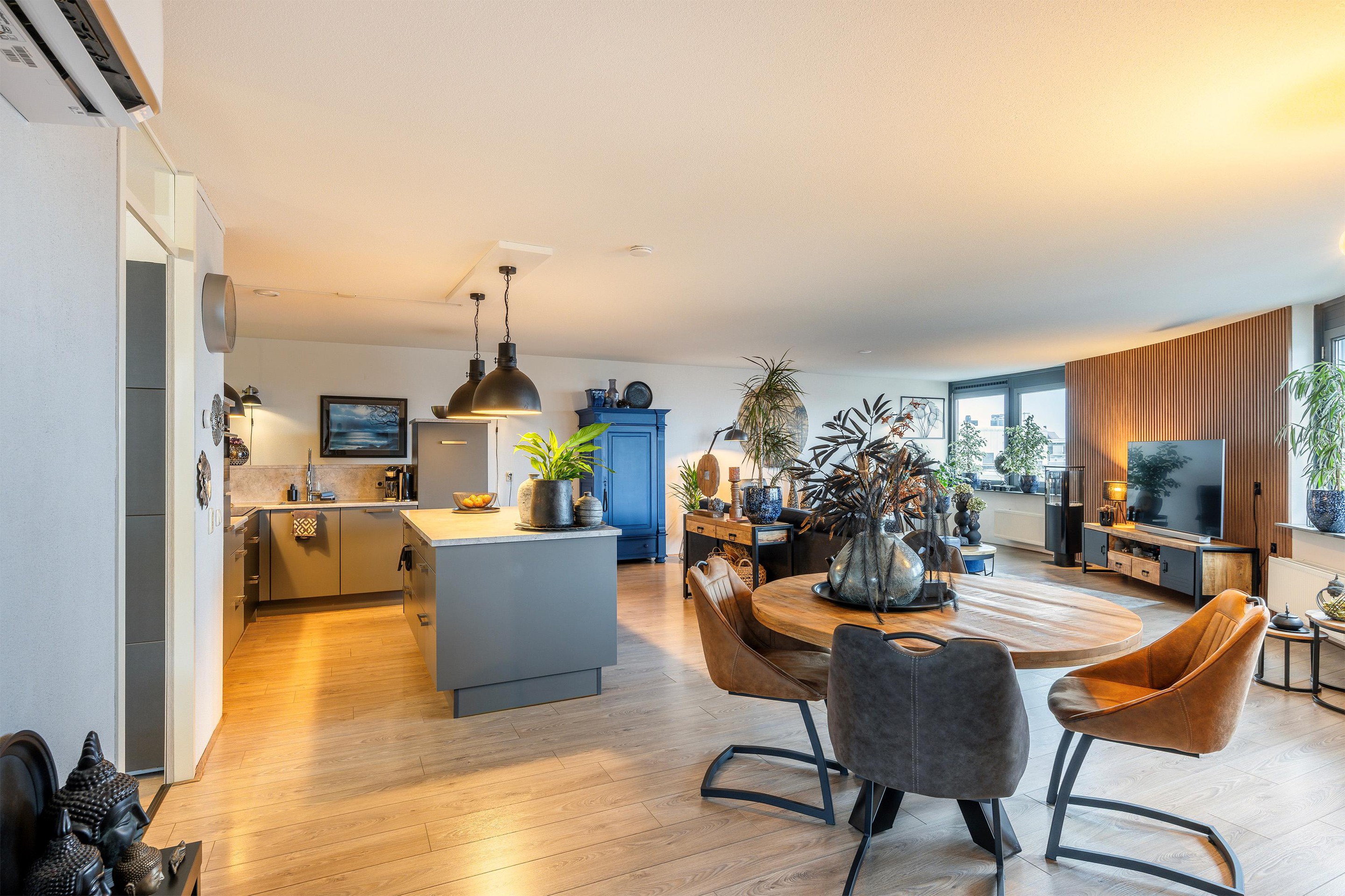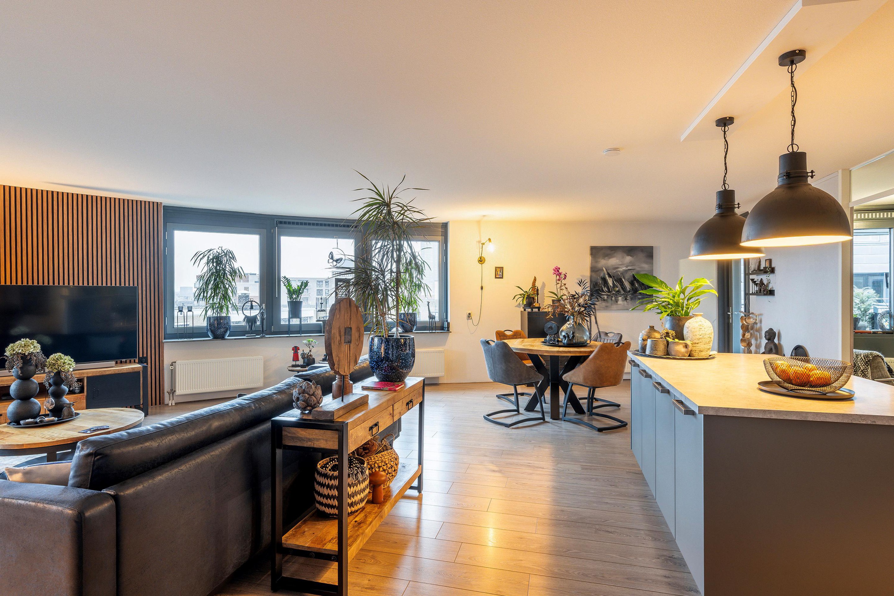 Bij binnenkomst word je meteen verrast door de enorme hoeveelheid daglicht die naar binnen stroomt. De grote ramen in de woonkamer stelen absoluut de show en bieden een panorama-uitzicht waar je elke dag weer blij van wordt. De woonkamer biedt volop ruimte voor een royale loungebank, een flinke eettafel en misschien zelfs een werkplek of speelhoek. Alles wat je nodig hebt om lekker te leven, vind je hier.