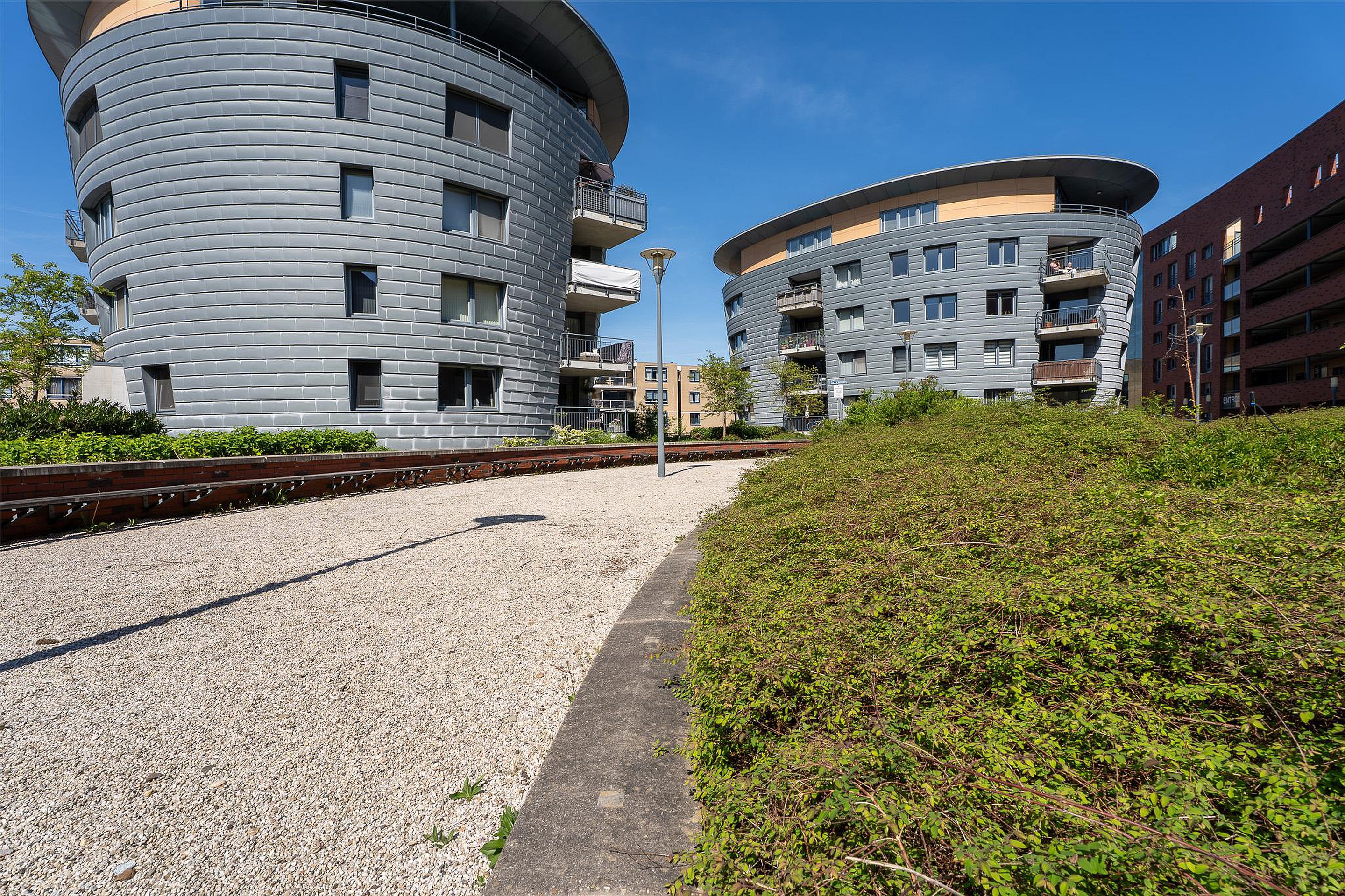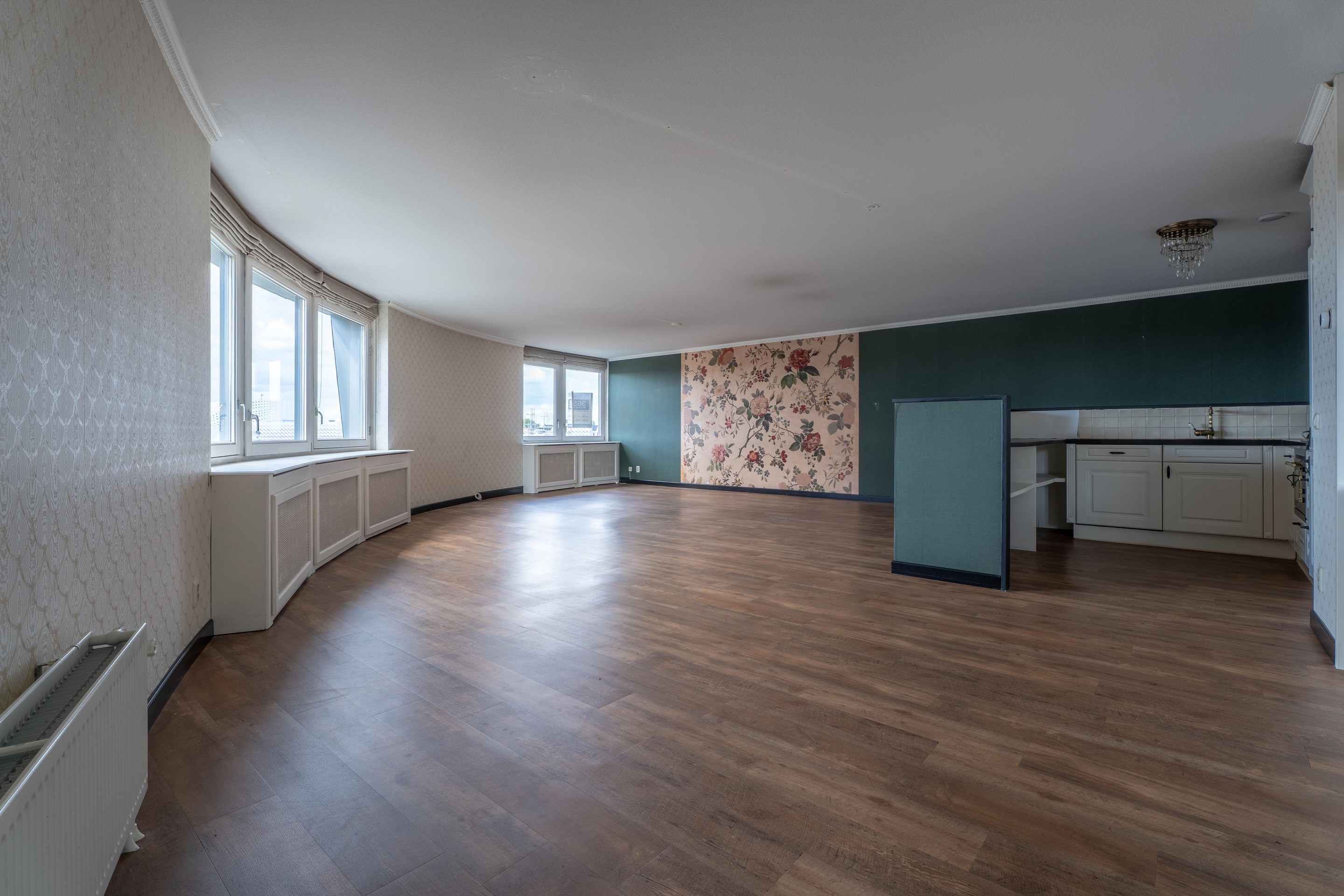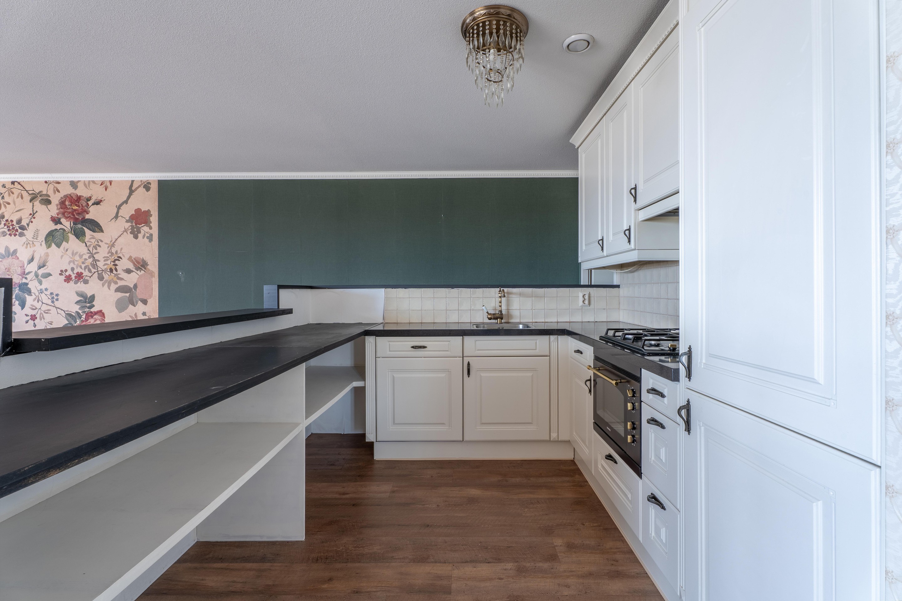 De woonkamer en open keuken vormen samen een indrukwekkende leefruimte van maar liefst 64 vierkante meter. De ronde wand met grote raampartijen zorgt voor een heerlijke lichtinval en een vrij uitzicht. De landelijke keuken is voorzien van een granieten werkblad, een vierpits gasfornuis, een combi-oven, vaatwasser en een koel-vriescombinatie. De hoofdslaapkamer is ruim opgezet en biedt directe toegang tot het balkon. De tweede slaapkamer wordt momenteel gebruikt als inloopkast of kastenkamer.