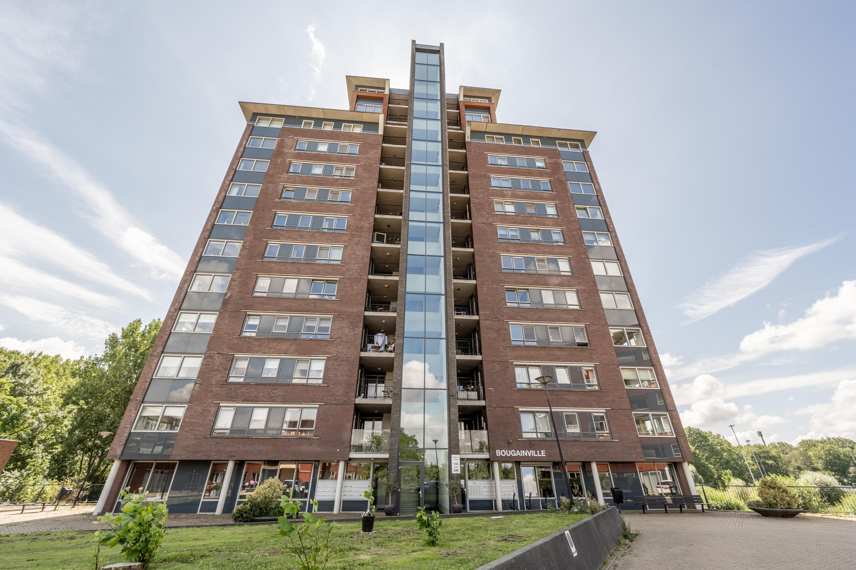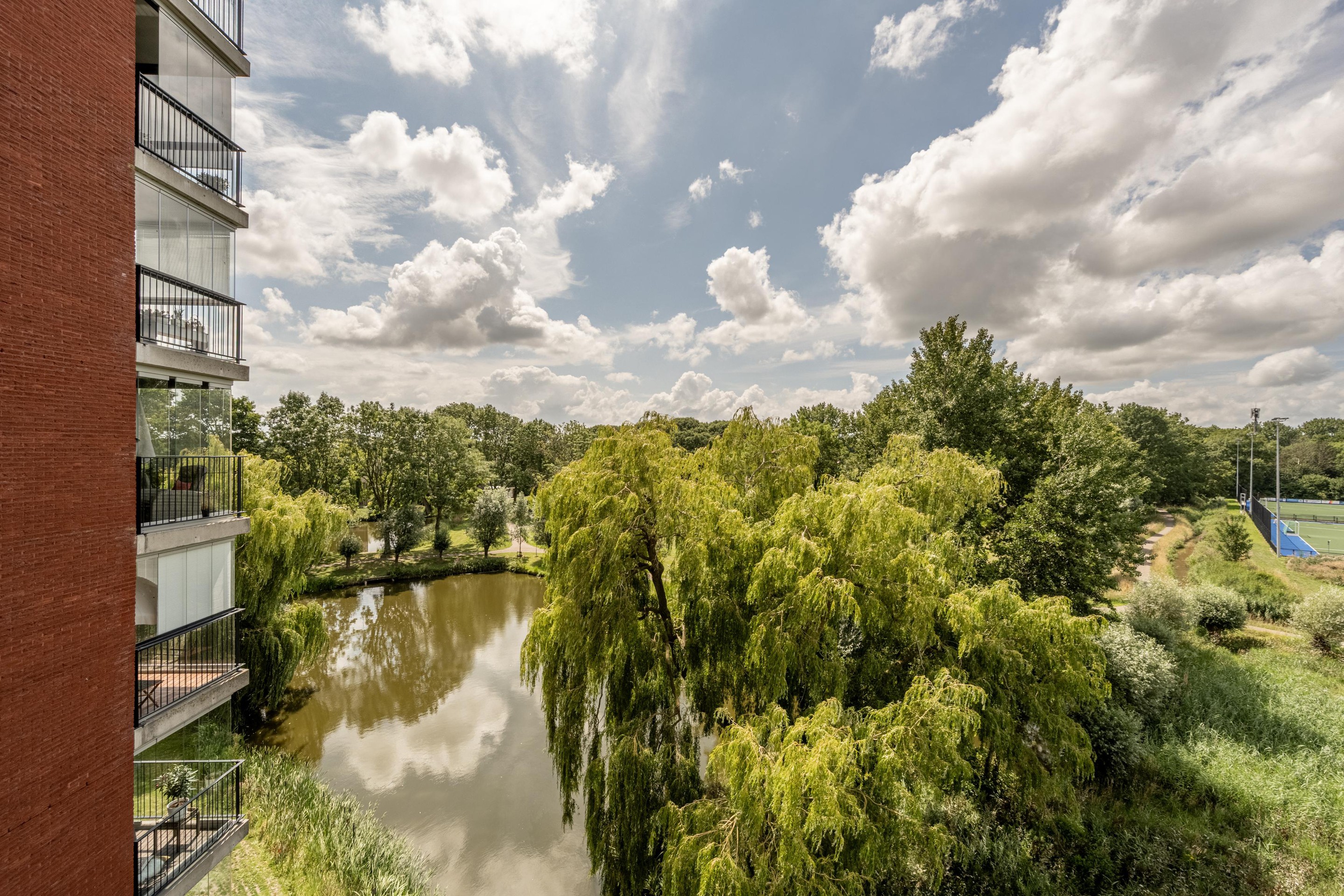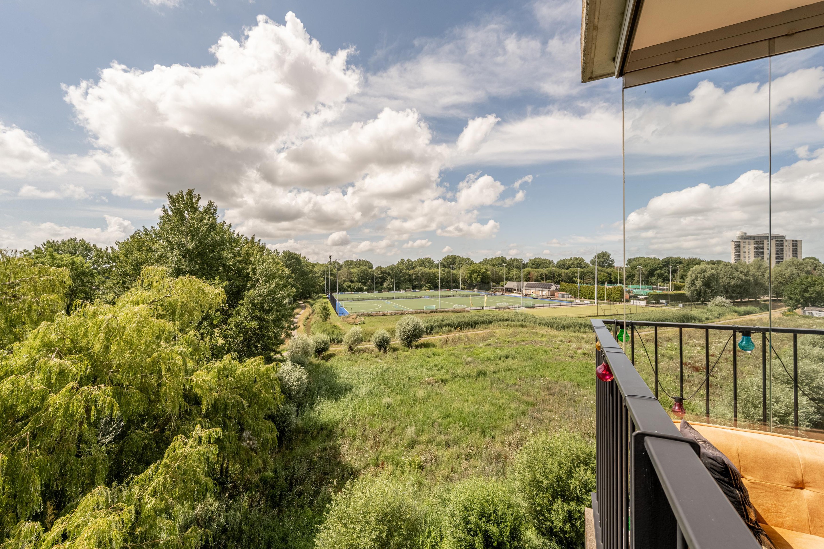 De Zomertuinen staat bekend om haar rustige en prettige karakter met speeltuintjes, grasvelden en autoluwe zones. Rondom het gebouw ligt een park met wandelpaden, waterpartijen en een tennisveld. Op slechts 200 meter afstand vindt u een hockeyclub en tennisclub met daarnaast ook moderne padelbanen. Overdag trainen hier scholen, ’s avonds sport de lokale jeugd en in het weekend zijn er regelmatig wedstrijden en toernooien. Vanaf het balkon kijkt u prachtig uit over deze sportvelden.