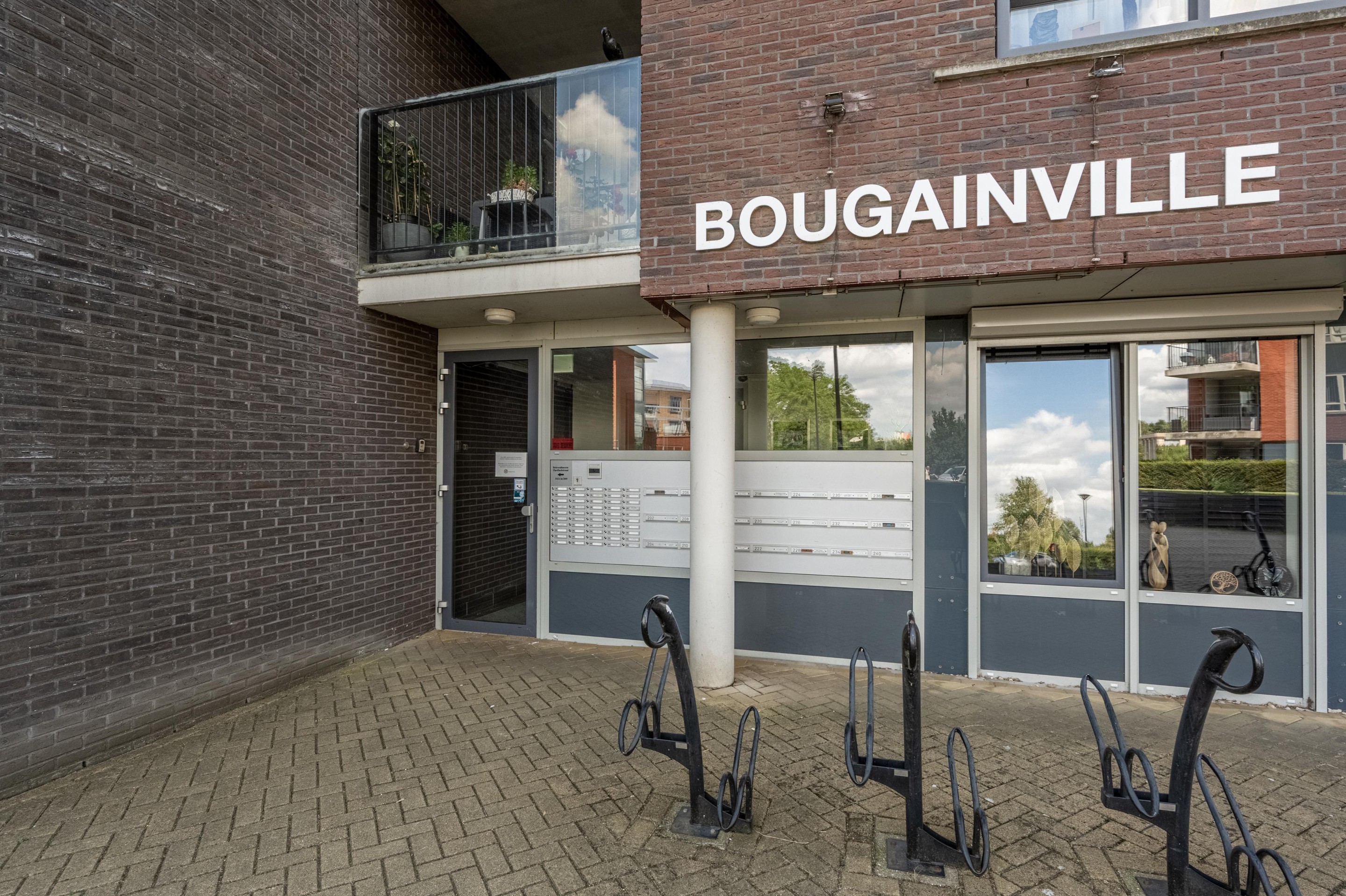 Je komt het complex binnen via de afgesloten entree met bellentableau, brievenbussen en toegang tot de lift en het trappenhuis.