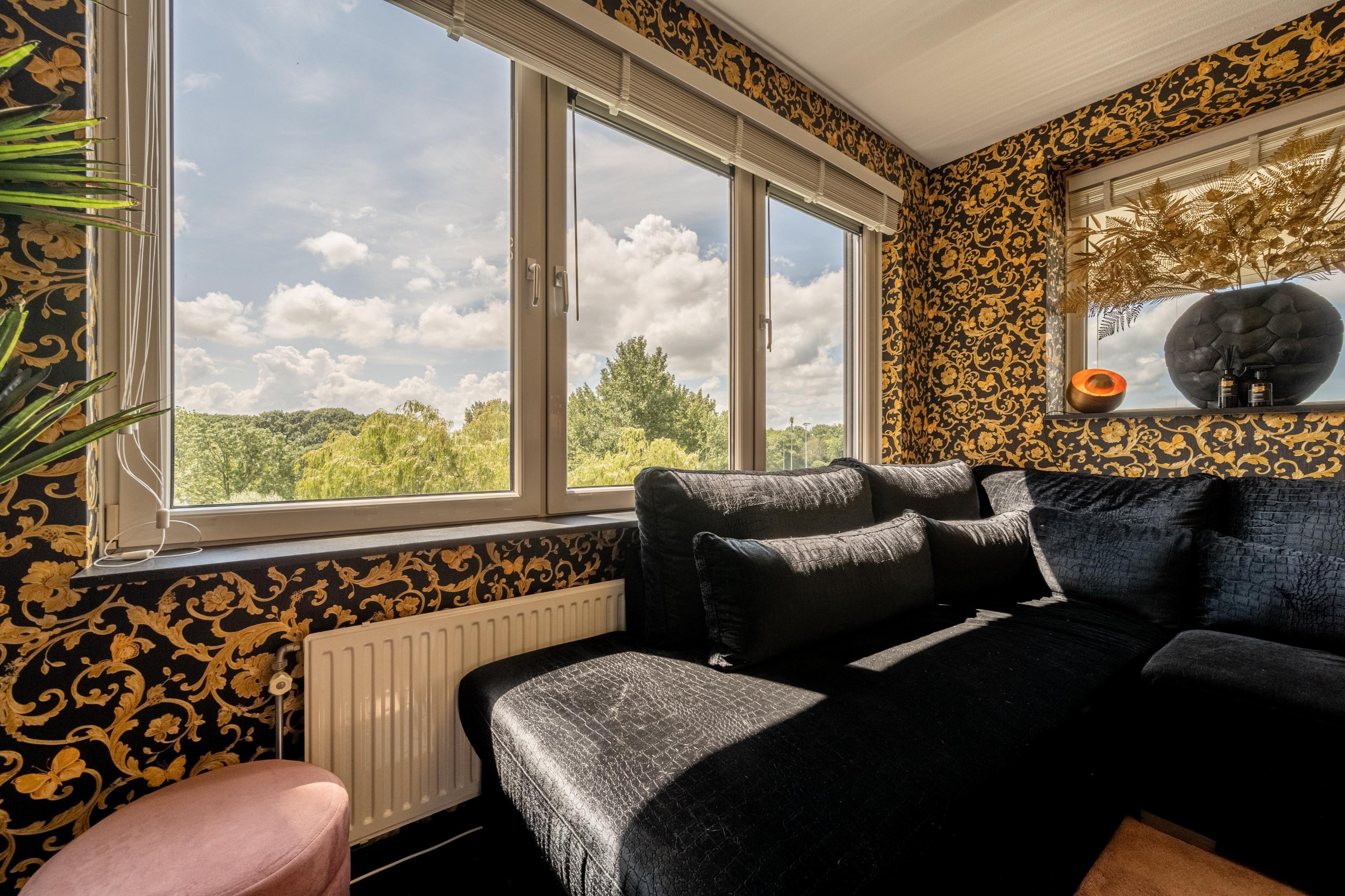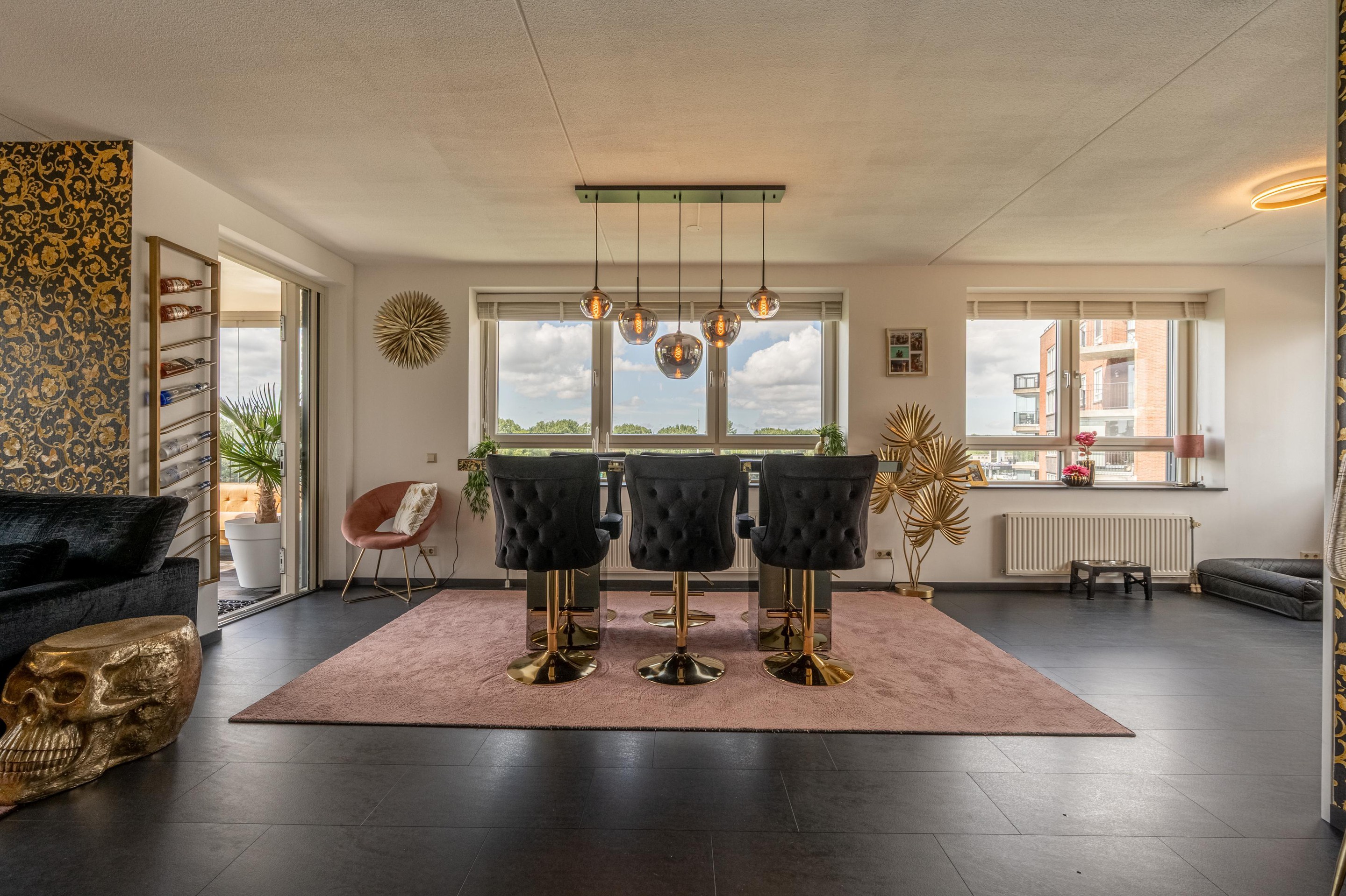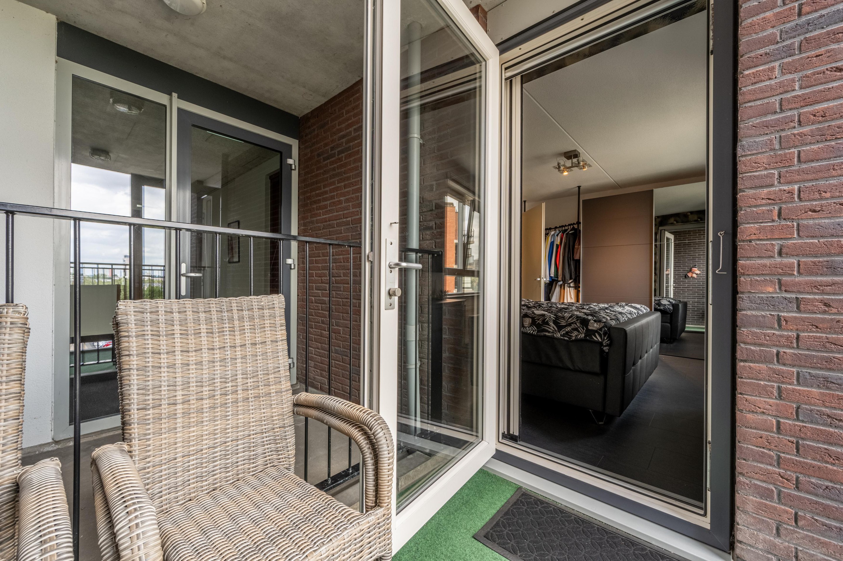 Via de woonkamer bereik je het westelijk gelegen balkon, dat is voorzien van afsluitbare glazen panelen. Zo geniet je het hele jaar door – zelfs in de winter – van het buitenleven en het uitzicht.