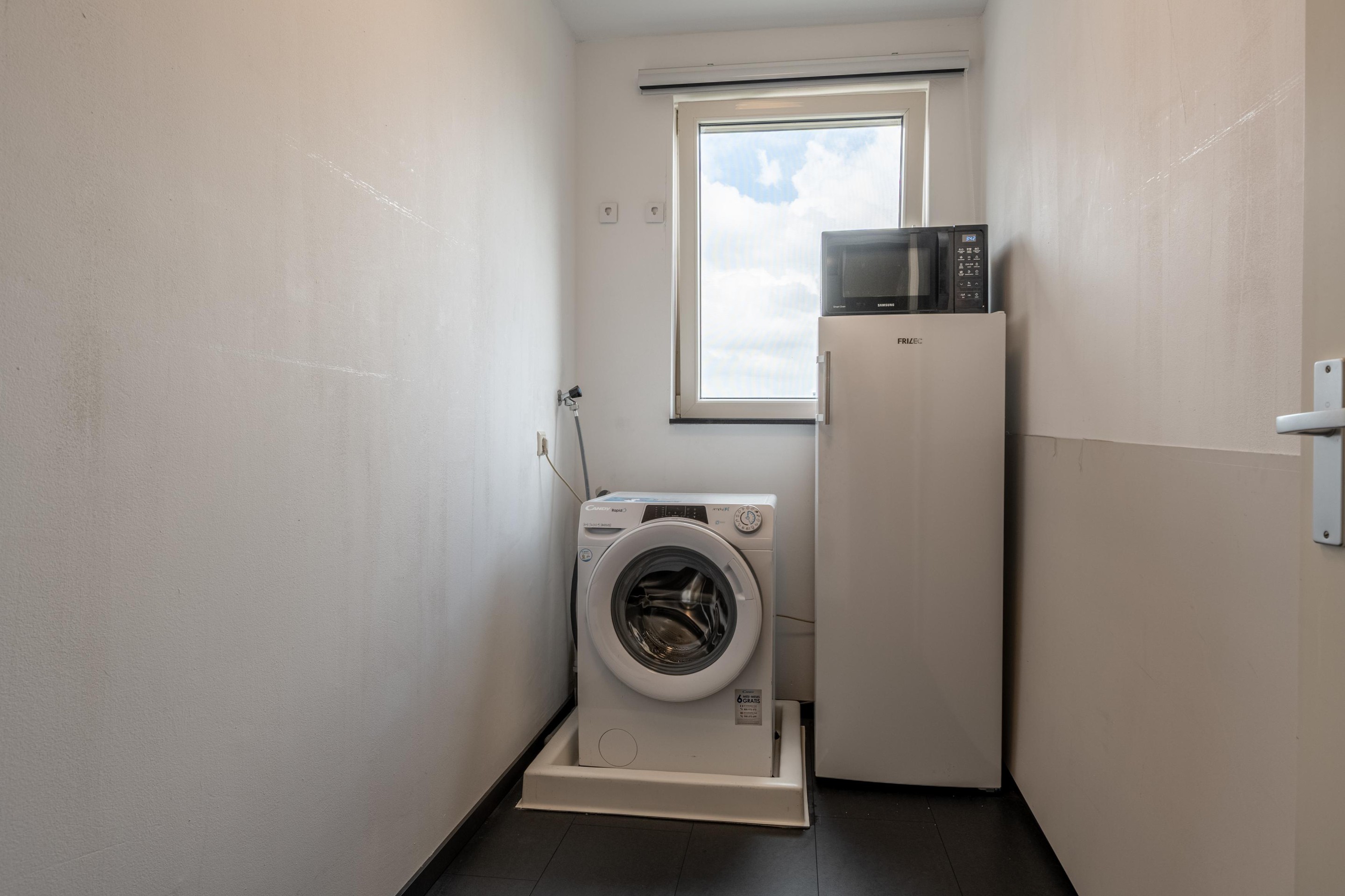 Daarnaast is er een aparte wasruimte met een raam, ideaal als extra bergruimte of waskamer.