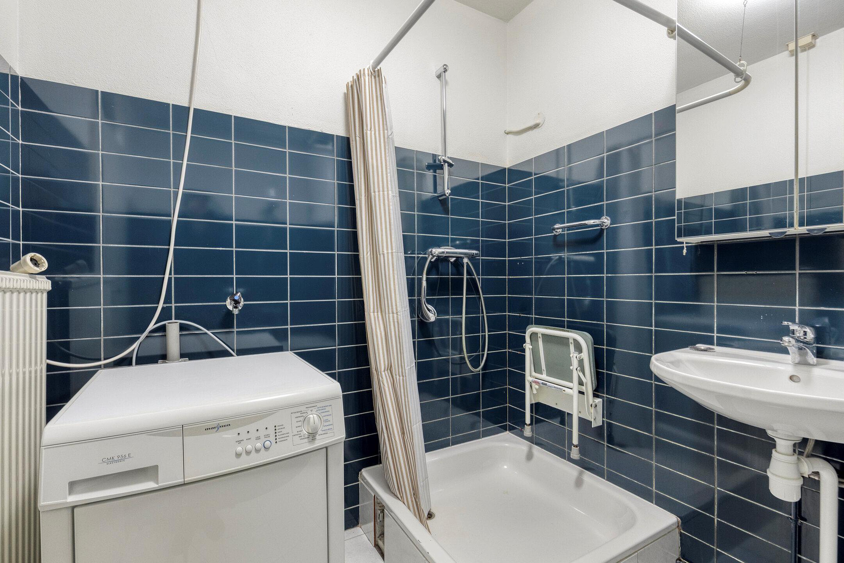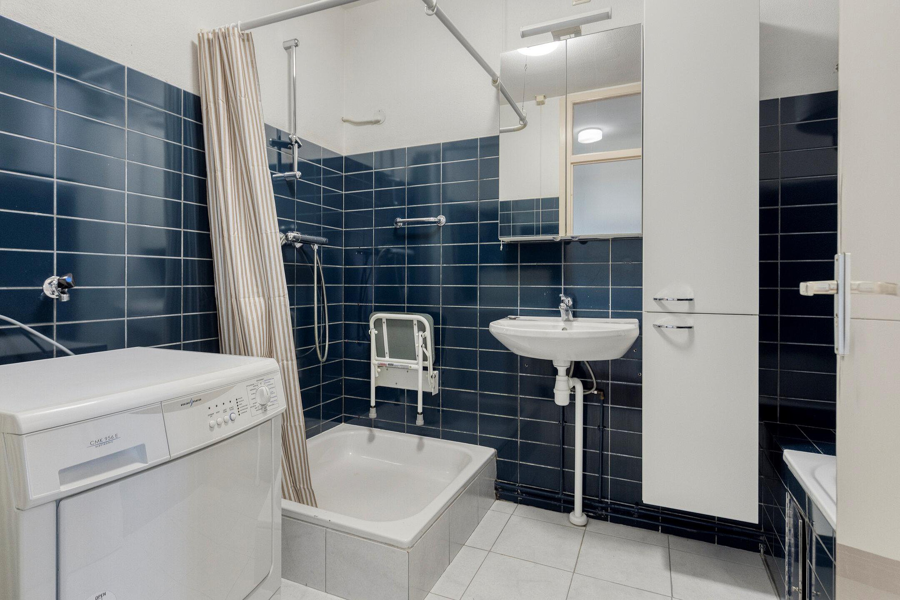 De badkamer is ingericht met een douche, ligbad en wastafel en tevens bevindt zich hier de wasmachine aansluiting. Een 2e toilet is separaat te bereiken vanuit de hal.