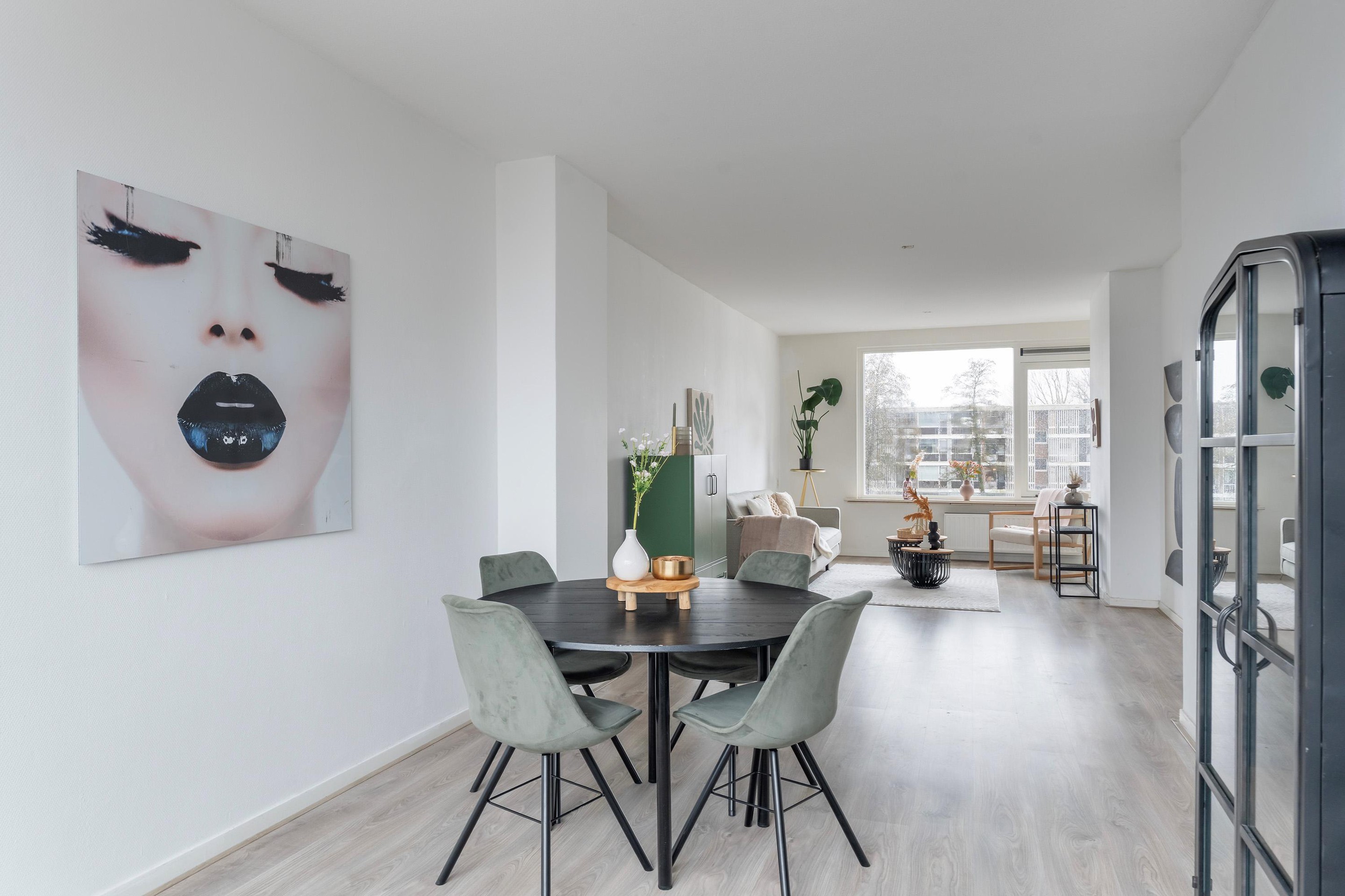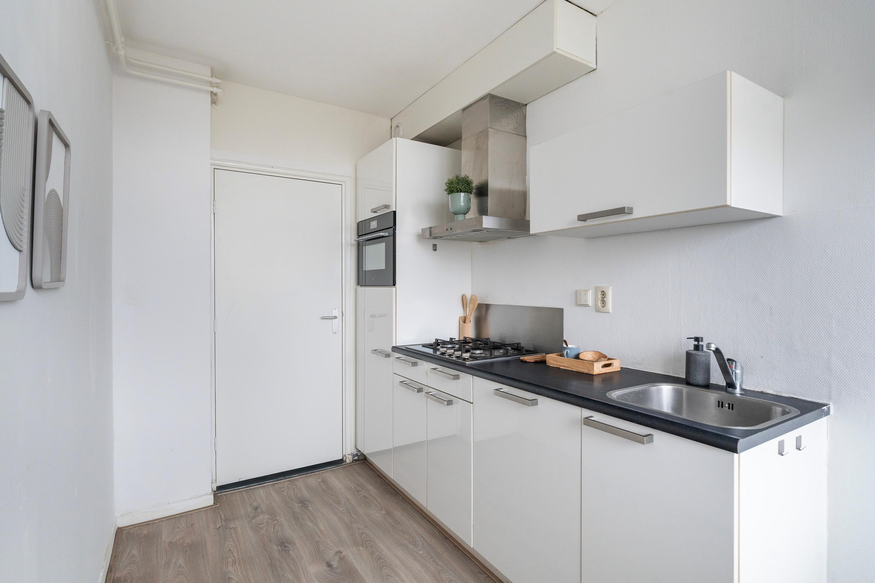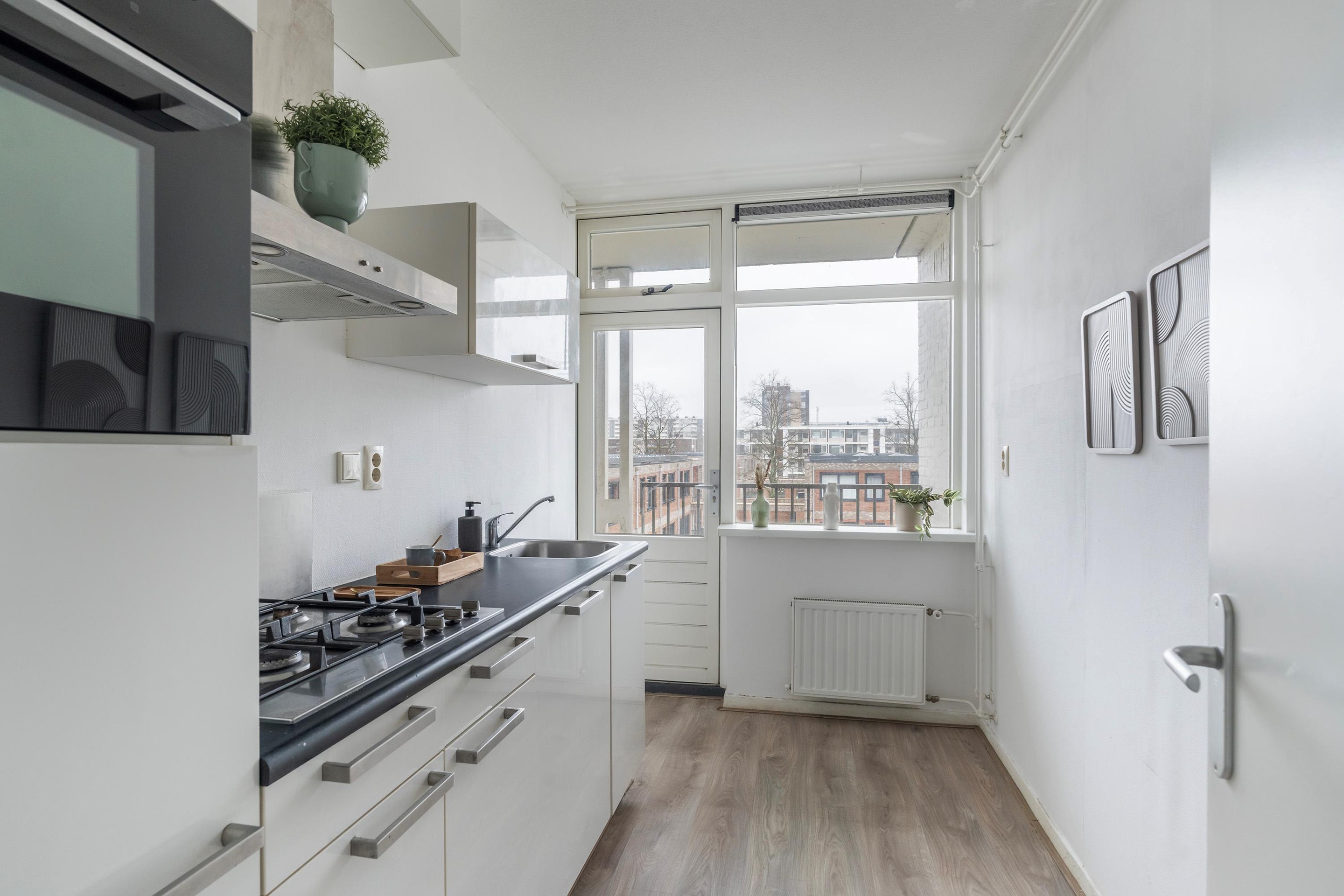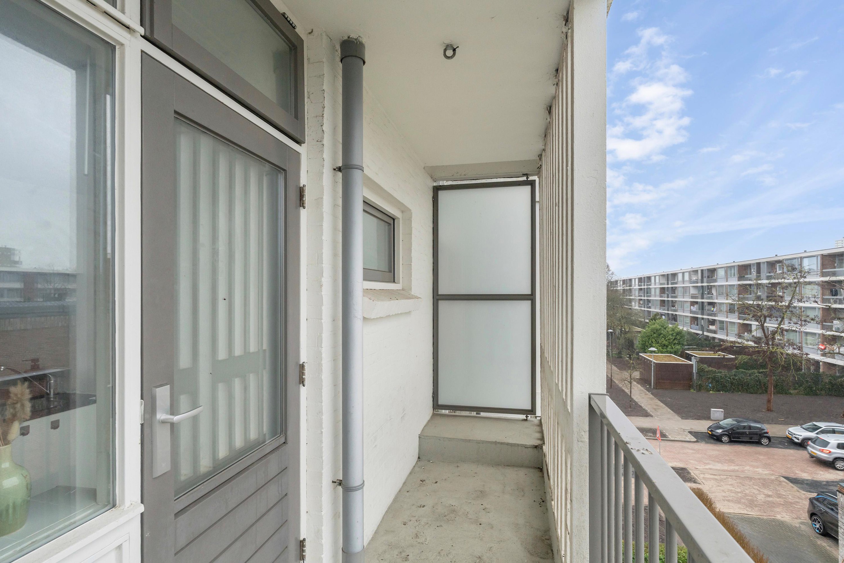 Het balkon vormt een verlengstuk van uw woongenot. Perfect voor een rustig ontbijt of een ontspannen avond buiten. Achter het complex ligt een afsluitbare groene binnentuin.