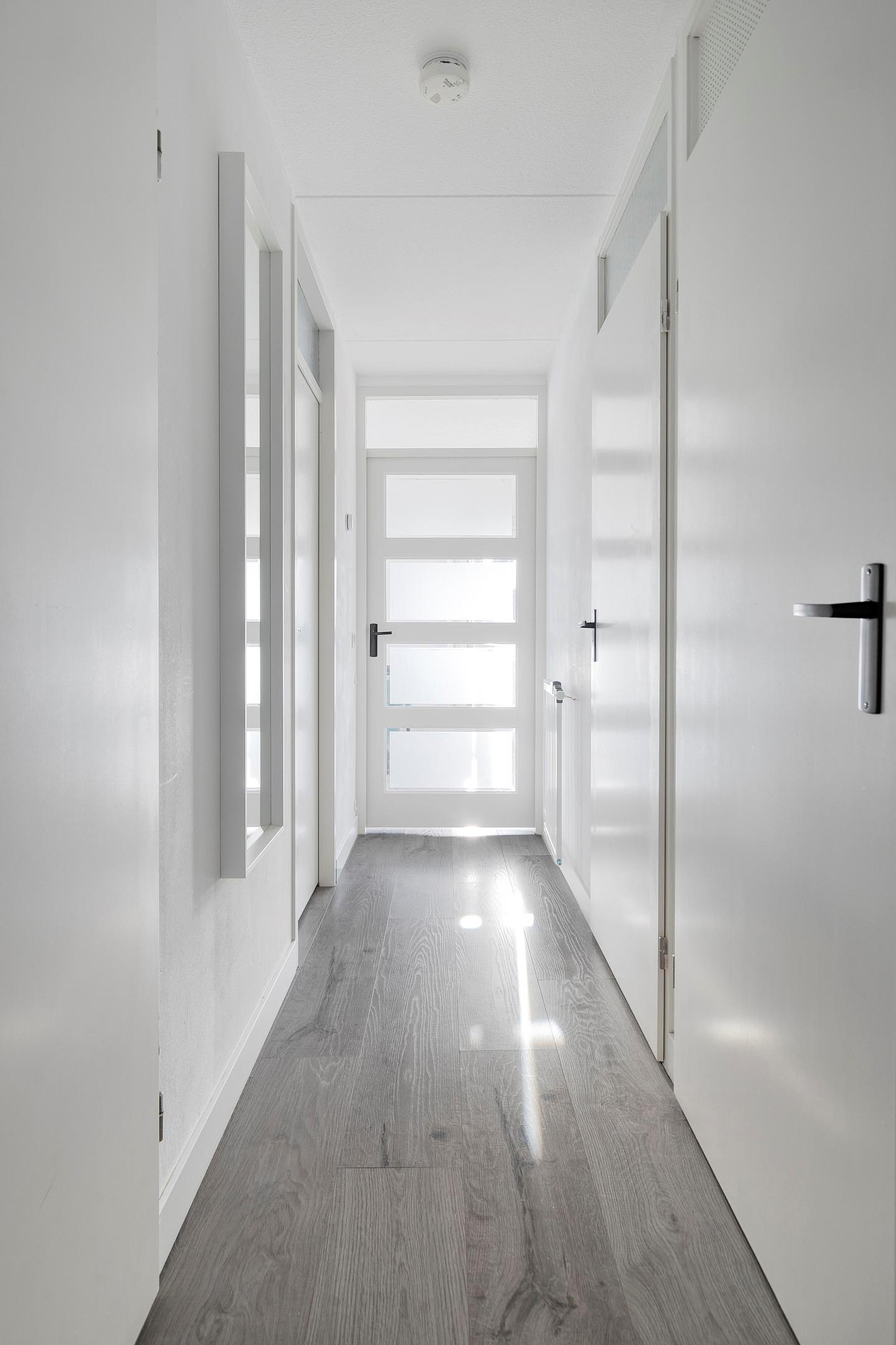 U betreedt het appartement via de gezamenlijke entree aan de straatzijde, waar tevens de brievenbussen en intercom zich bevinden. Via de trap of lift bereikt u uw eigen voordeur en komt u binnen in de hal. Deze centrale ruimte biedt toegang tot alle andere vertrekken van het appartement.