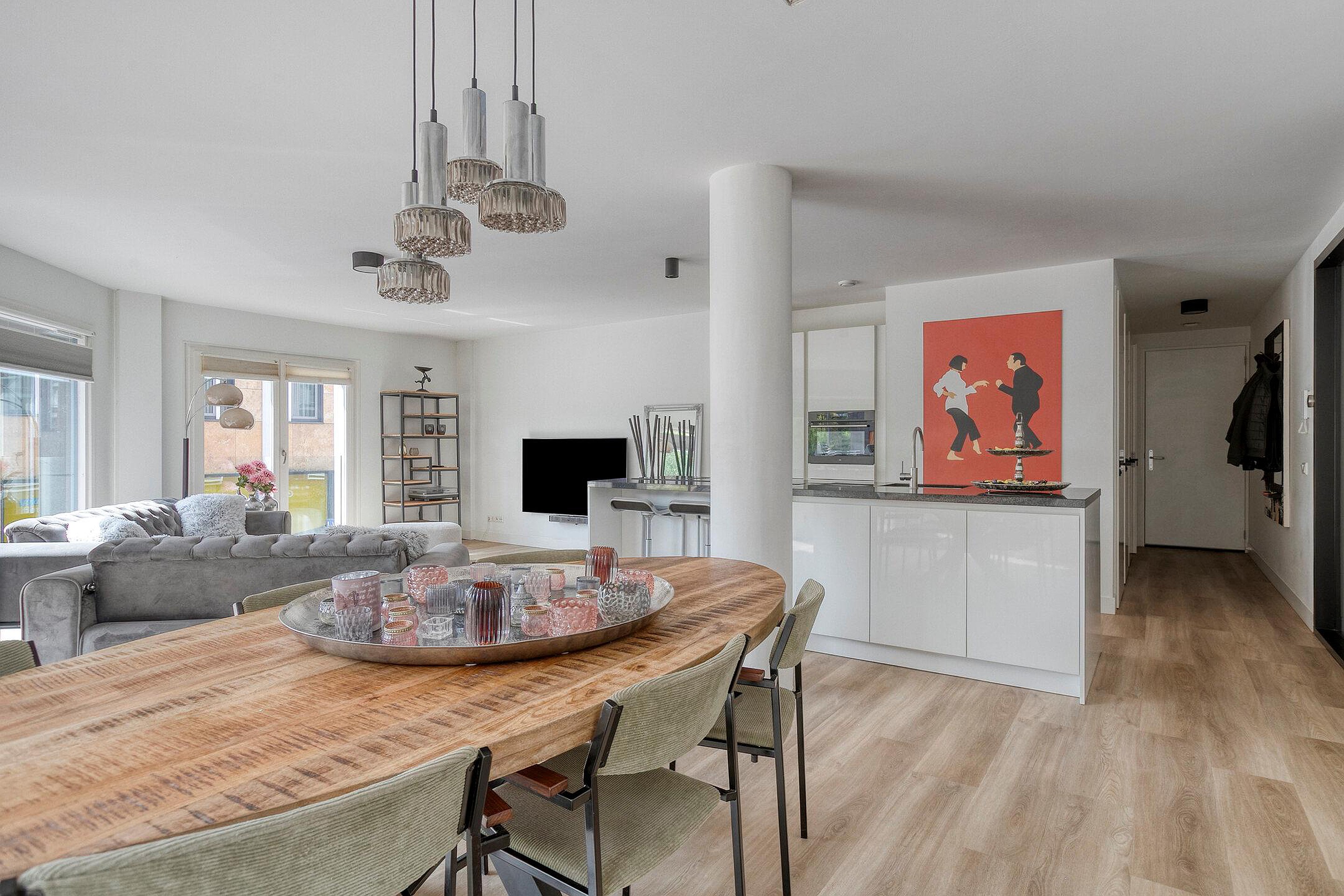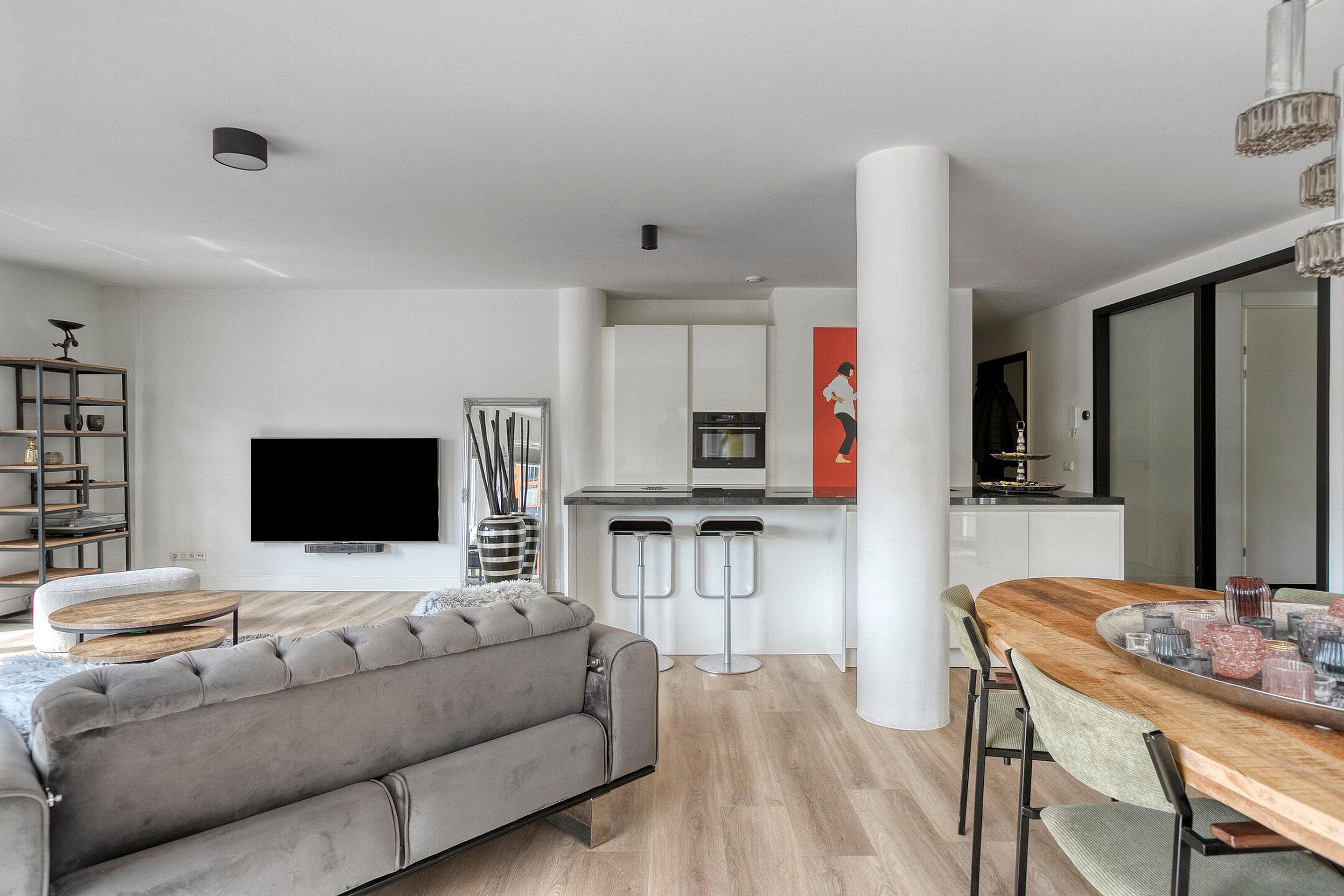 Een appartement met karakter en luxe flair, waar ruimte en licht de hoofdrol spelen