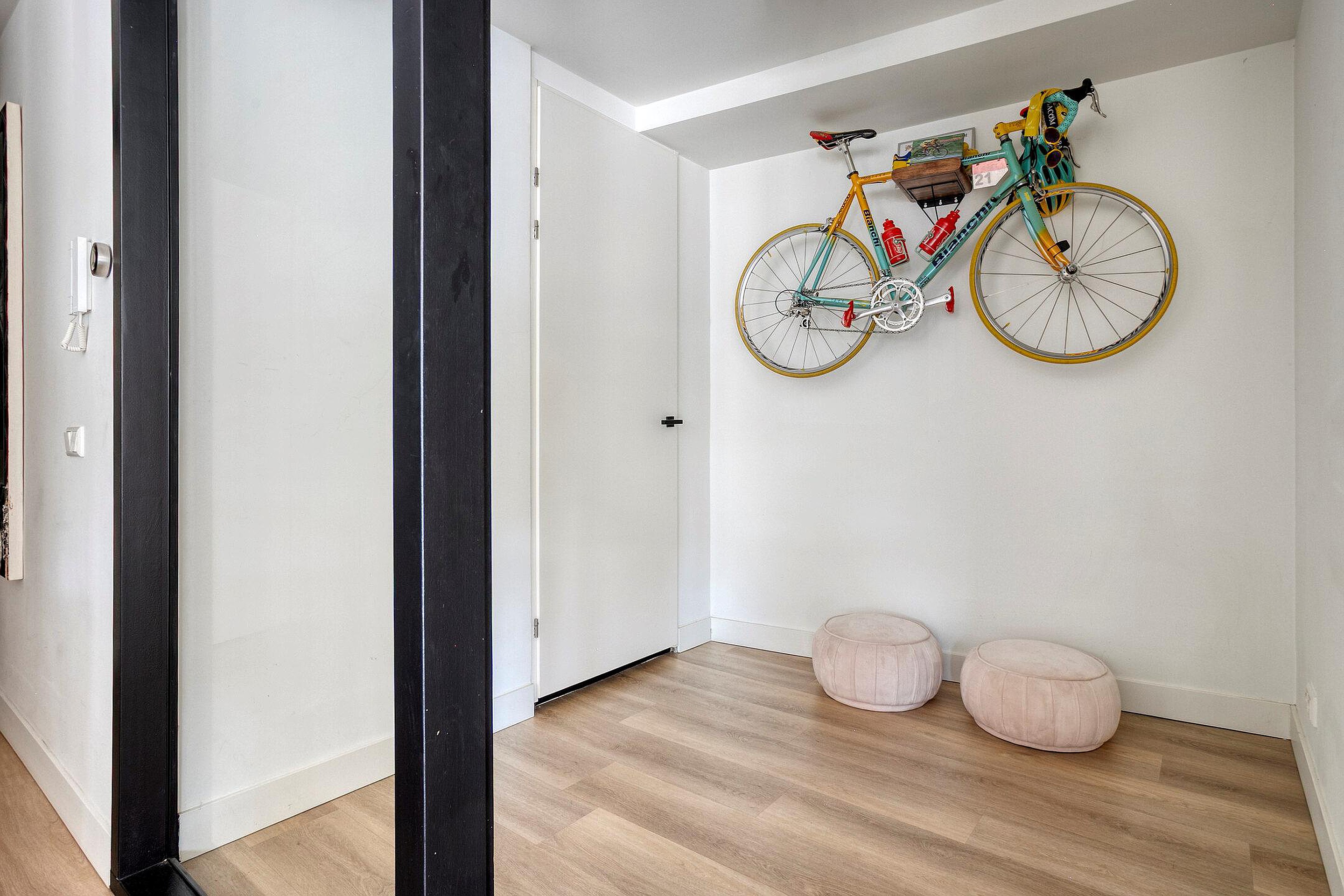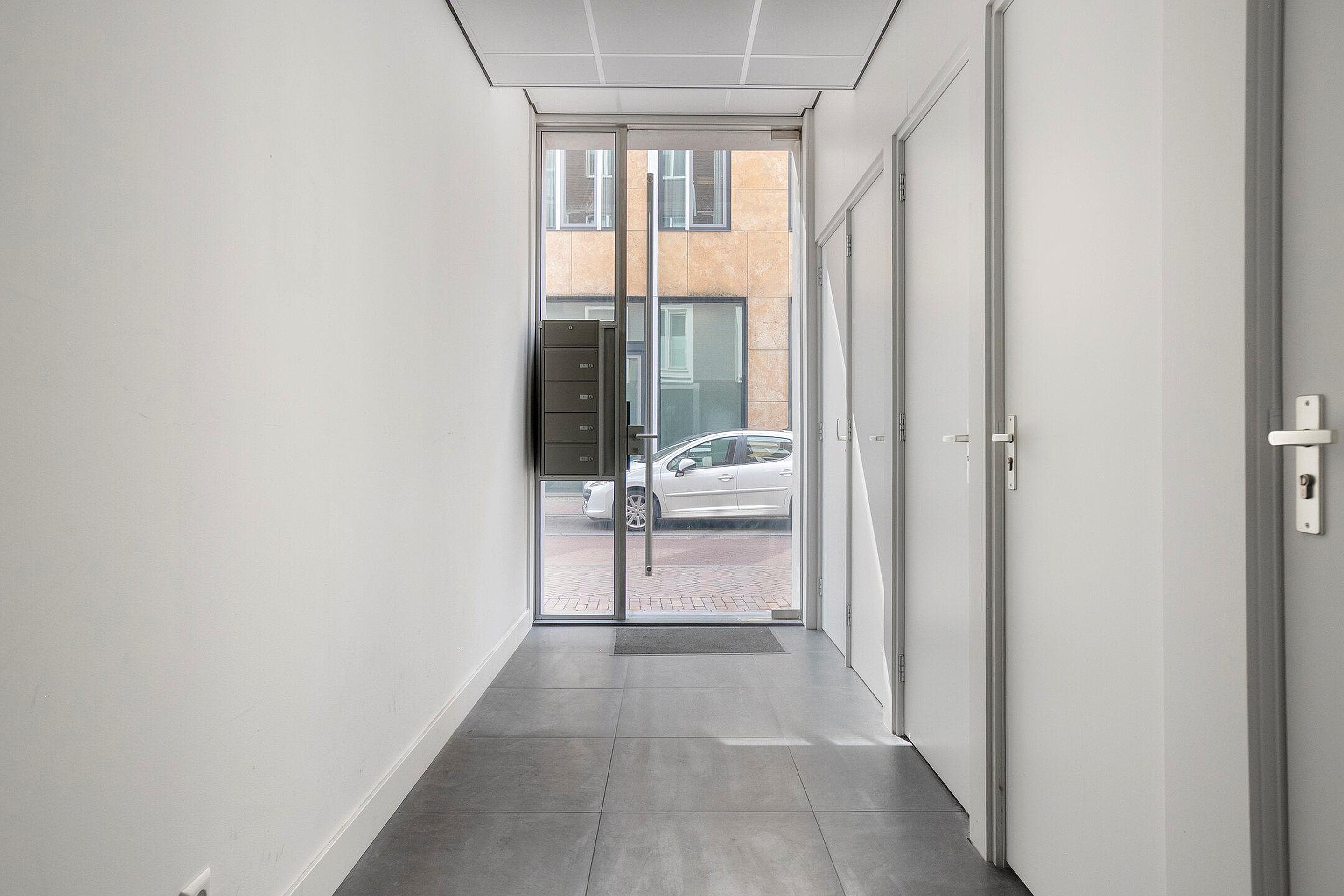 Het complex heeft een nette, gezamenlijke entree met brievenbussen, bellentableau en video-intercom. Via het trappenhuis bereikt u het appartement, en in de onderbouw is een eigen berging aanwezig, ideaal voor fietsen en extra opslag.