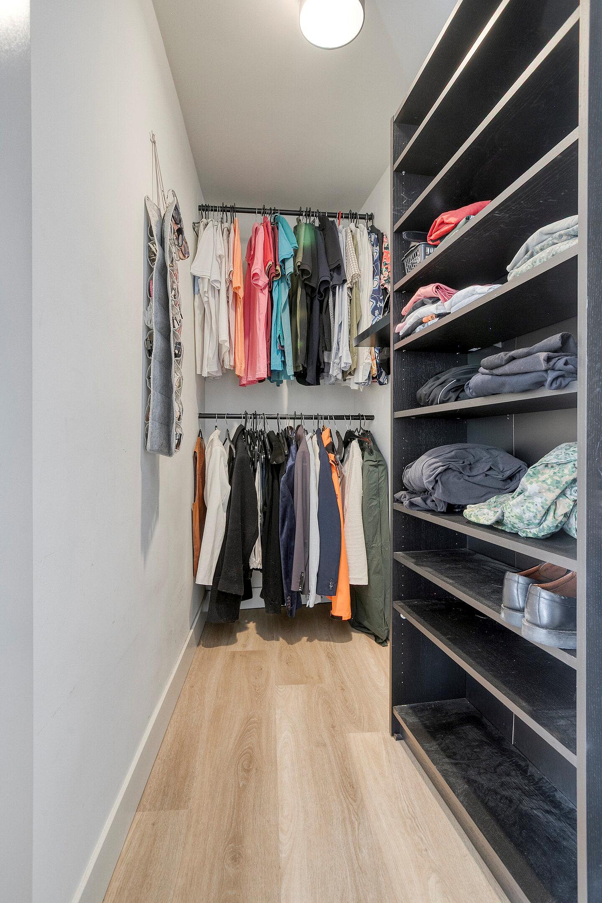 De aangrenzende gang is eveneens ruim van opzet, voorzien van een diepe berg-/inloopkast en biedt ruimte voor meerdere doeleinden.
