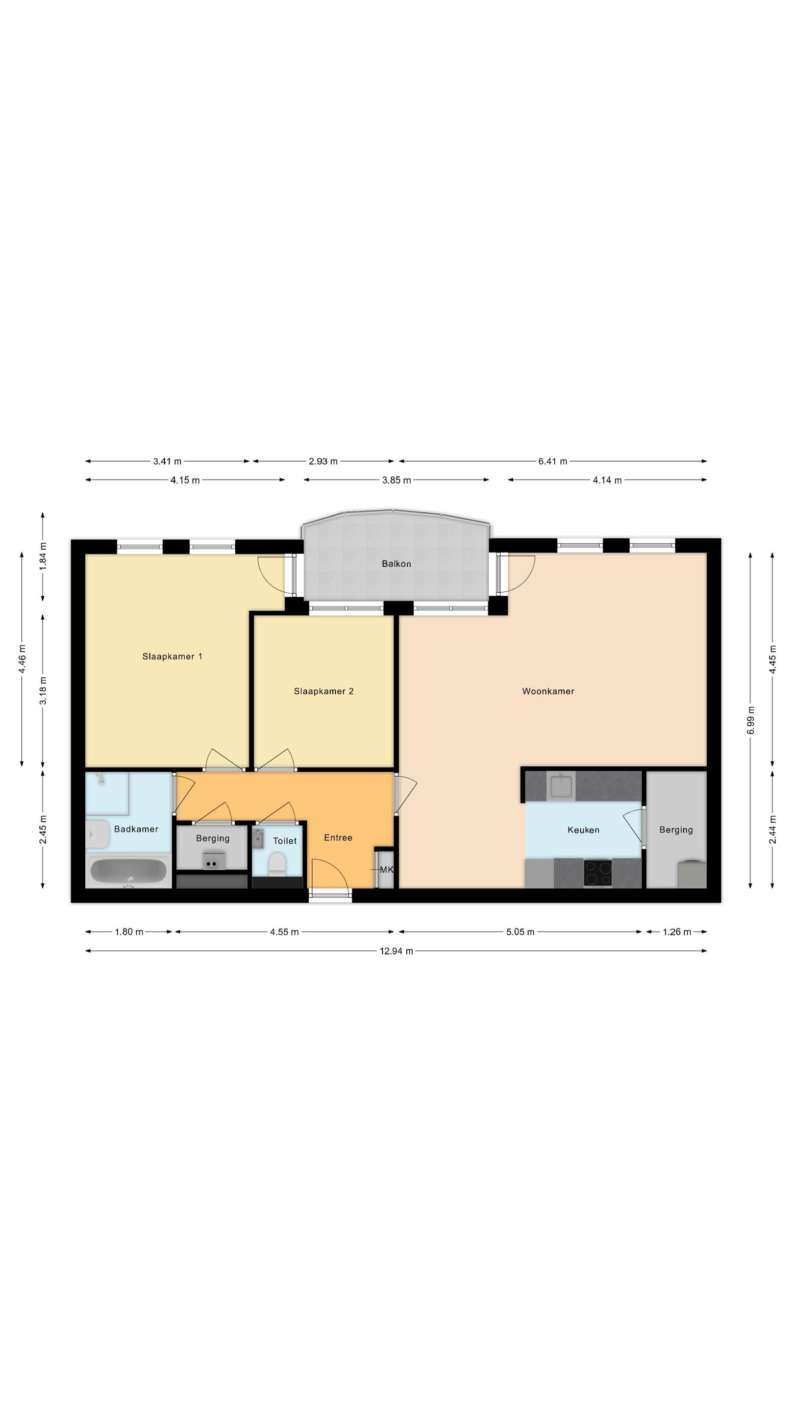 De hal geeft verder toegang tot de meterkast, de technische ruimte, de aparte toiletruimte, de badkamer en 2 slaapkamers. In de technische ruimte bevindt zich de combi CV-ketel (Nefit 2019) en de WTW-installatie. De geheel betegelde toiletruimte is voorzien van een zwevend closet en fonteintje. De ruim opgezette badkamer heeft een ligbad, aparte douchecabine en een wastafel. Beide slaapkamers zijn ruim van opzet, ca. 9,5m2 en 16m2 groot. Vanuit de masterbedroom is er, net als de woonkamer, toegang tot het balkon. Het balkon (ca. 7m2) biedt veel privacy en is op het westen georiënteerd.