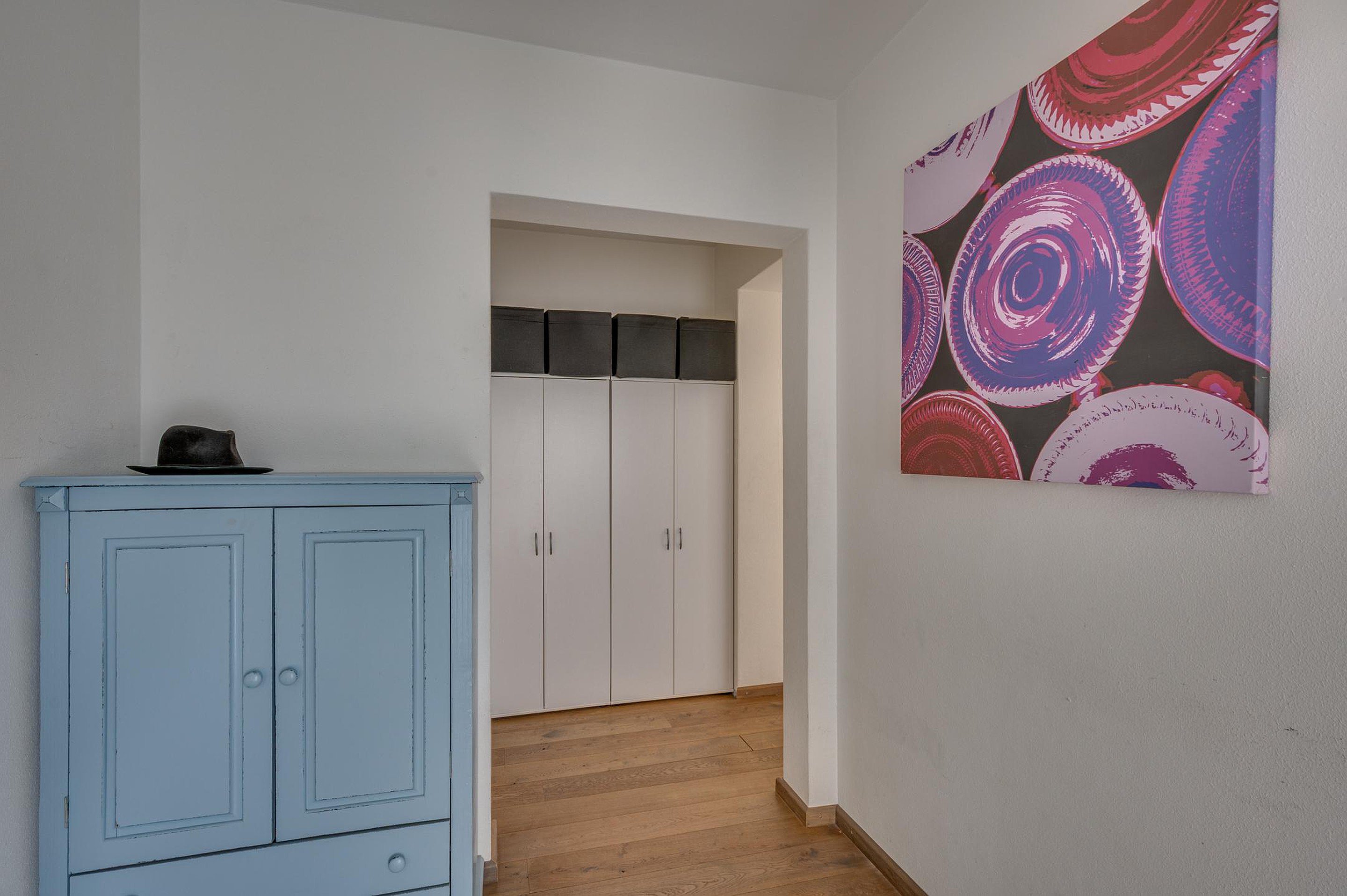- Entree appartement met riuime hal met muurkast.