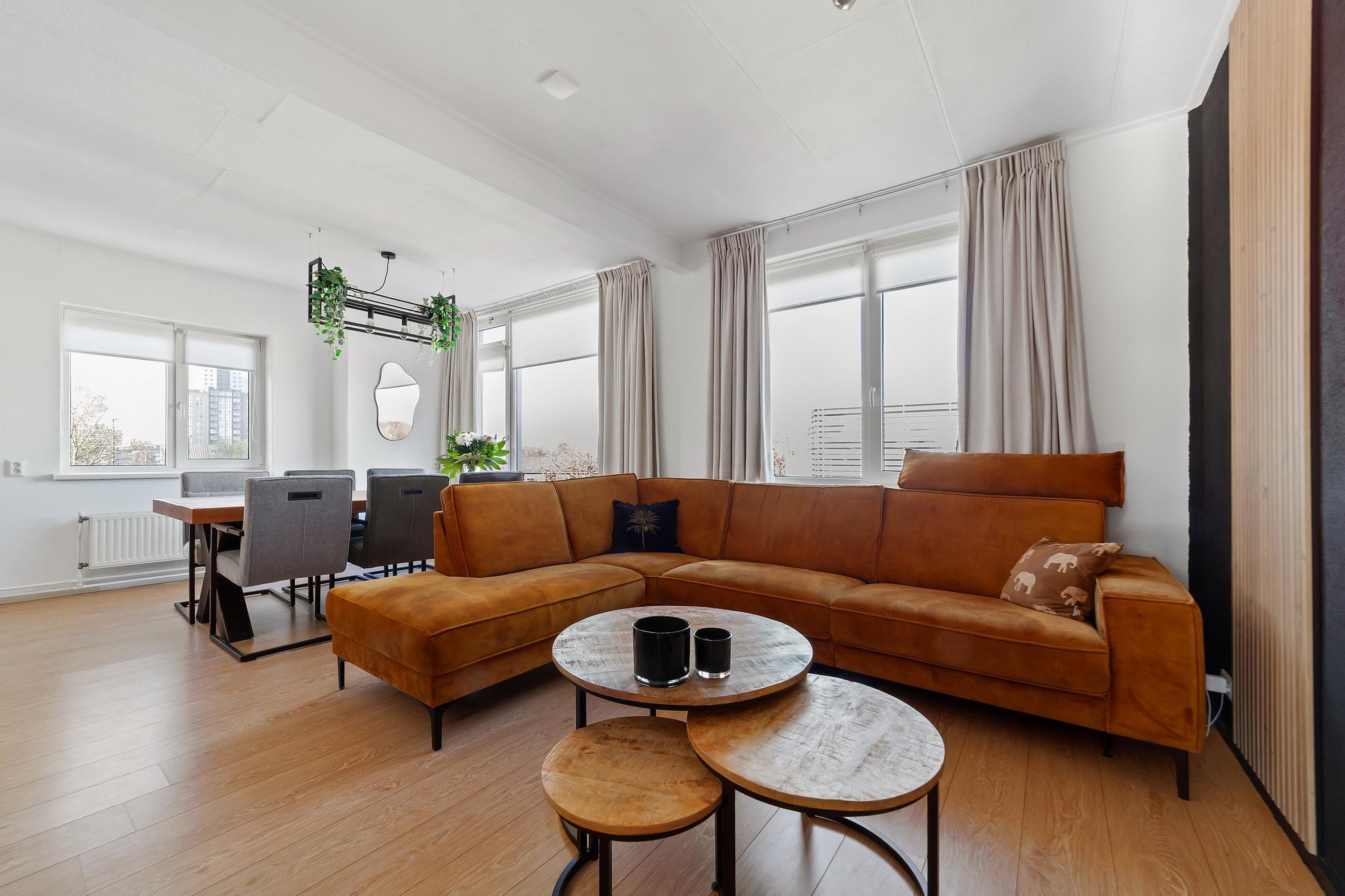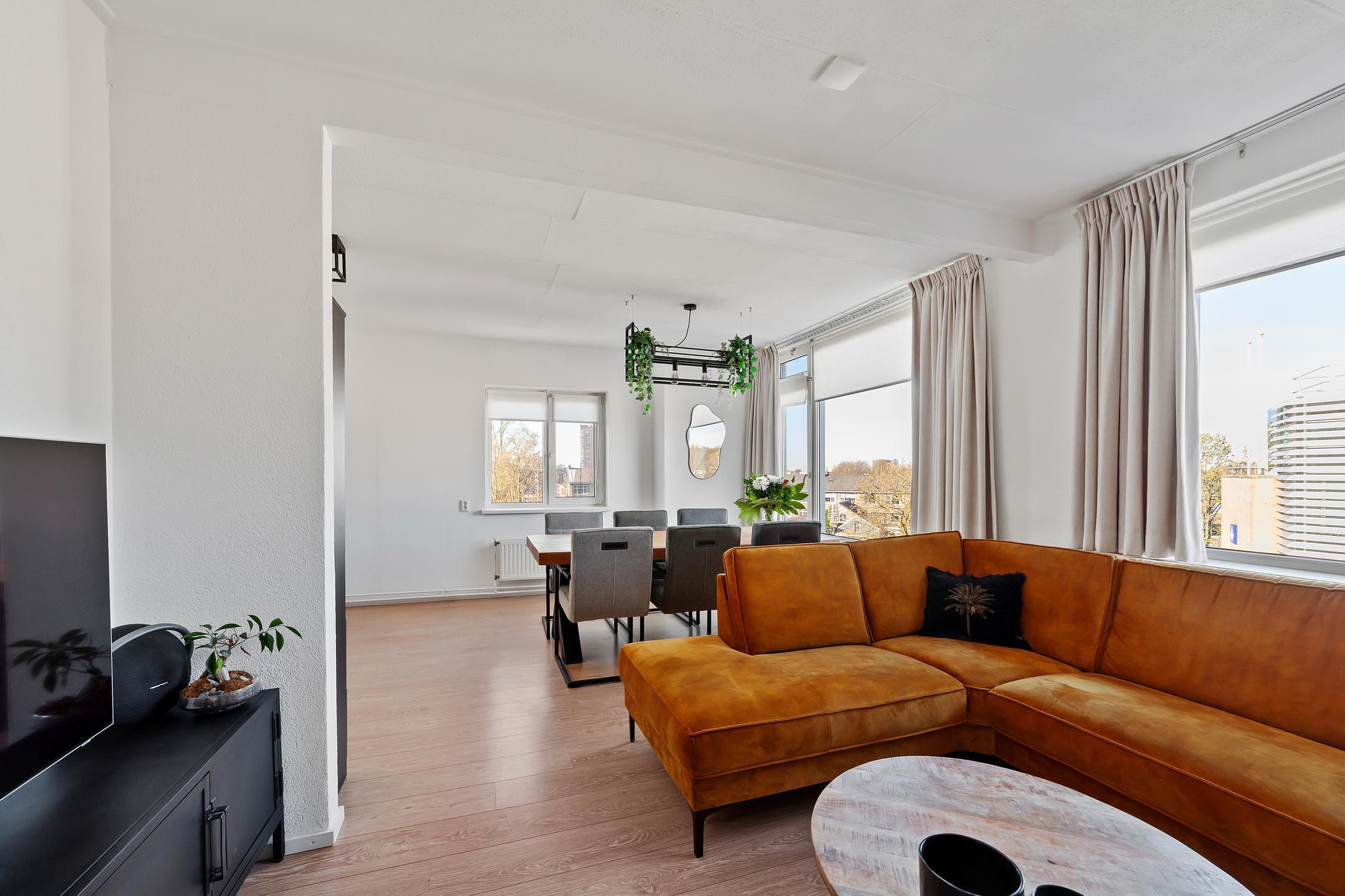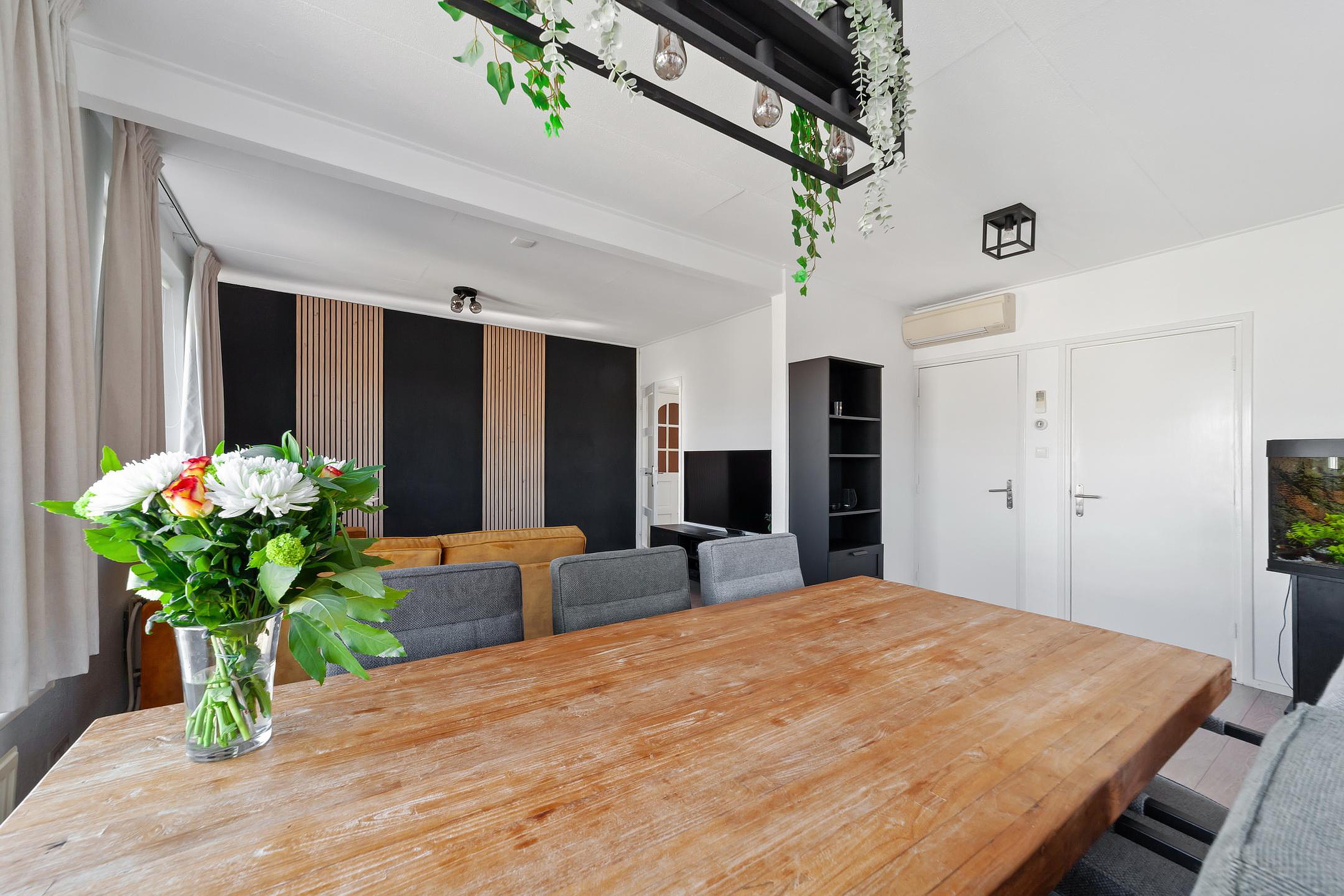 Ruime en lichte woonkamer van circa 29 m2 voorzien van laminaatvloer en airco.