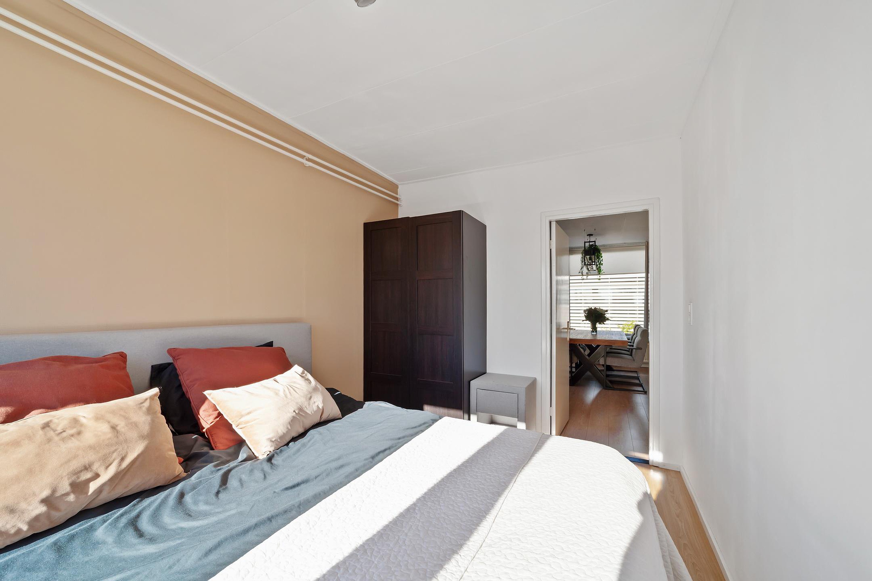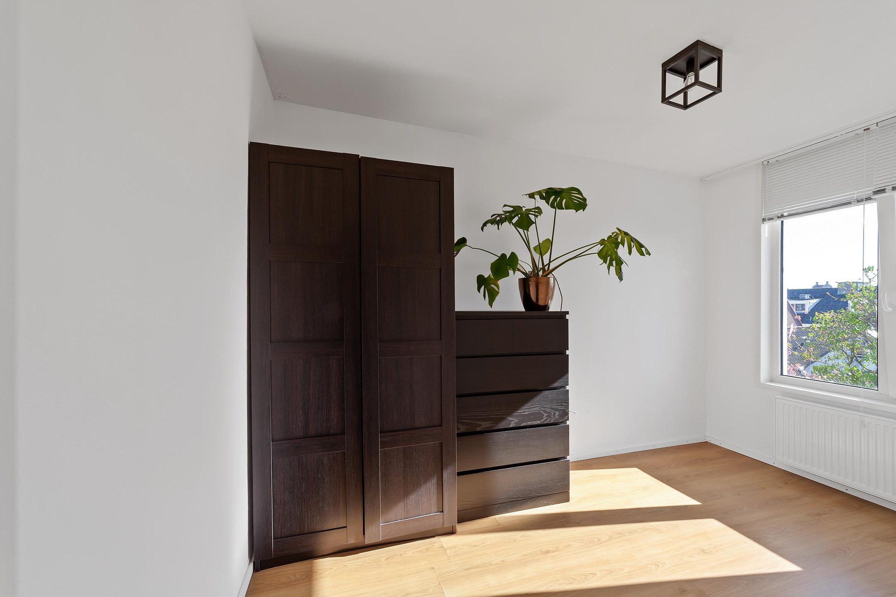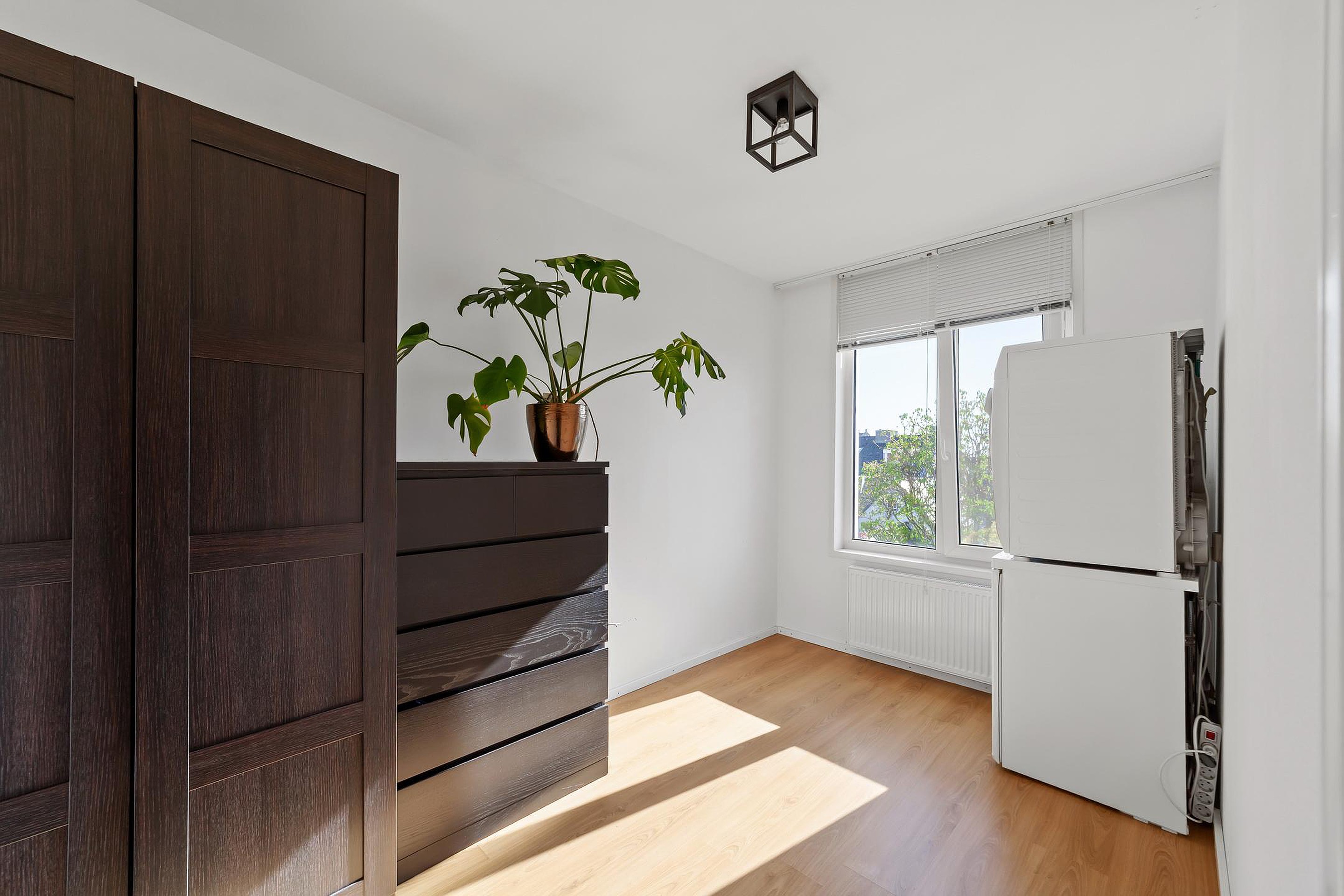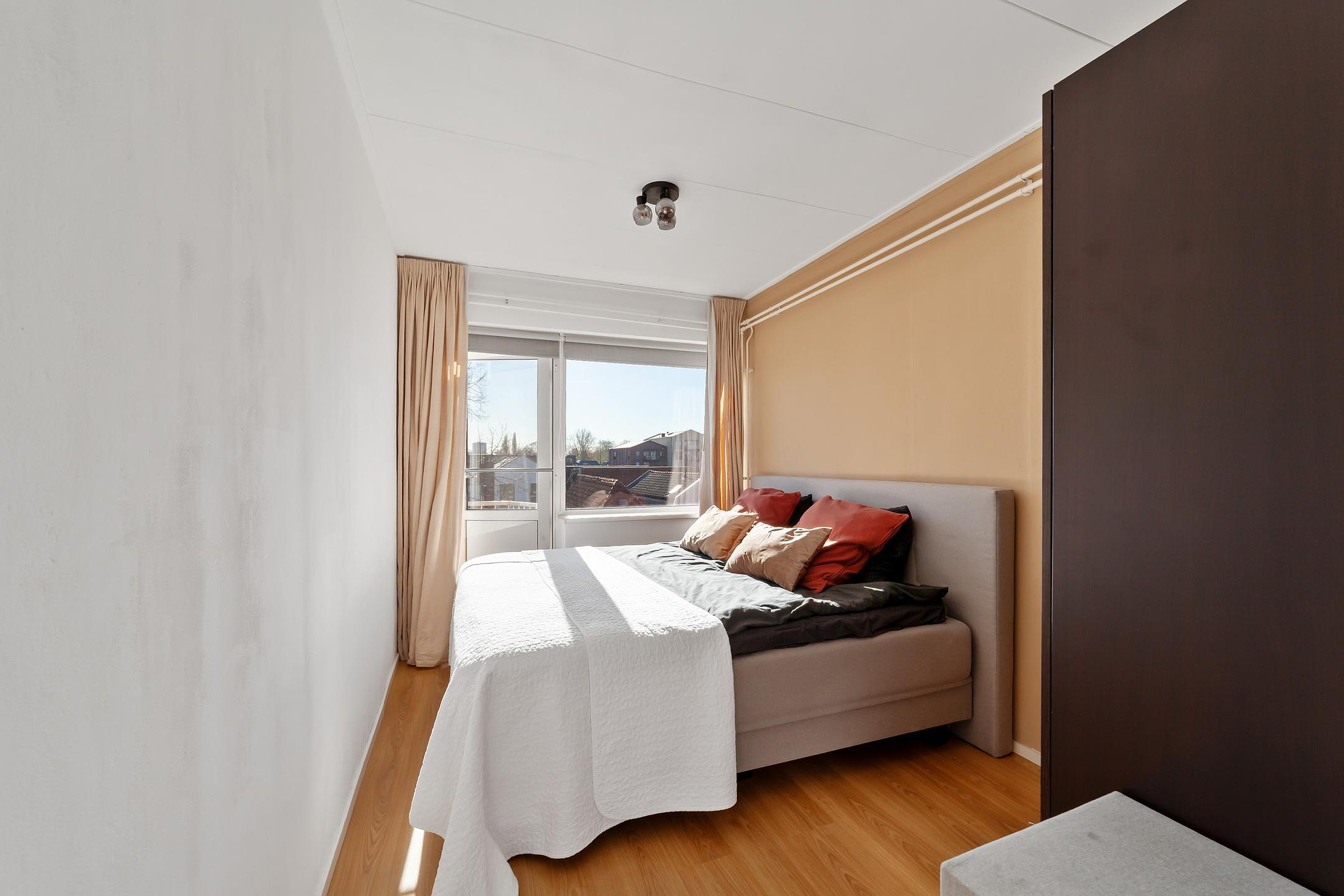 Twee slaapkamers van circa 8 en 9 m2 gelegen aan de achterzijde. Vanuit de grootste slaapkamer is het balkon (ligging op het oosten en met zicht op de gemeenschappelijke tuin) eveneens te bereiken.