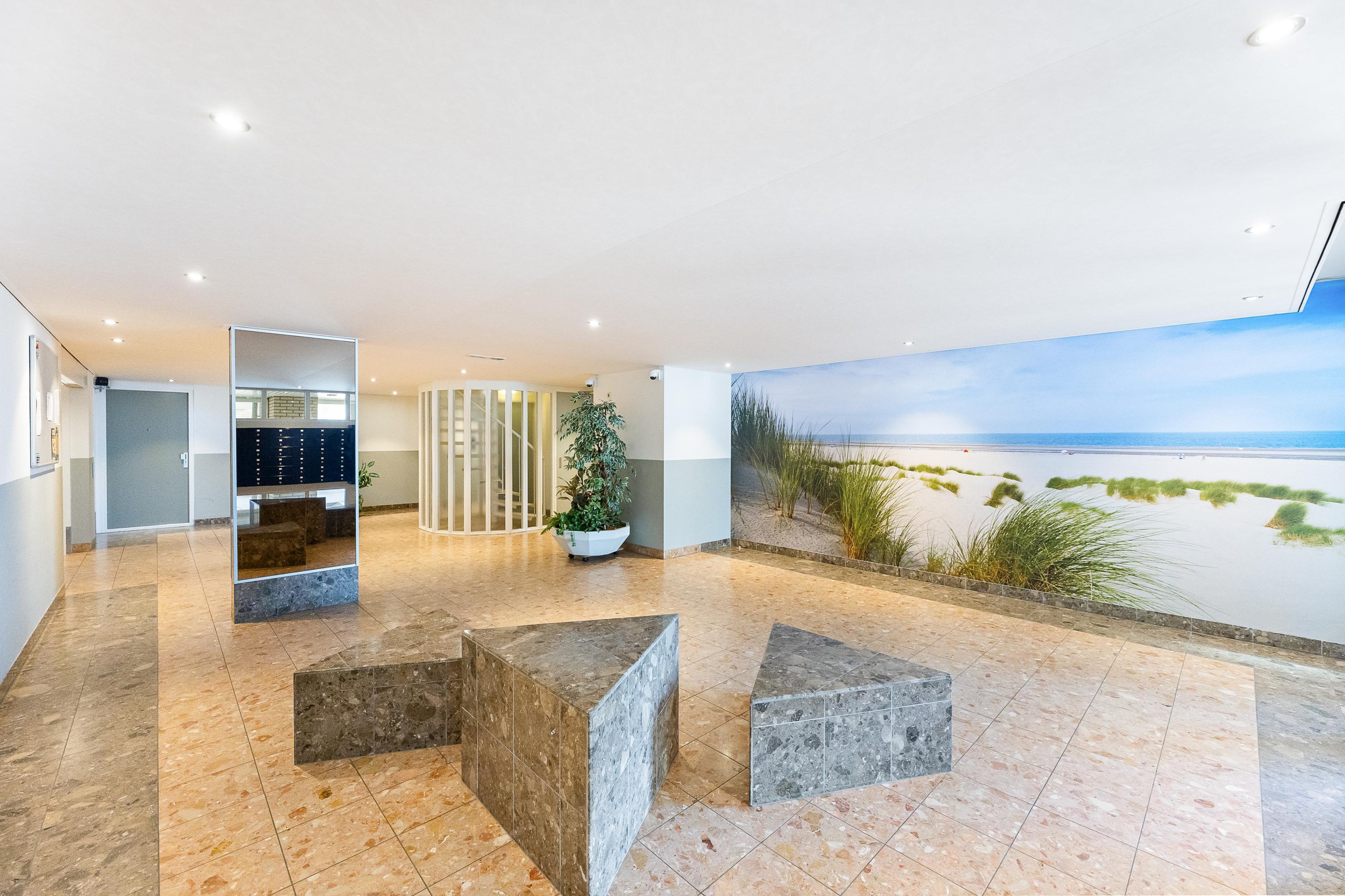 Afgesloten entree met brievenbussen, bellentableau en videofooninstallatie. In de centrale hal bevindt zich de lift, welke toegang geeft tot de etages en de parkeergelegenheid welke zich bevindt in de afgesloten parkeerkelder. Verder treft u in de afgesloten parkeerkelder ook een fietsenstalling en eigen berging.