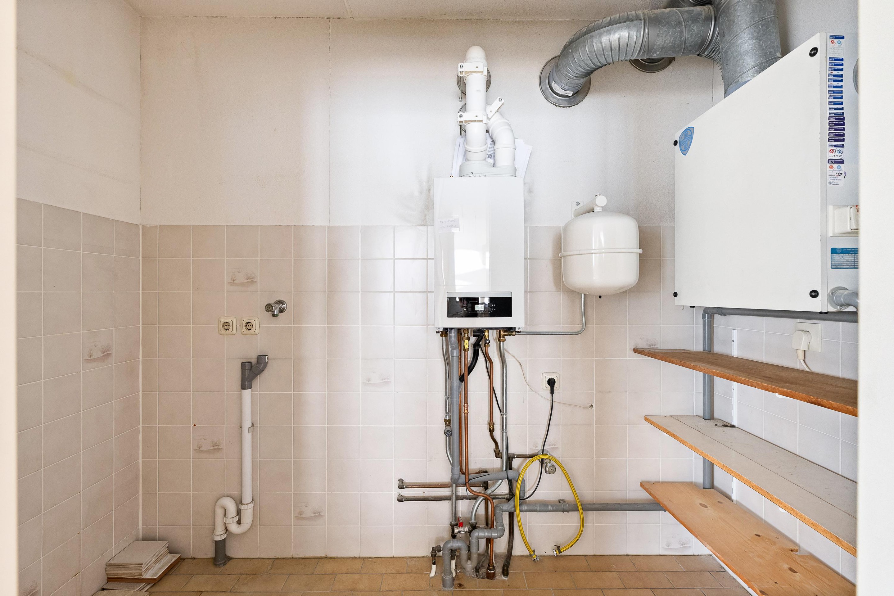 Middels een deur in de keuken heeft u toegang tot de bijkeuken. Hier bevindt zich de wasmachine- en droger aansluiting en de CV-opstelling.