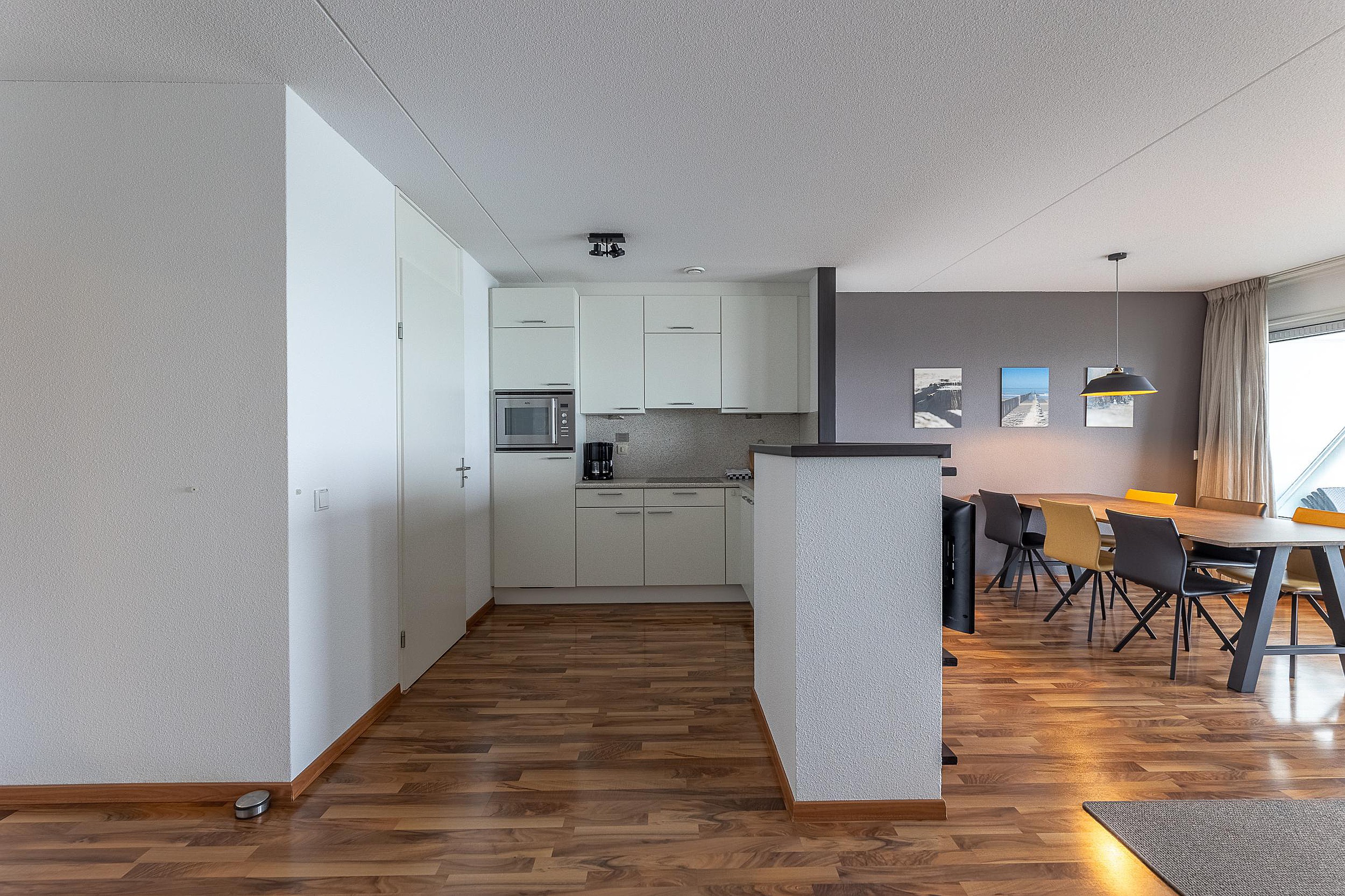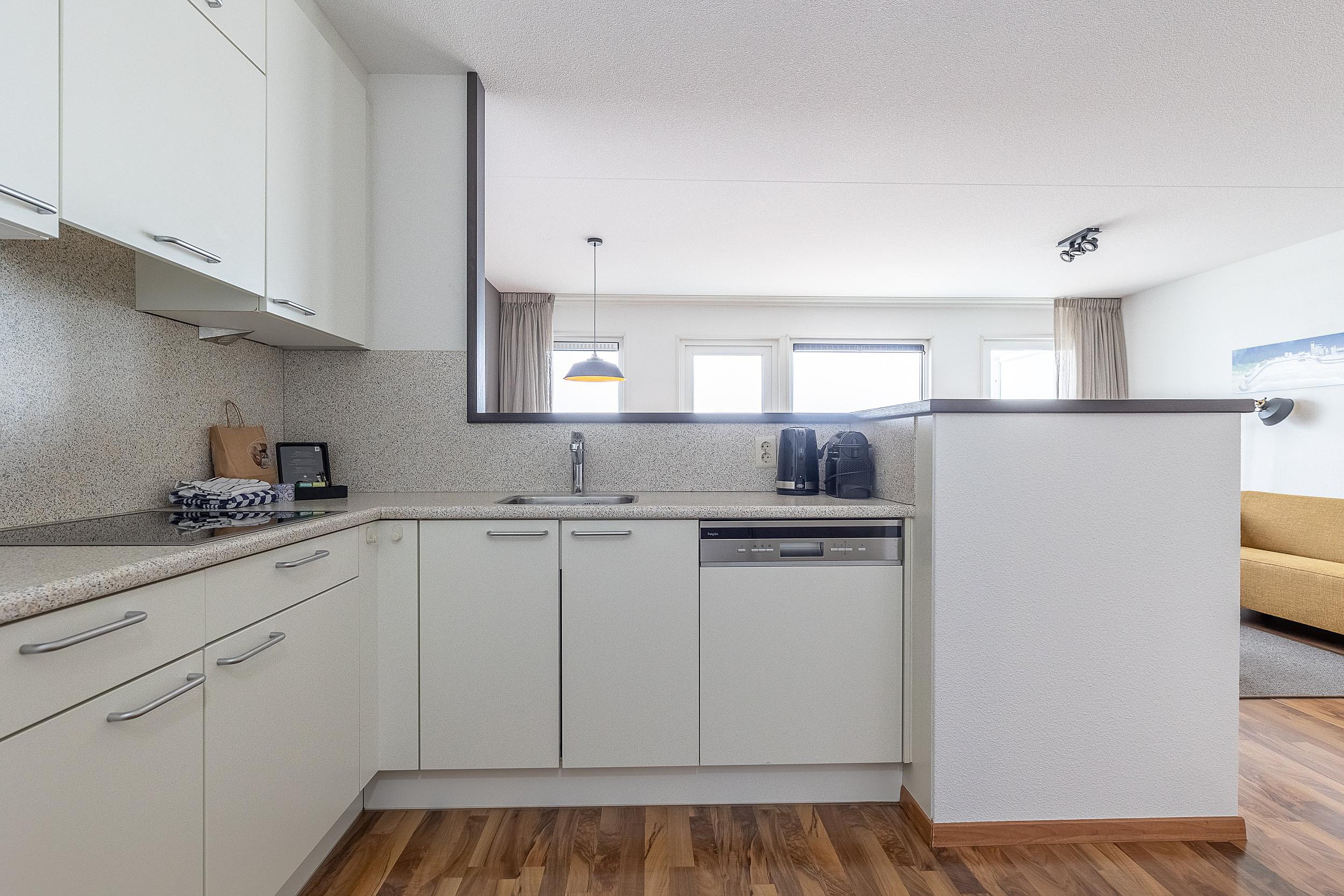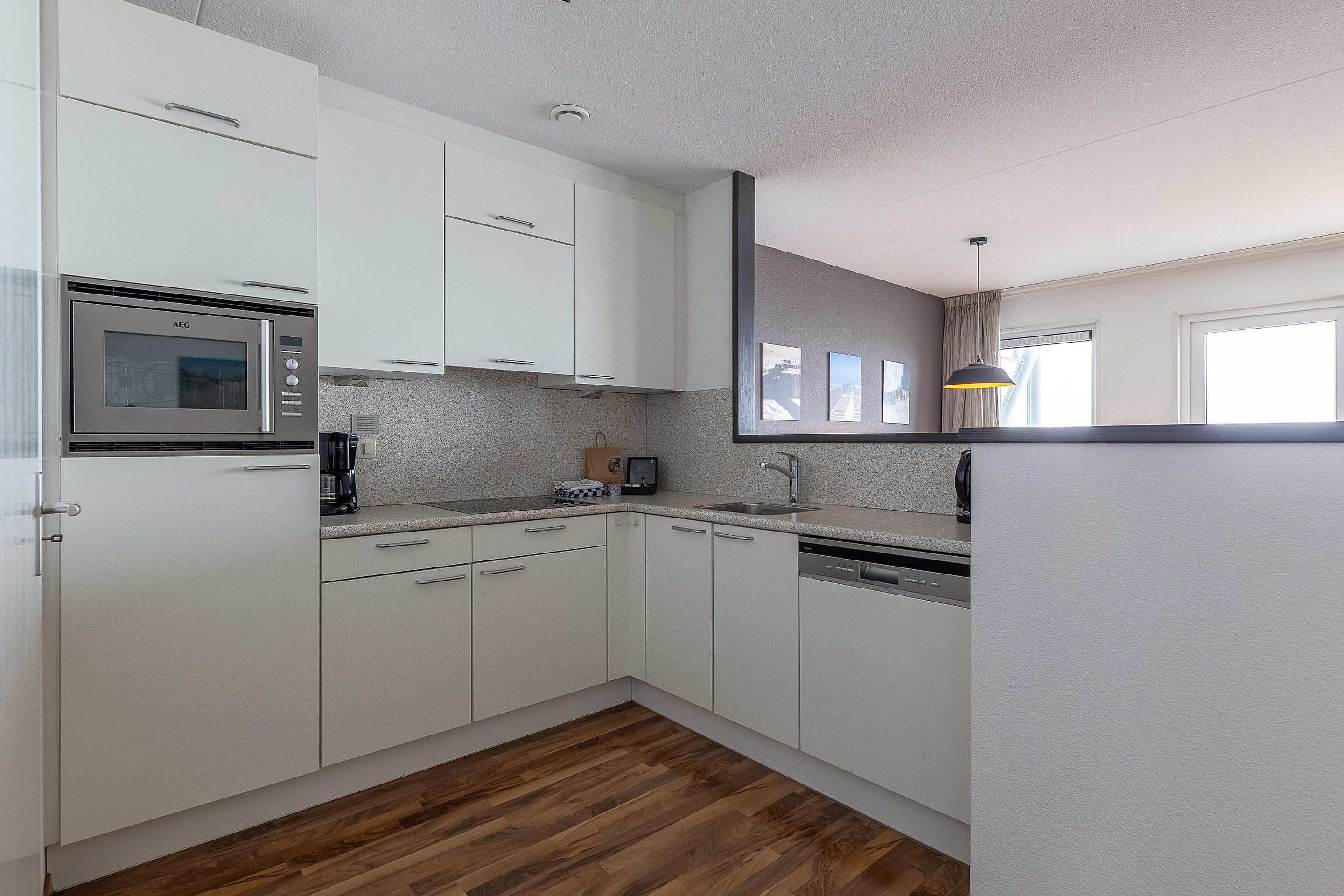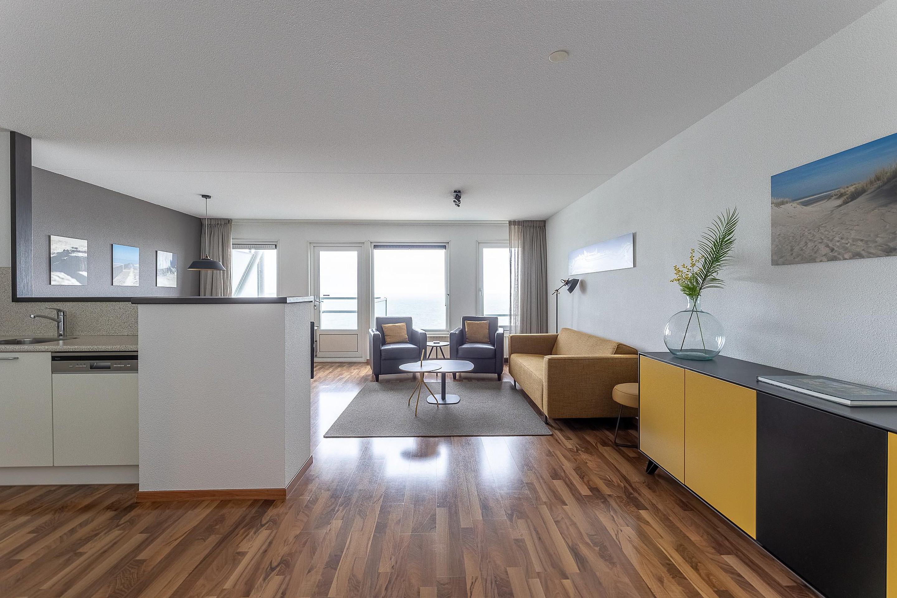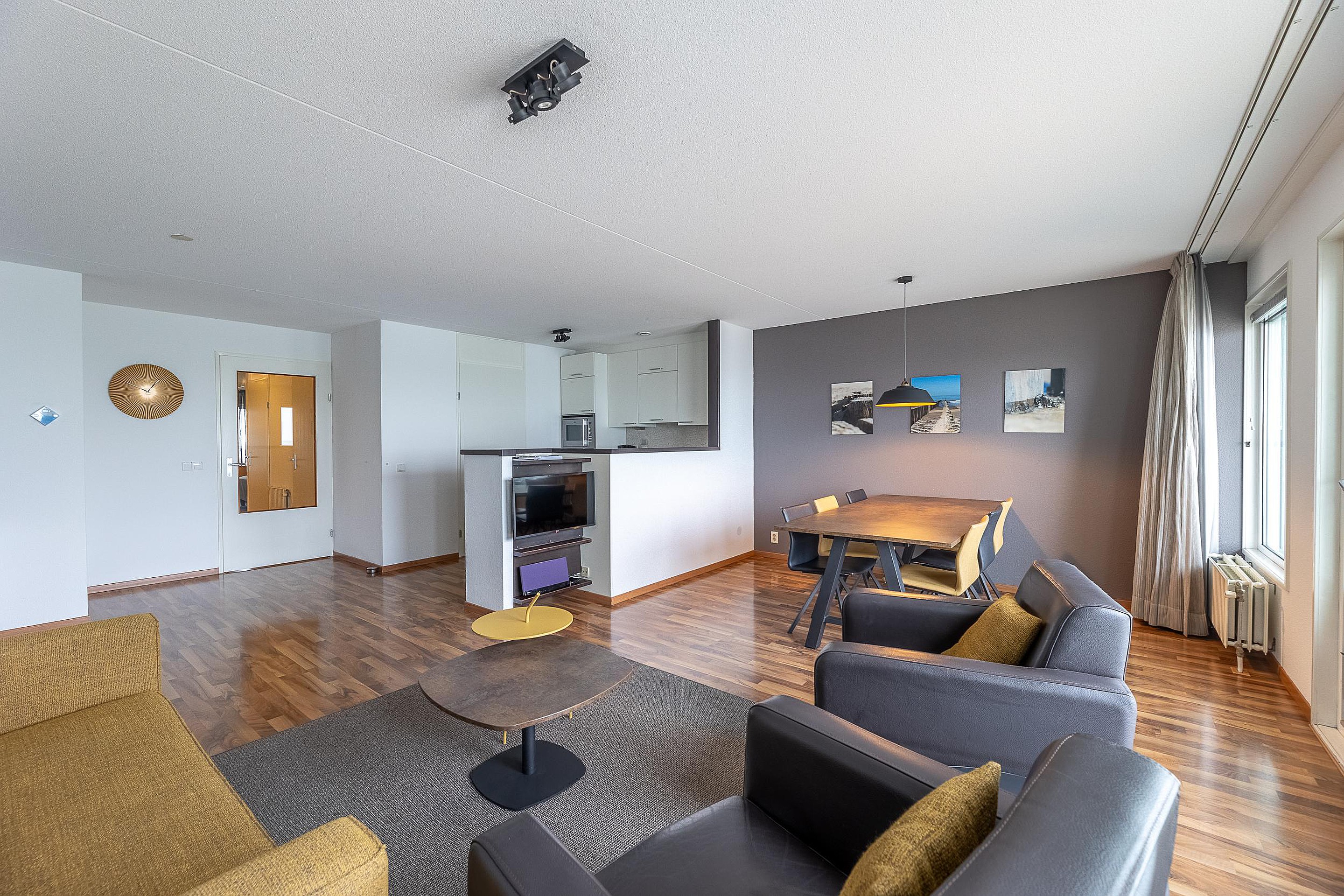 Entree appartement, ruime hal met videofoon en toegang tot de diverse ruimtes. Badkamer met douche en dubbele wastafel. Separate toiletruimte met zwevend toilet en fonteintje. Woonkamer met open keuken, voorzien van diverse inbouwapparatuur en praktische bergkast met cv.-installatie. Vanuit de woonkamer heeft u een magnifiek uitzicht op het strand en over de drukbevaren Westerschelde, tevens heeft u toegang tot het ruime en zonnige op het zuidwesten gelegen balkon aan de voorzijde. Aan de achterzijde zijn de twee slaapkamers gesitueerd, de masterbedroom royaal en de tweede slaapkamer is voorzien van een stapelbed.