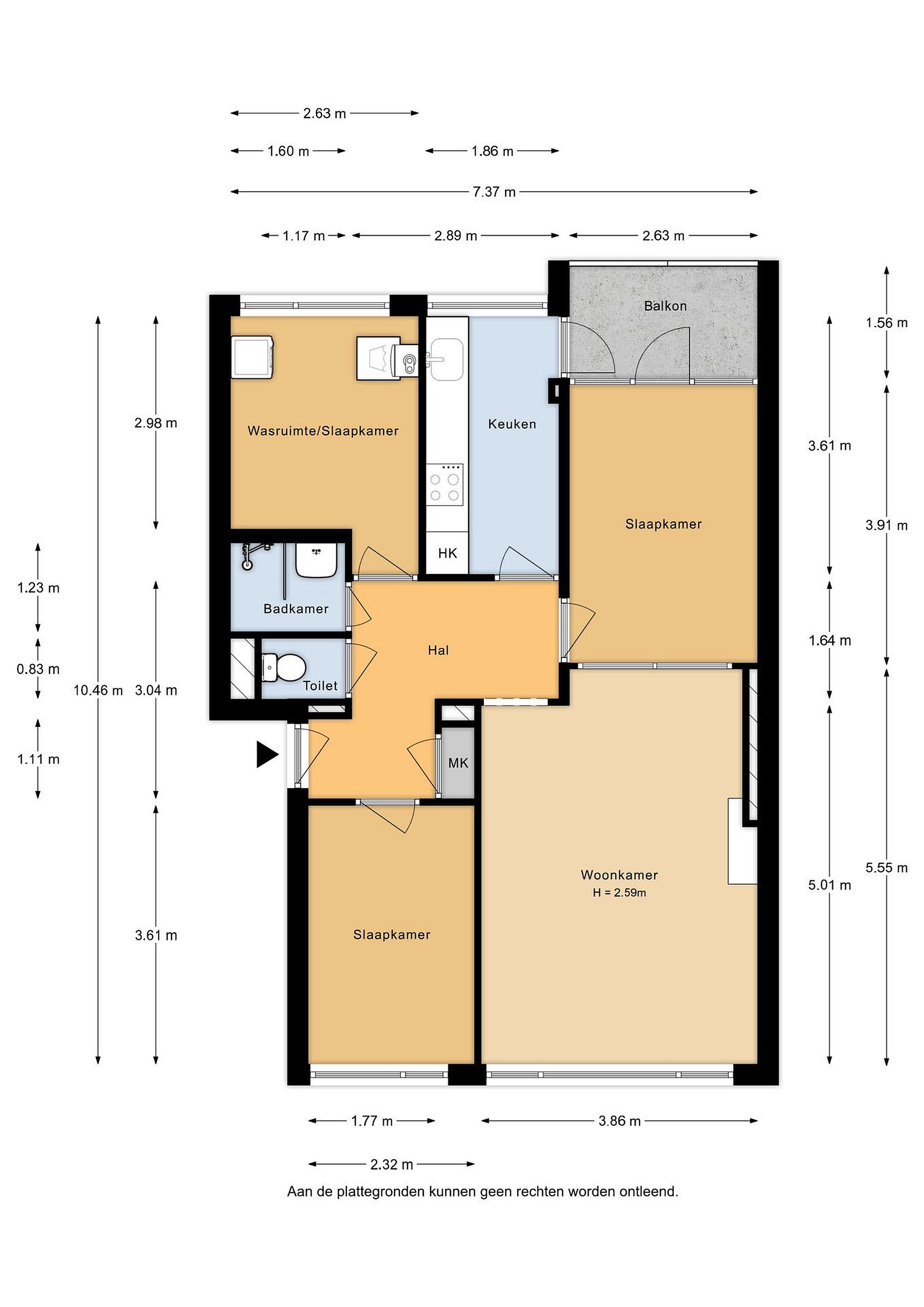 - Woonoppervlakte: ca. 68 m2 (op basis van oudere NEN-2580 meting)