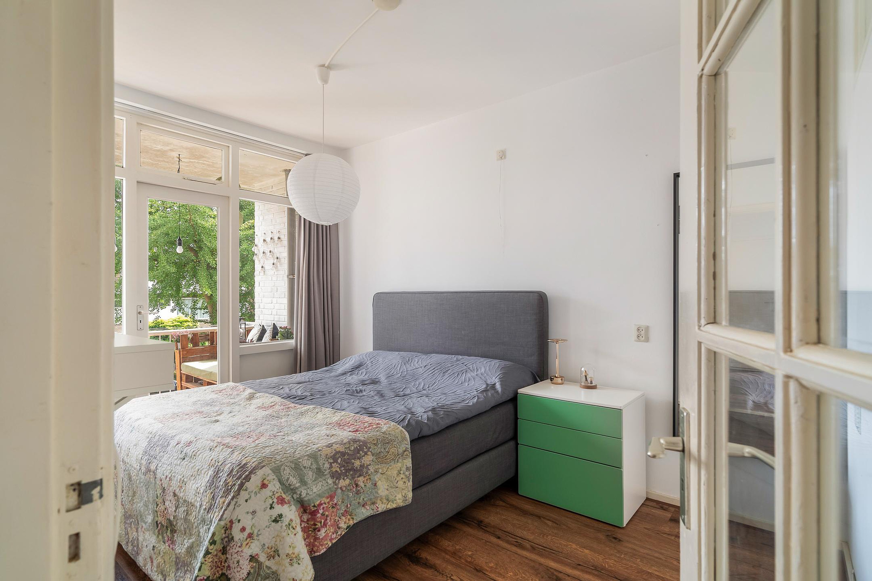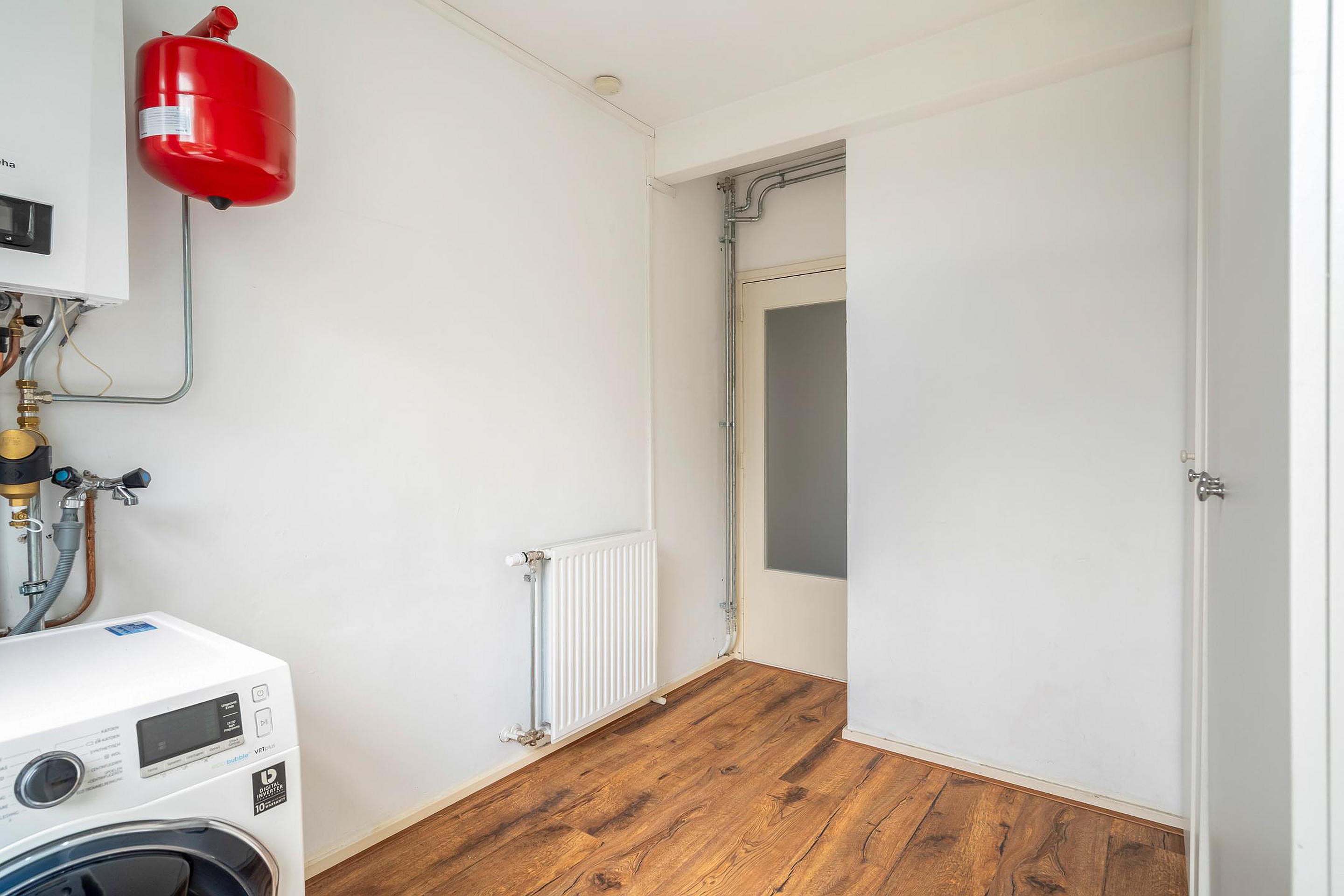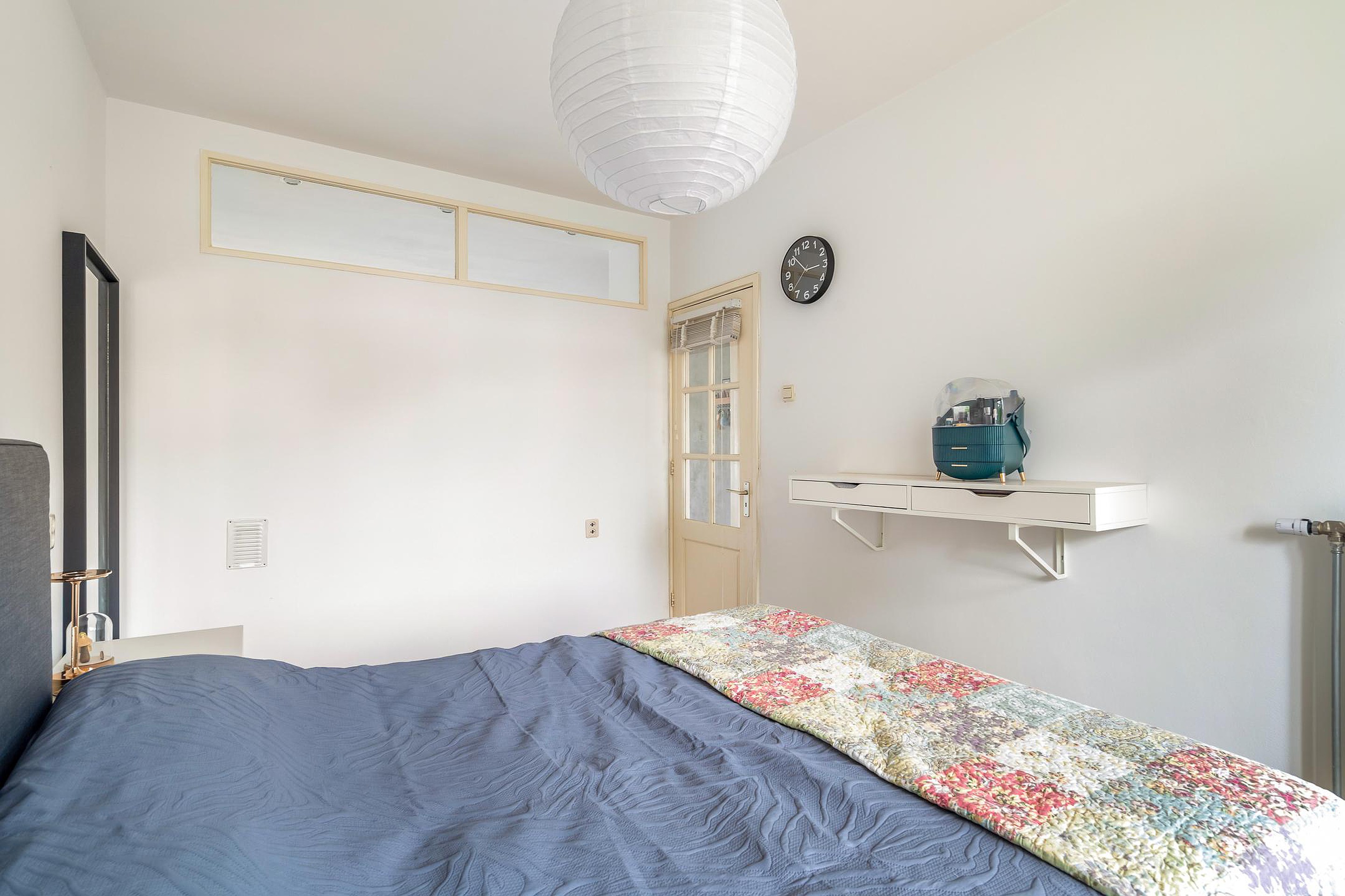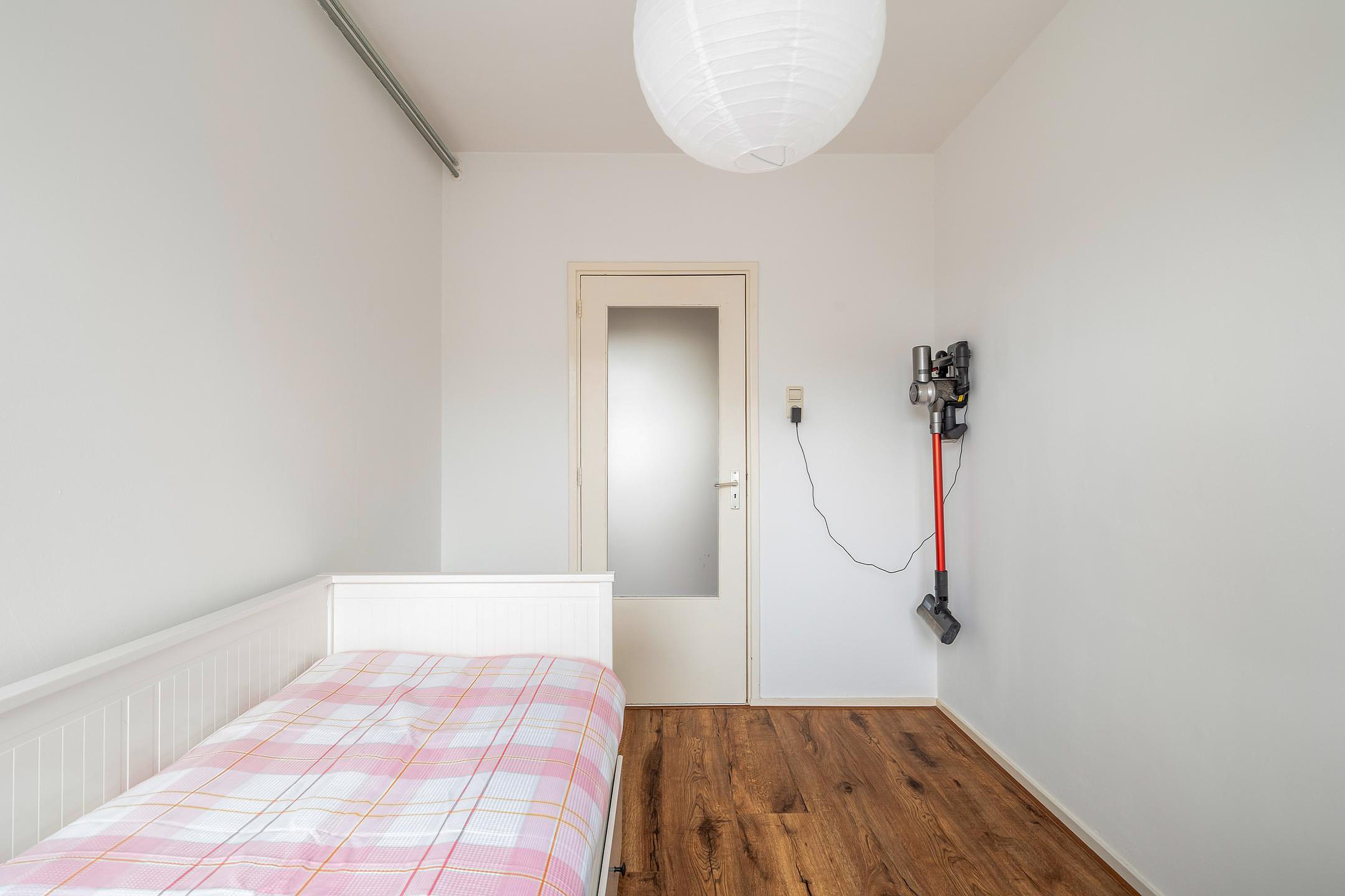 De ruime hoofdslaapkamer aan de achterzijde geeft toegang tot het zonnige balkon op het zuidoosten – een heerlijke plek om je dag te beginnen met een kop koffie in de zon. De tweede slaapkamer aan de achterzijde wordt nu gebruikt als wasruimte, met plek voor de wasmachine en een gloednieuwe cv-combiketel (Remeha, 2025). Aan de voorzijde bevindt zich een slaapkamer van goed formaat, ideaal als logeerkamer, kinderkamer of thuiskantoor.