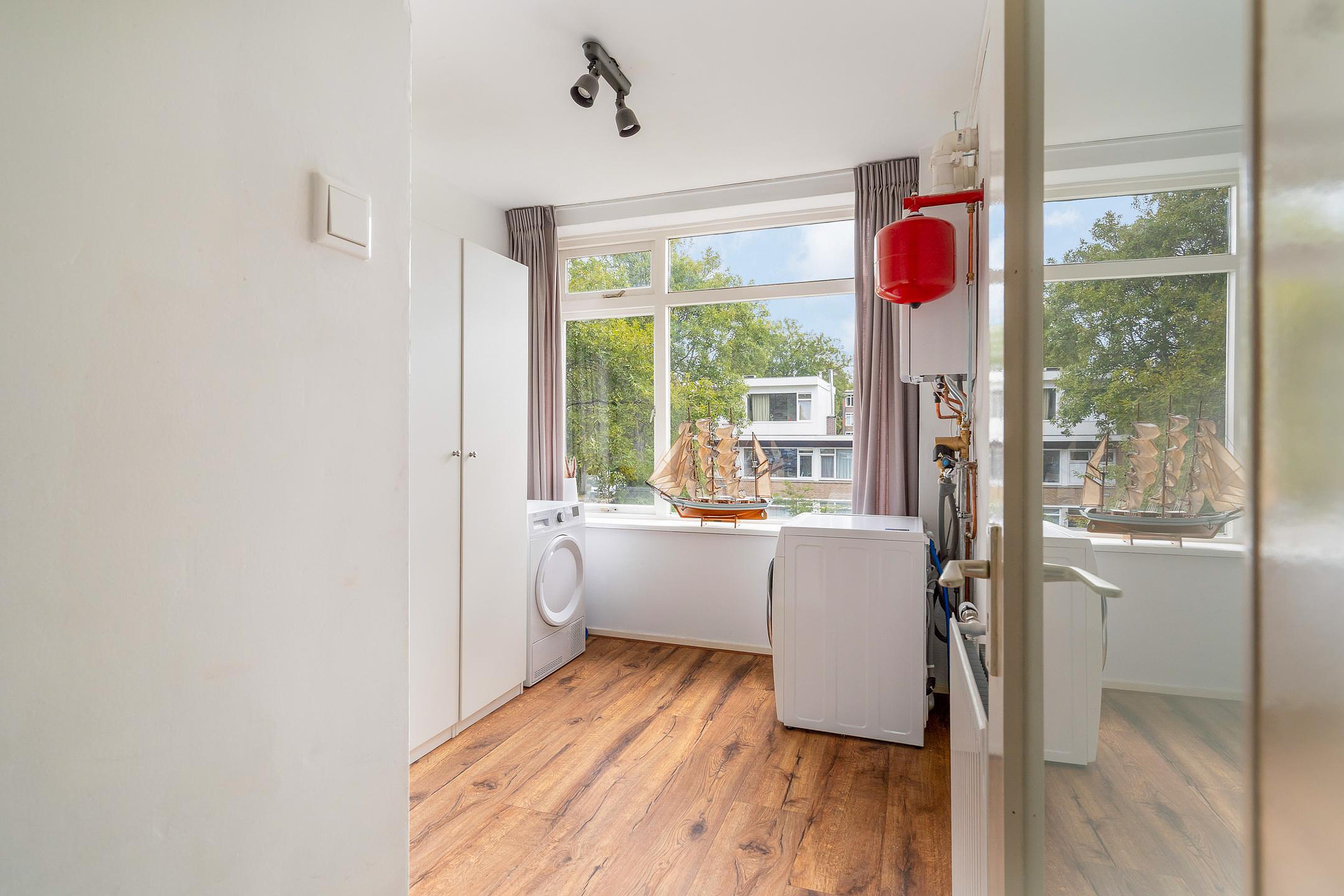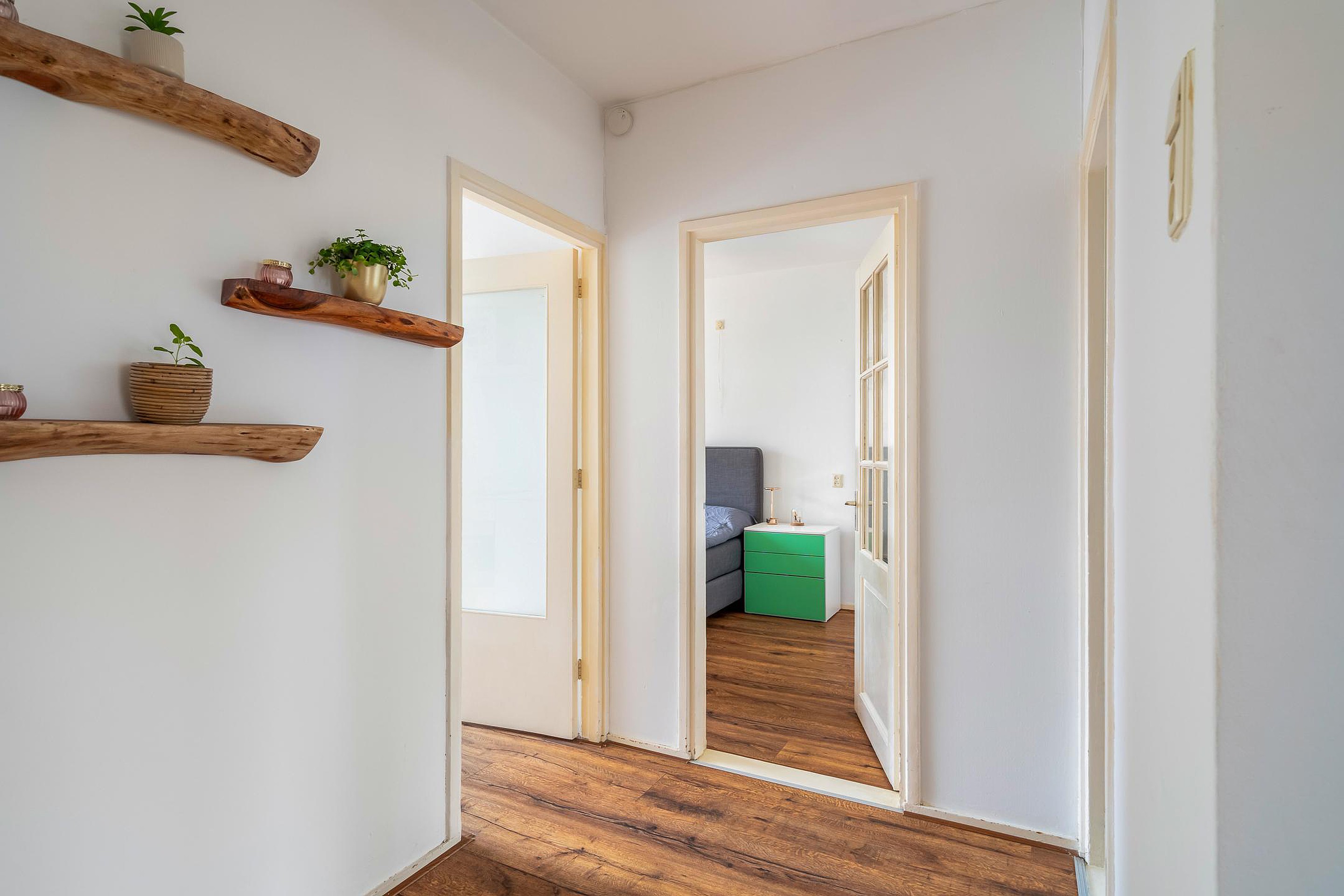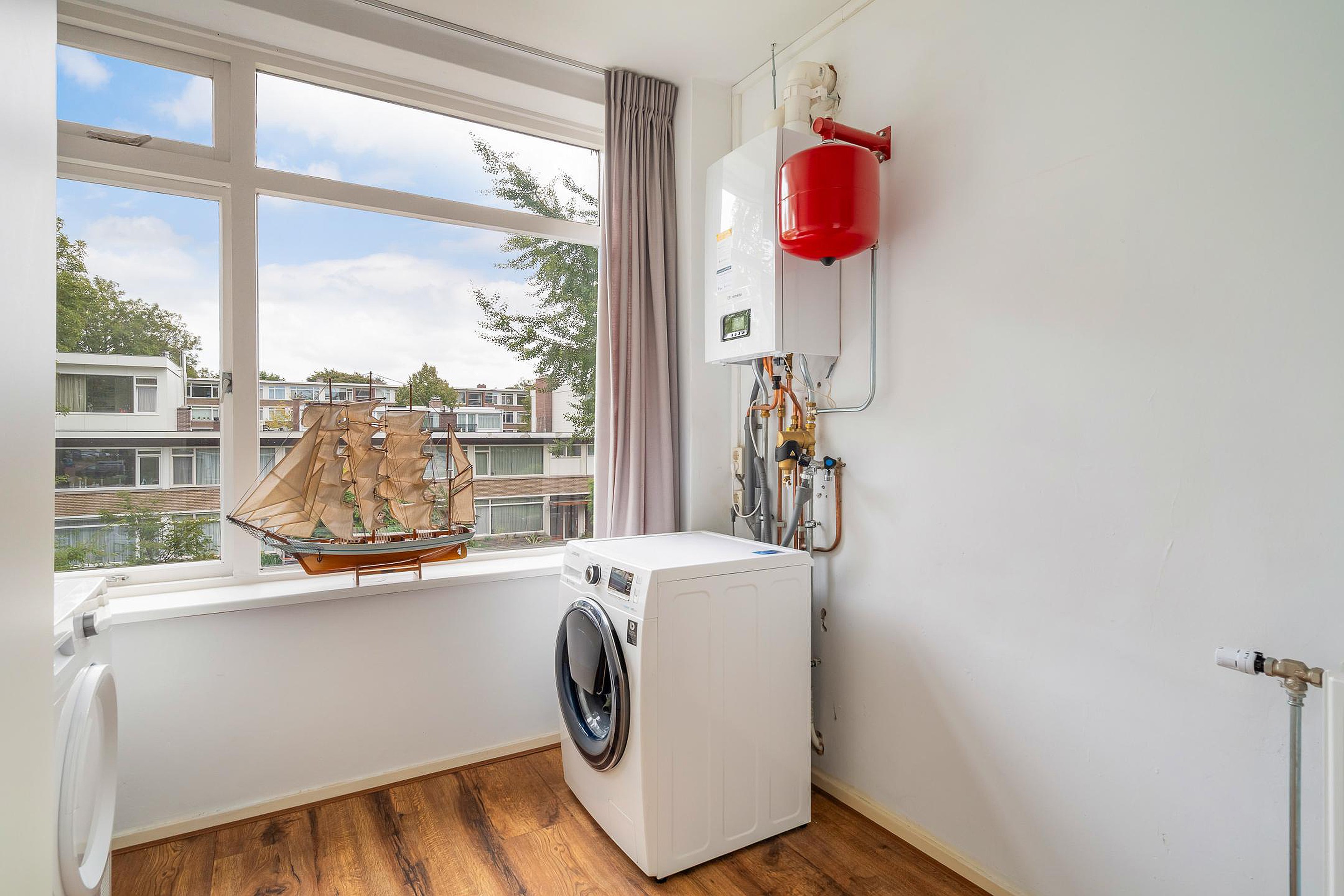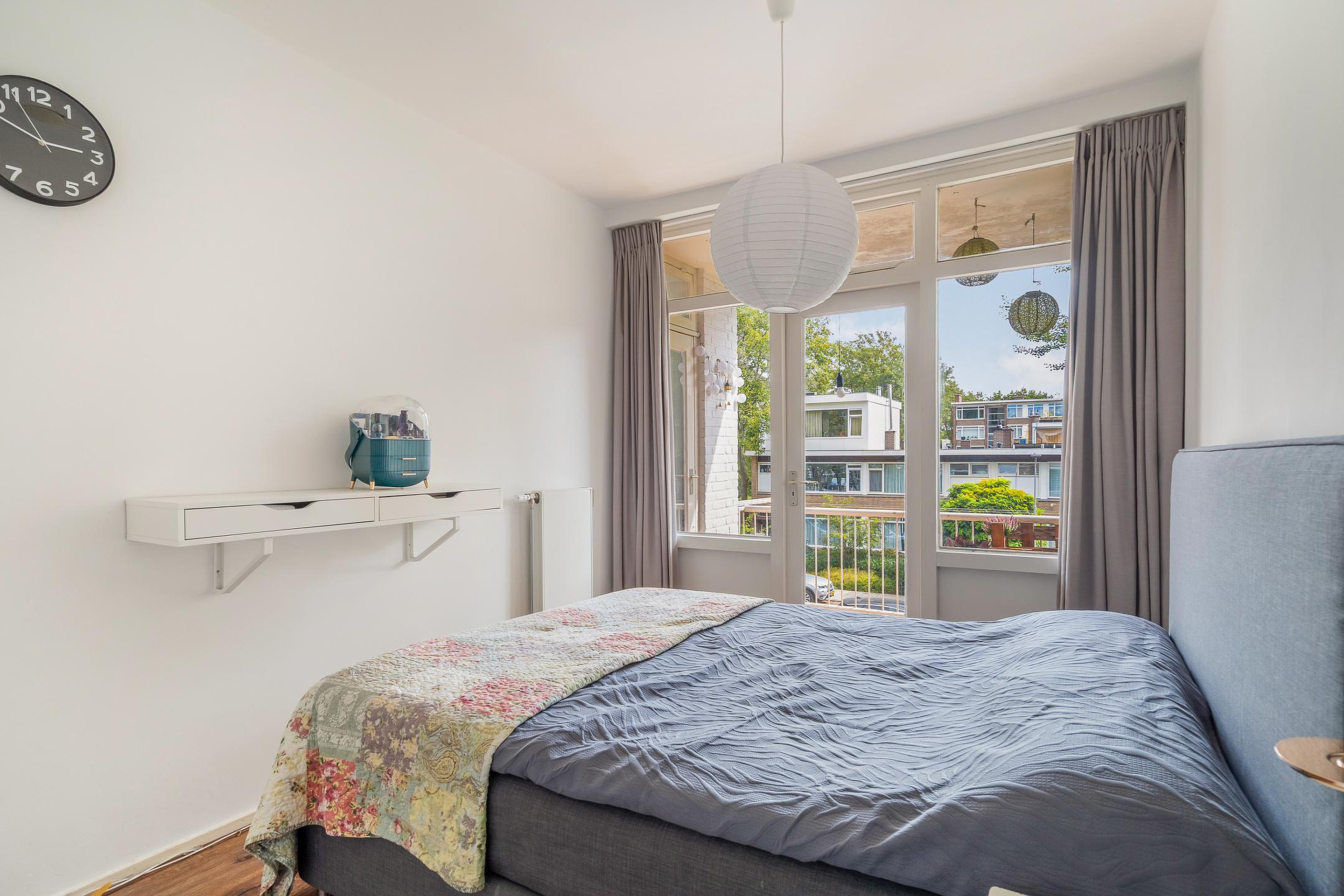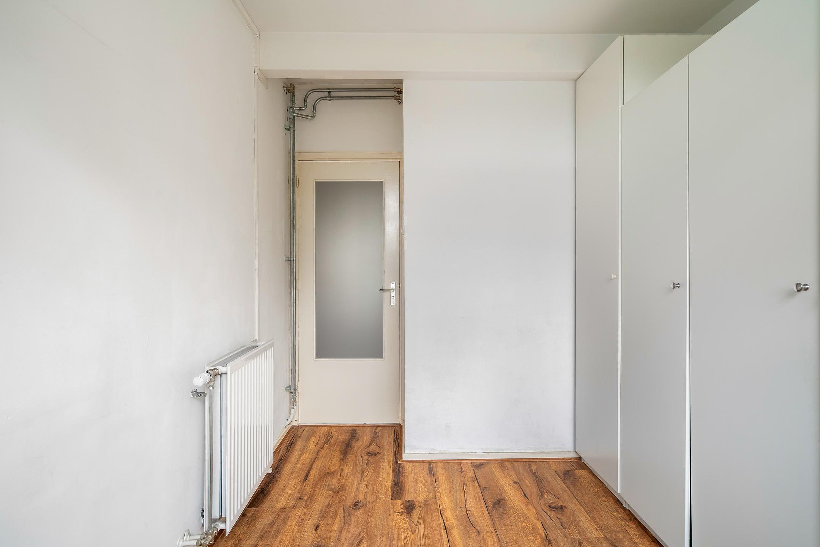 De ruime hoofdslaapkamer aan de achterzijde geeft toegang tot het zonnige balkon op het zuidoosten – een heerlijke plek om je dag te beginnen met een kop koffie in de zon. De tweede slaapkamer aan de achterzijde wordt nu gebruikt als wasruimte, met plek voor de wasmachine en een gloednieuwe cv-combiketel (Remeha, 2025). Aan de voorzijde bevindt zich een slaapkamer van goed formaat, ideaal als logeerkamer, kinderkamer of thuiskantoor.