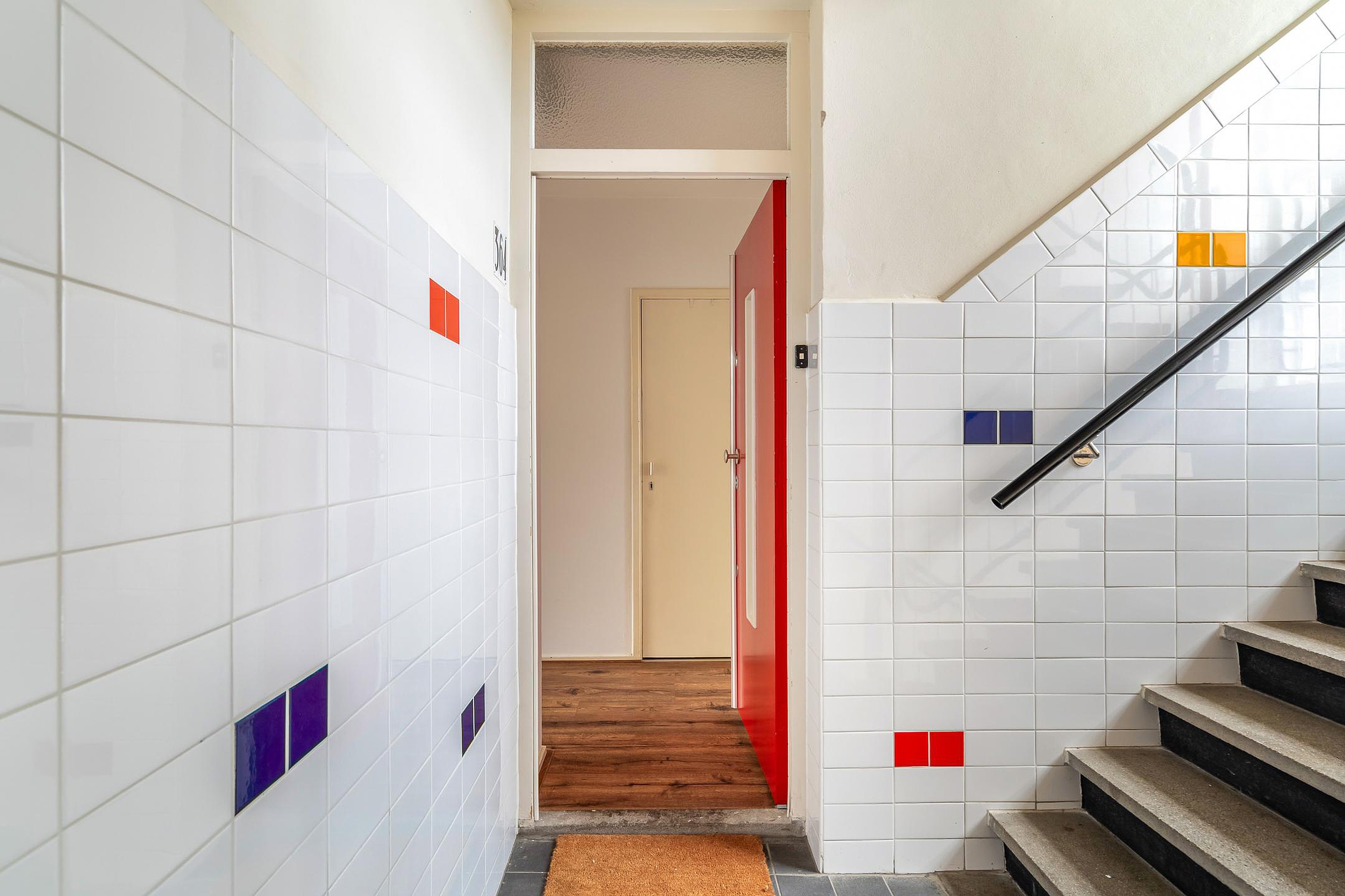 Via de afgesloten hoofdentree met videofooninstallatie kom je het gebouw binnen en neem je de trap naar de eerste verdieping. De centrale hal geeft toegang tot alle vertrekken, waaronder de lichte en uitnodigende woonkamer. Grote raampartijen zorgen voor een fijne lichtinval en creëren een warme sfeer – dé plek om heerlijk te ontspannen na een lange dag.