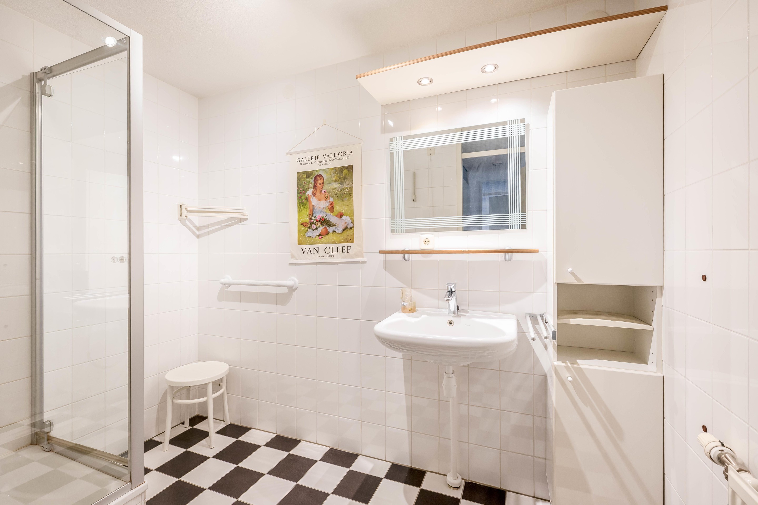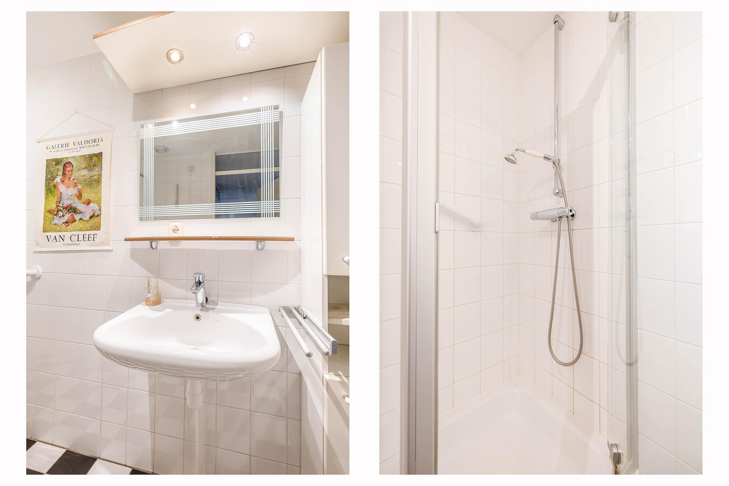- Sanitair en techniek: De badkamer is functioneel ingericht met een douchecabine, wastafelmeubel en extra kastruimte. Er is een aparte waskast met aansluitingen voor wasmachine en droger. De verwarming wordt geregeld via een Nefit HR-ketel uit 2020.