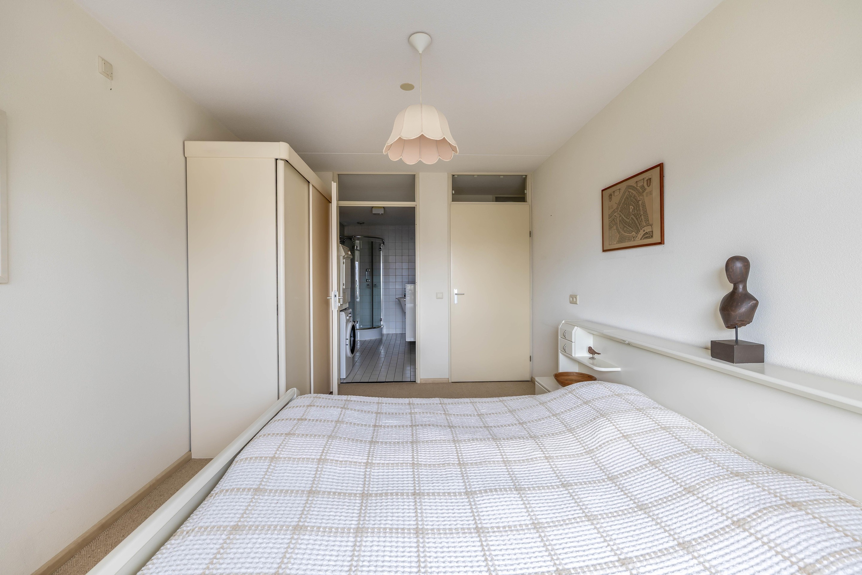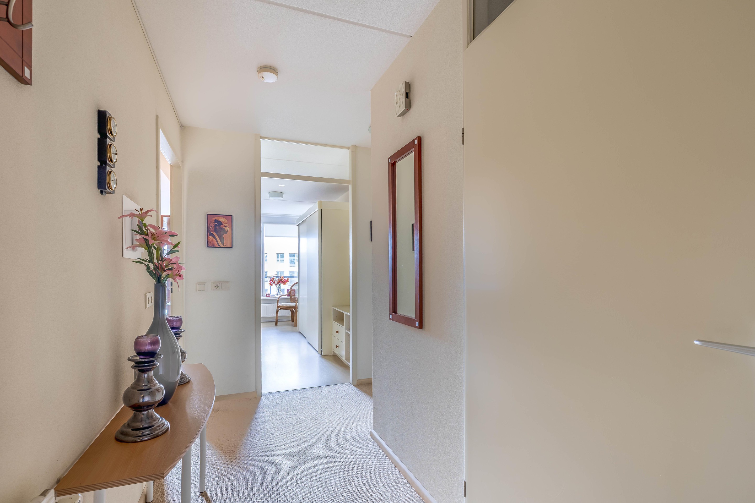 Via de centrale entree en lift kom je op de derde verdieping, waar de lichte, gestoffeerde hal toegang biedt tot het appartement. Naast de voordeur bevindt zich de meterkast met 7 groepen en dubbele aardlekschakelaar.