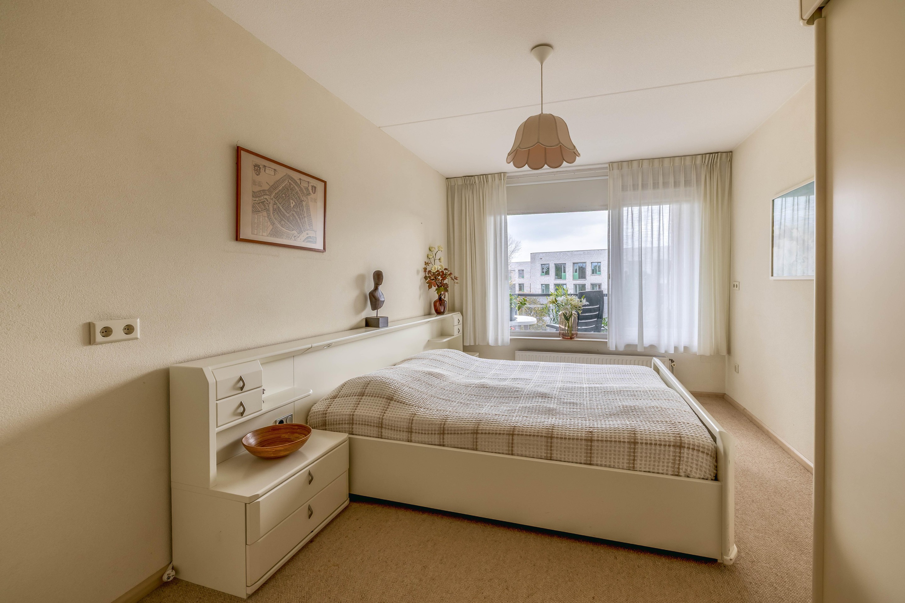 Het appartement beschikt over twee slaapkamers aan de achterzijde, beide grenzend aan het balkon. De kamers hebben een praktische, rechthoekige indeling (ca. 2,98 x 4,97 m en 2,20 x 4,97 m) en zijn, net als de woonkamer en keuken, voorzien van vloerbedekking.