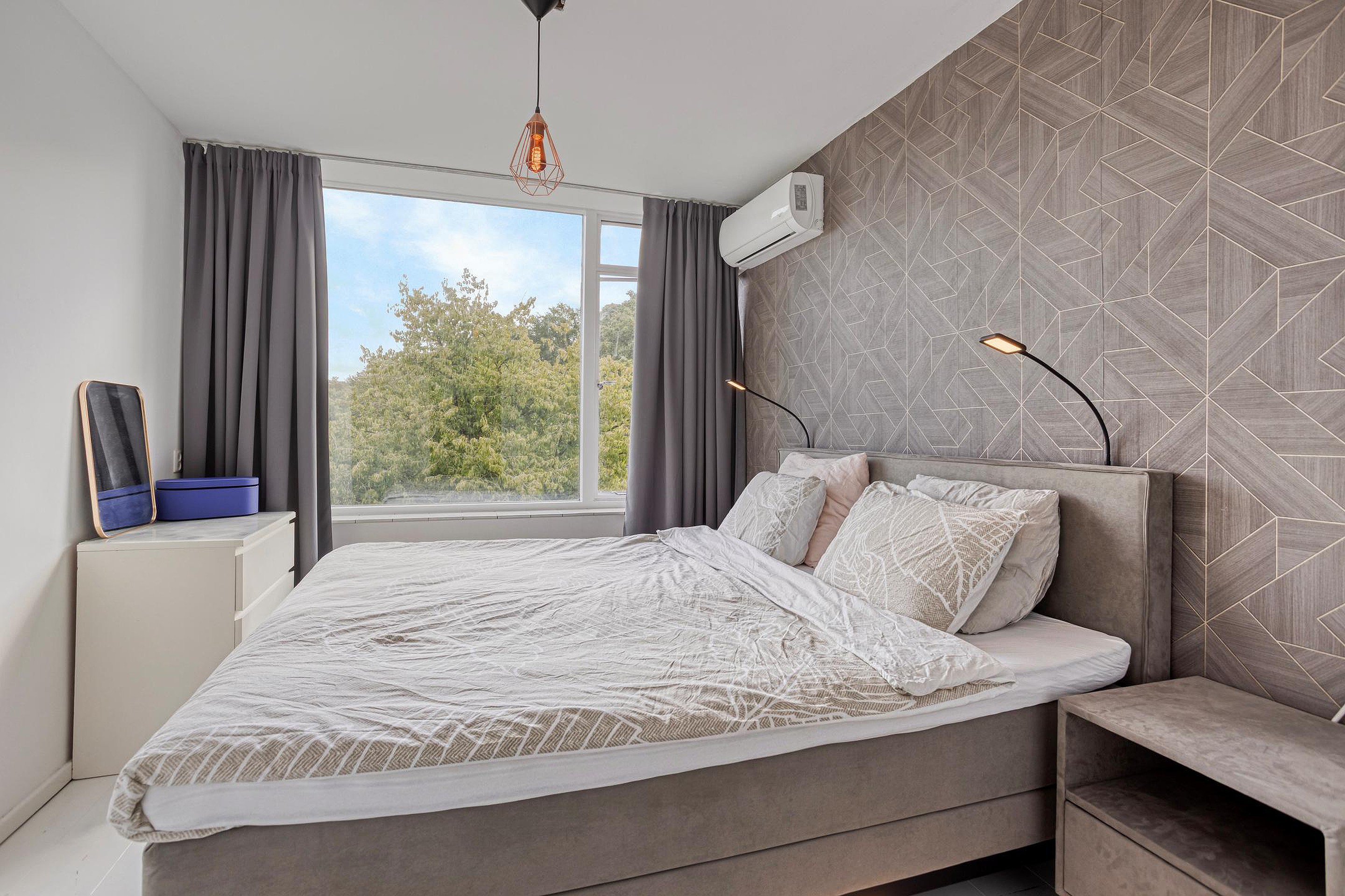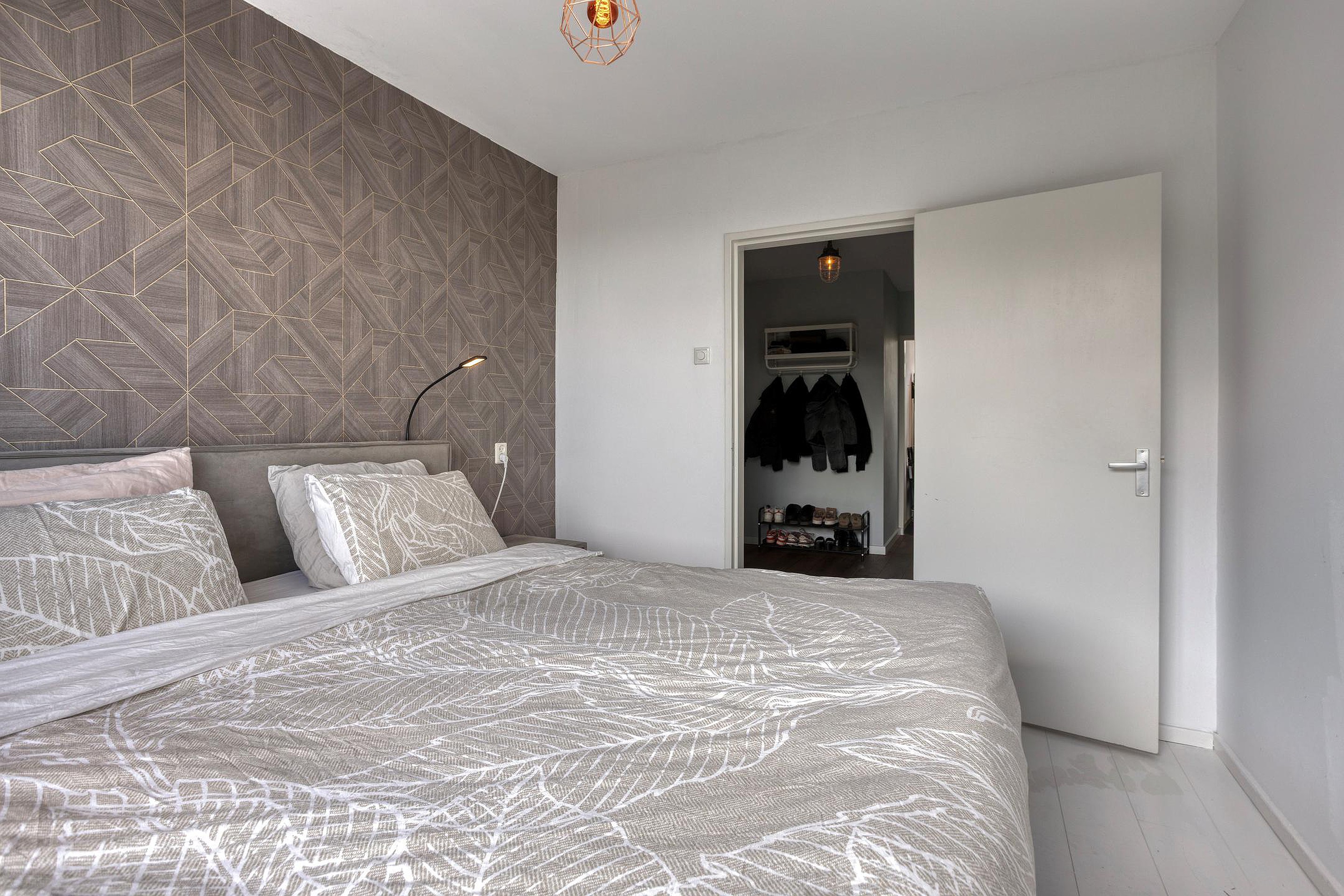 De slaapkamers zijn voorzien van een nette afwerking; nette wanden en een laminaatvloer. De grote slaapkamer is gelegen aan de voorzijde van het appartement en beschikt over airconditioning (2020). Deze kamer heeft een fraai uitzicht en is heerlijk ruim. De tweede slaapkamer is voorzien van de witgoedaansluitingen, een op maat gemaakte inbouwkast (2020) en er is een praktische schuifdeur geplaatst die achter de inbouwkast valt. Deze ruimte is gemakkelijk weer te gebruiken als slaapkamer.