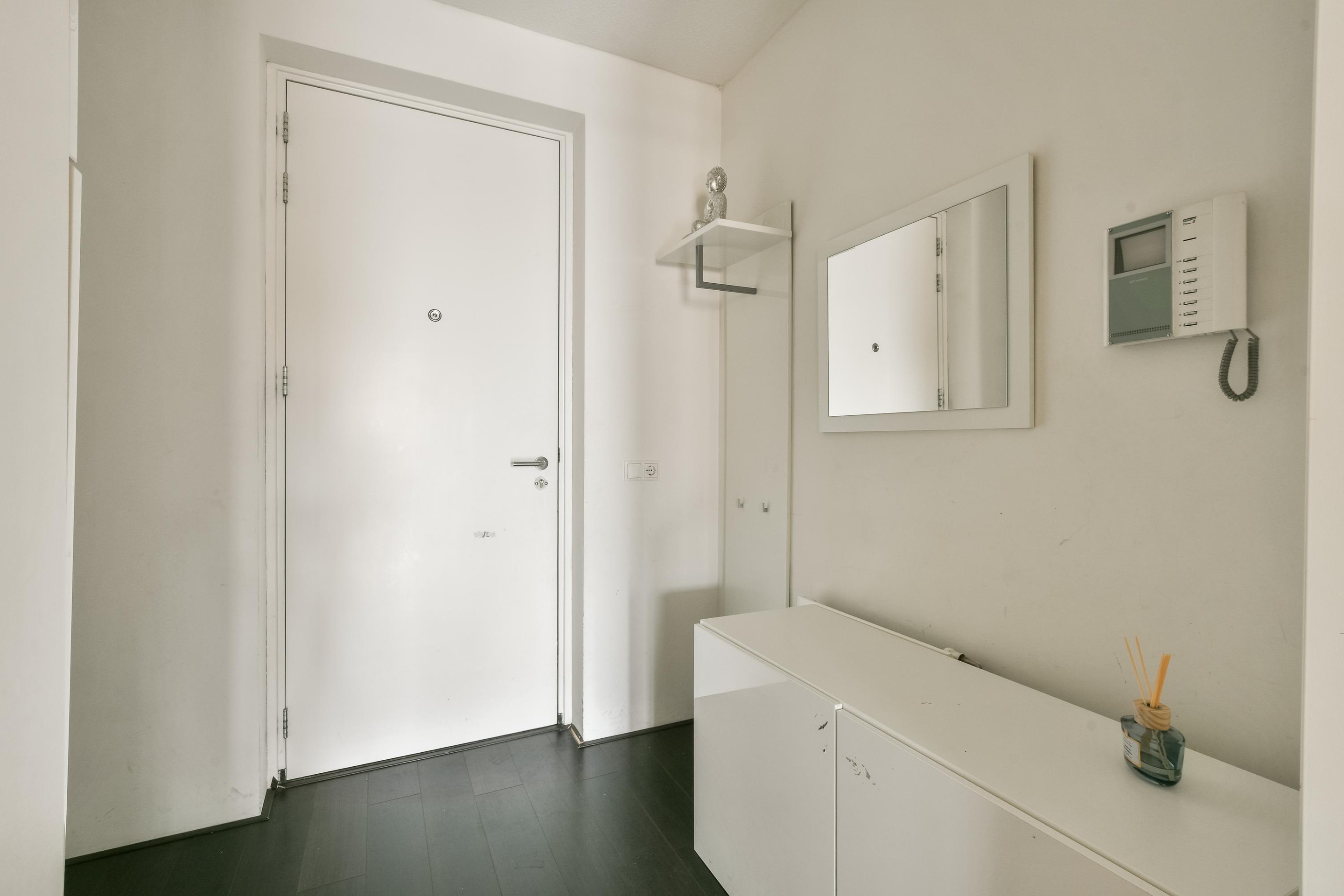 Entree op de 5e verdieping van het complex. Vanuit de hal heeft u toegang tot het toilet en de ruime woonkamer met open keuken.