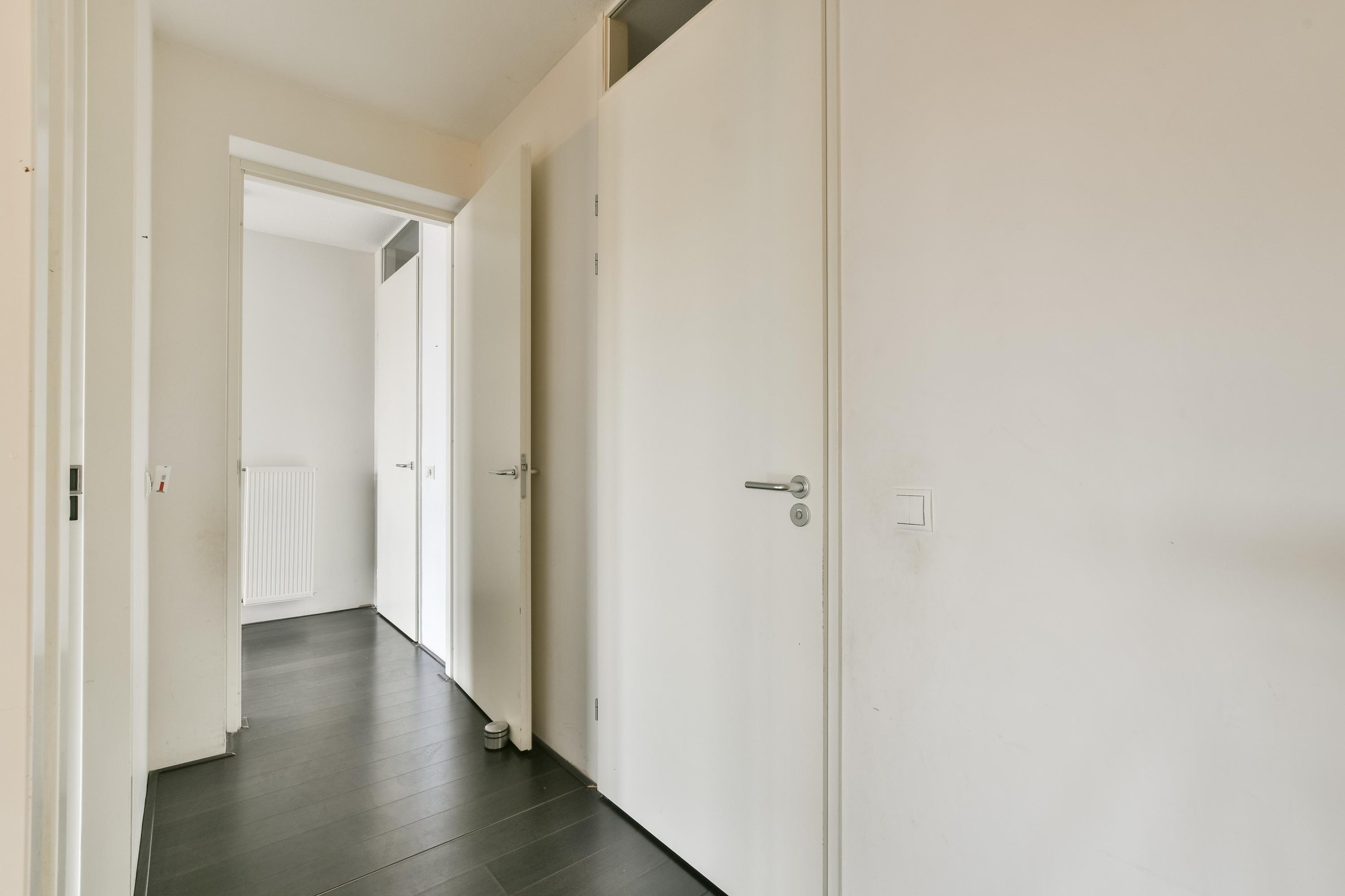Vanuit de woonkamer bereikt u de twee slaapkamers, de badkamer en de inpandige berging. Beide slaapkamers bieden eveneens toegang tot het balkon. De badkamer is beschikt over een tweede toilet, wastafel(meubel), aparte opbergkast en een inloopdouche.