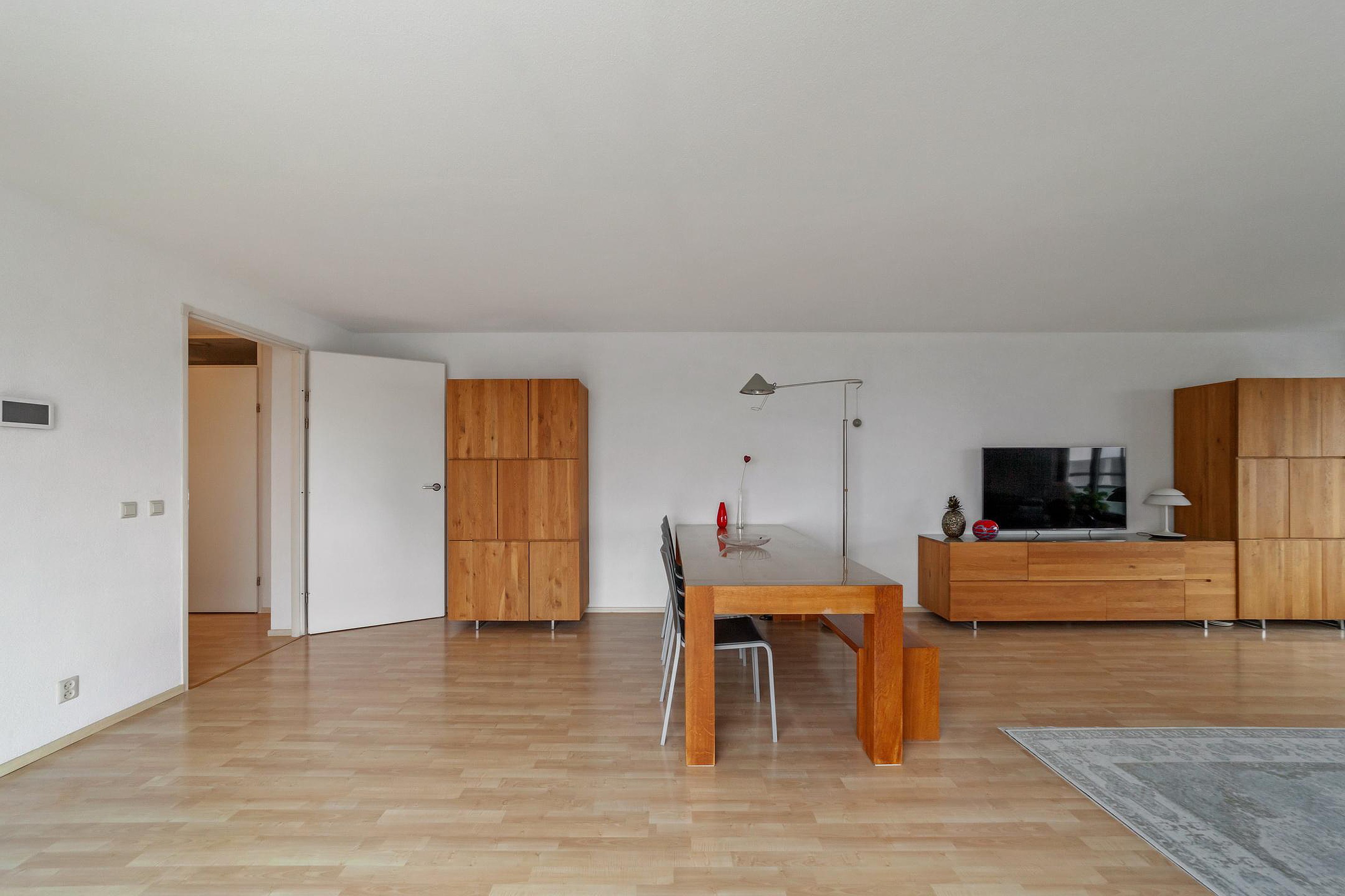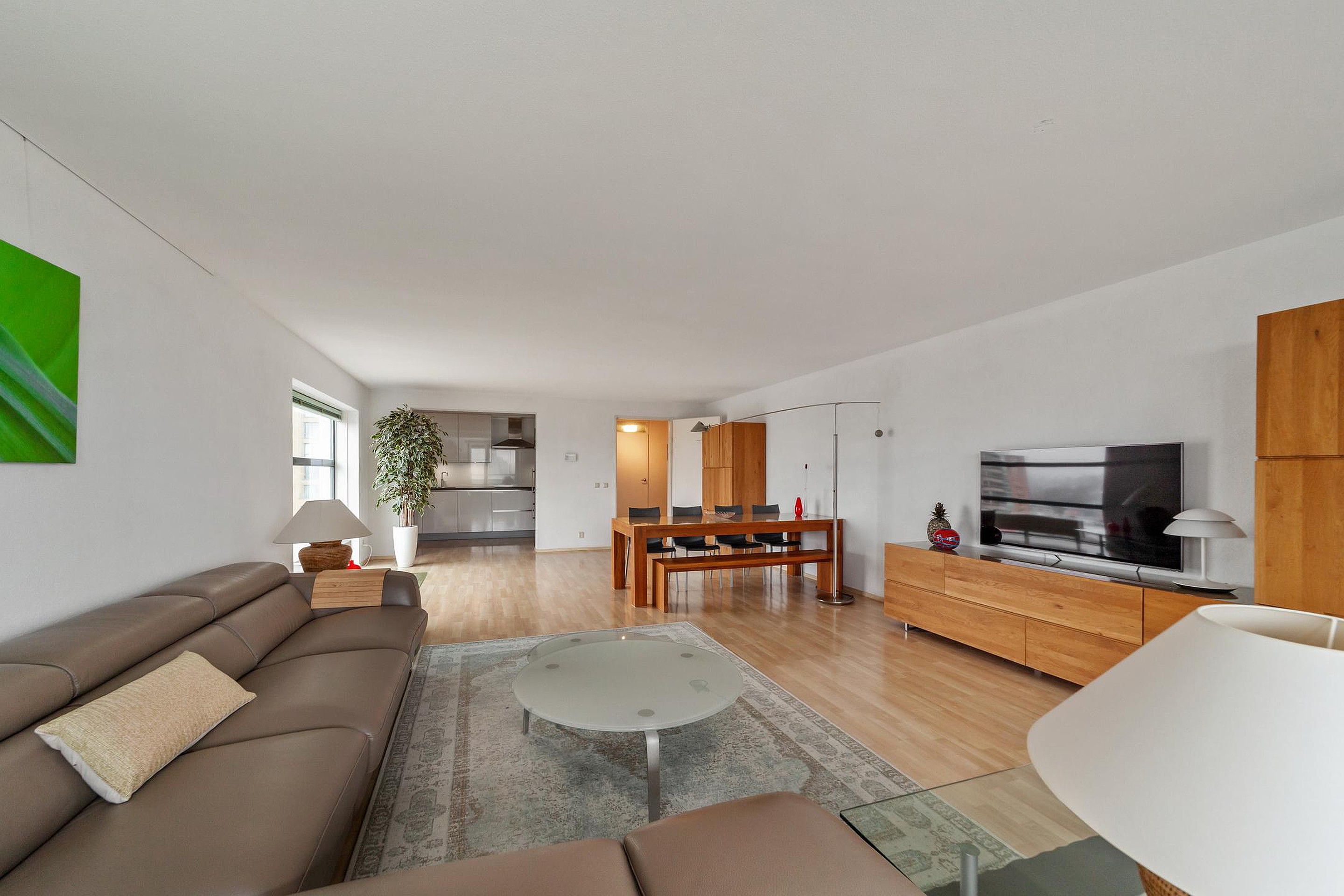 The large windows allow plenty of natural light into the living room. The spacious balcony—which can be closed off into a cozy conservatory thanks to sliding doors—and the practical layout make this apartment a fantastic place to stay.