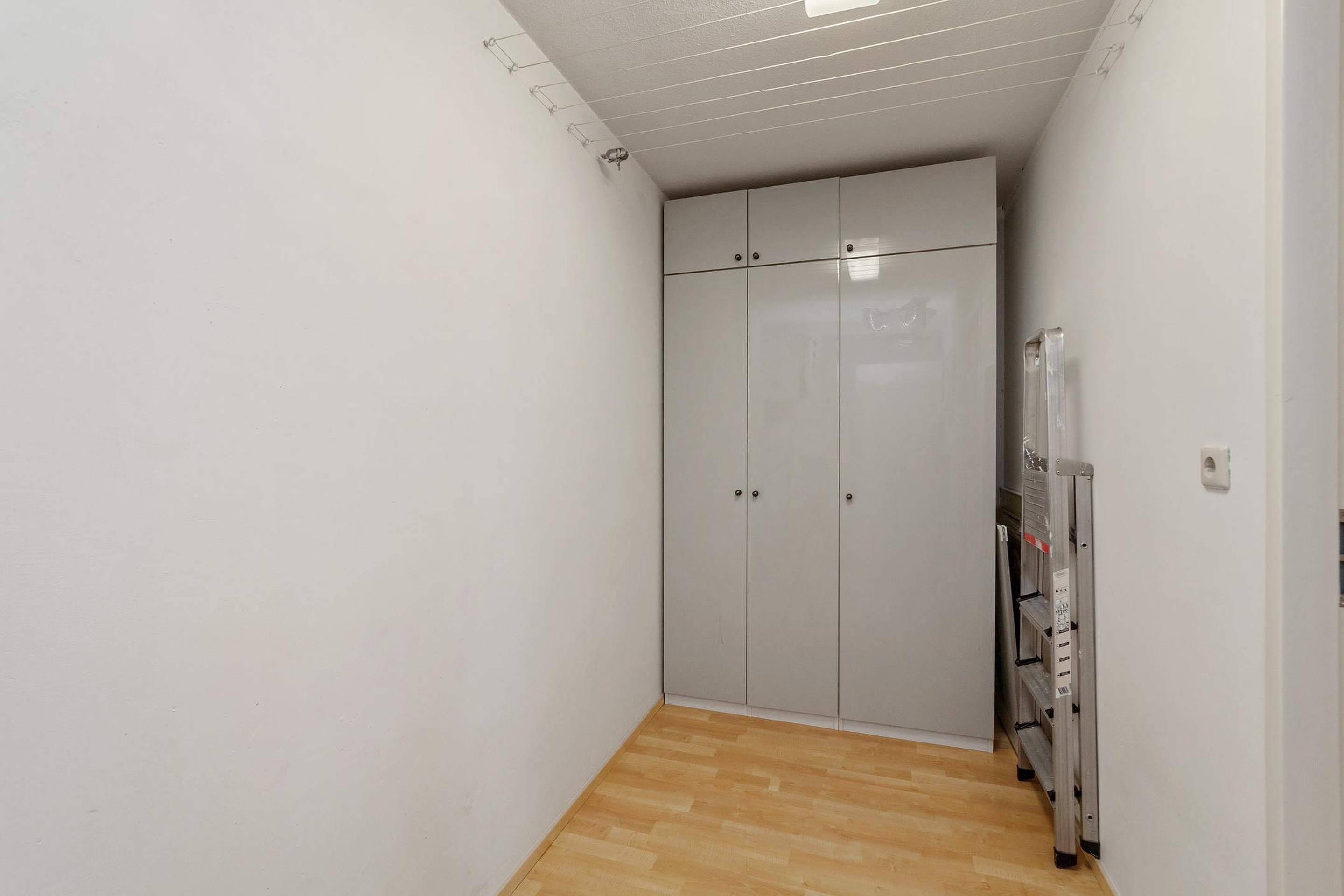 Er is een aparte ruime berging (voorraadkast) met daarin de mechanische ventilatie en de Cv-ketel.