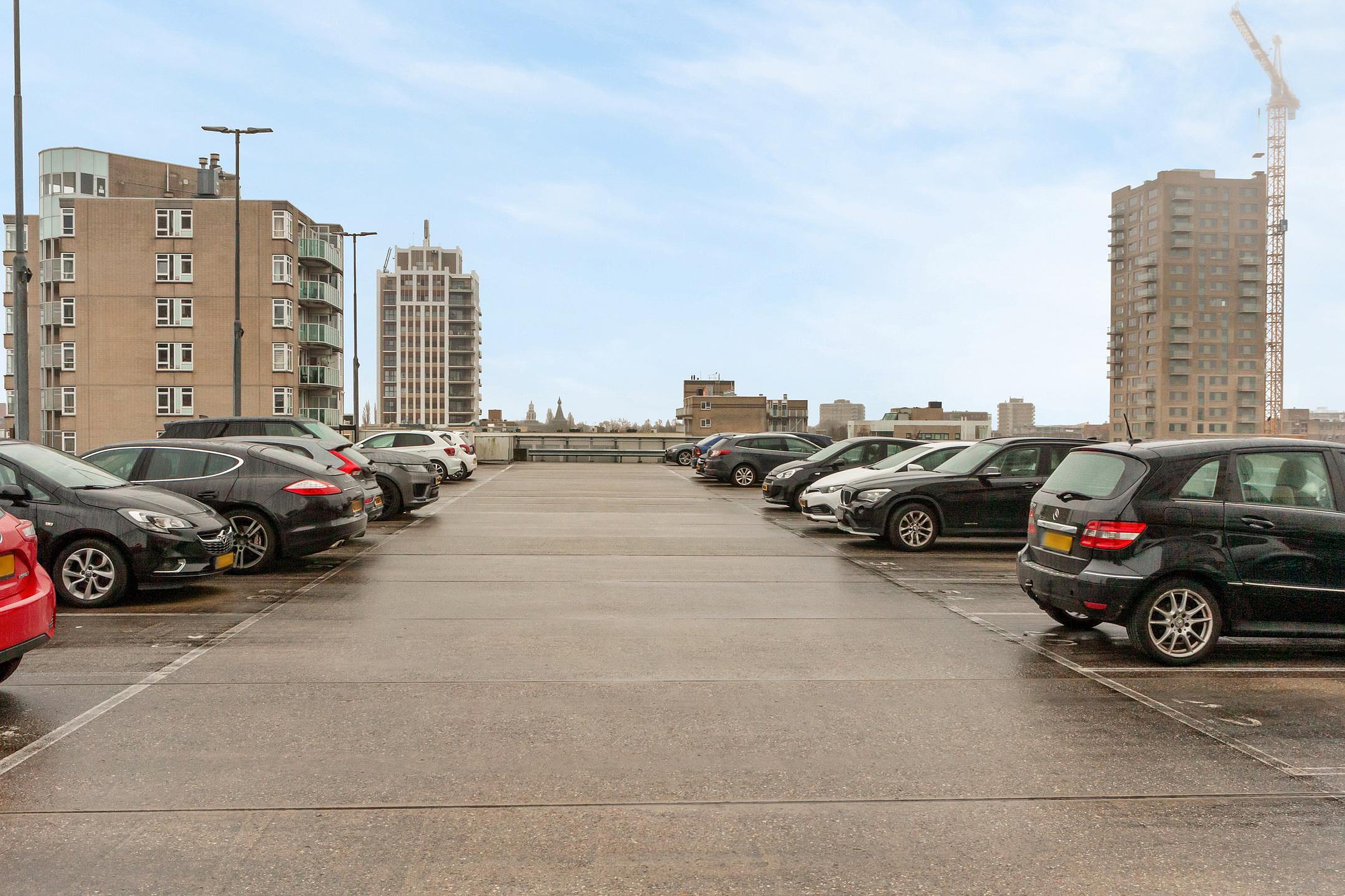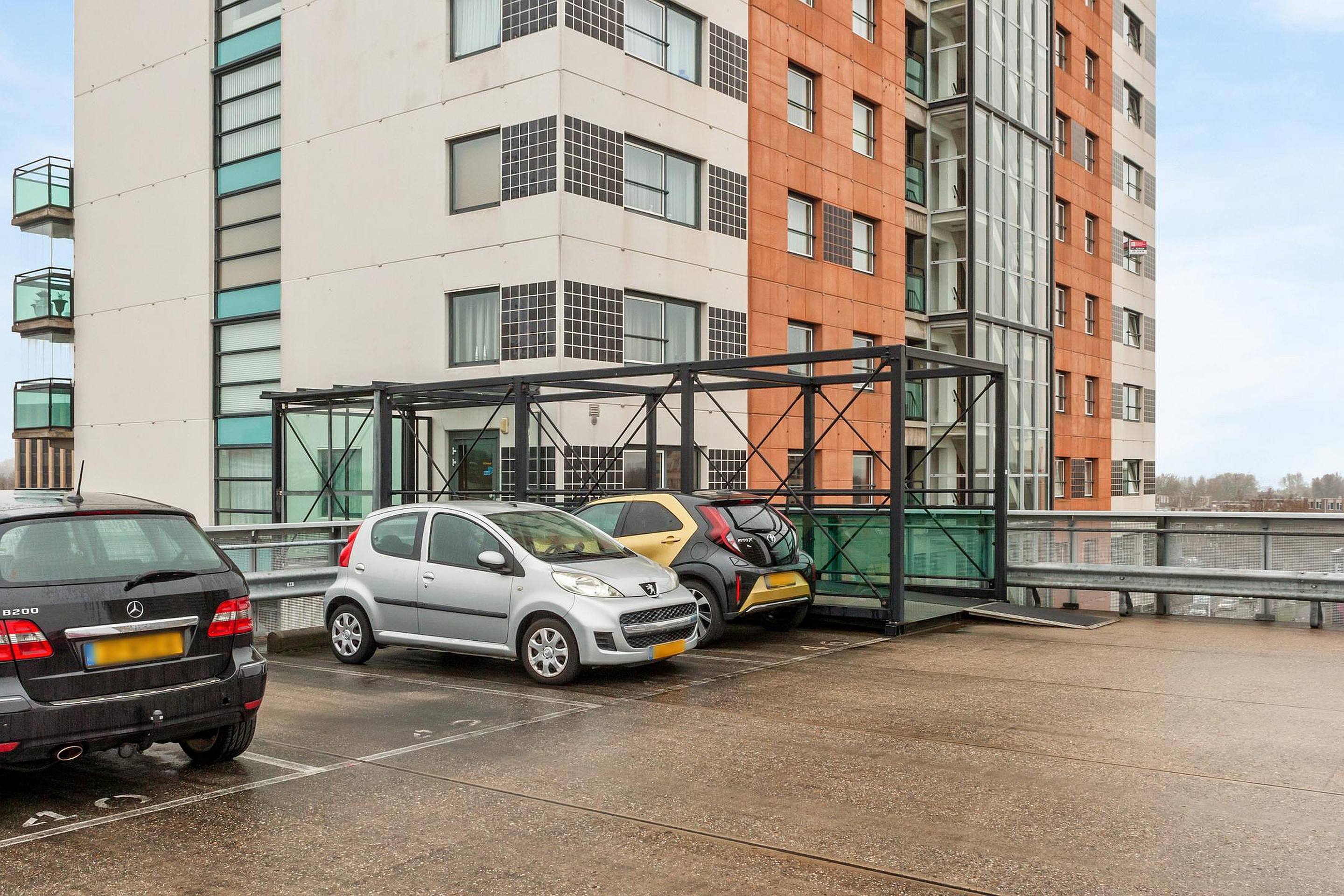 Bij het appartement hoort een eigen berging op de 1e verdieping en een eigen parkeerplaats op het parkeerdek in de afgesloten parkeergarage. Vanuit de garage loop je direct het complex in.
