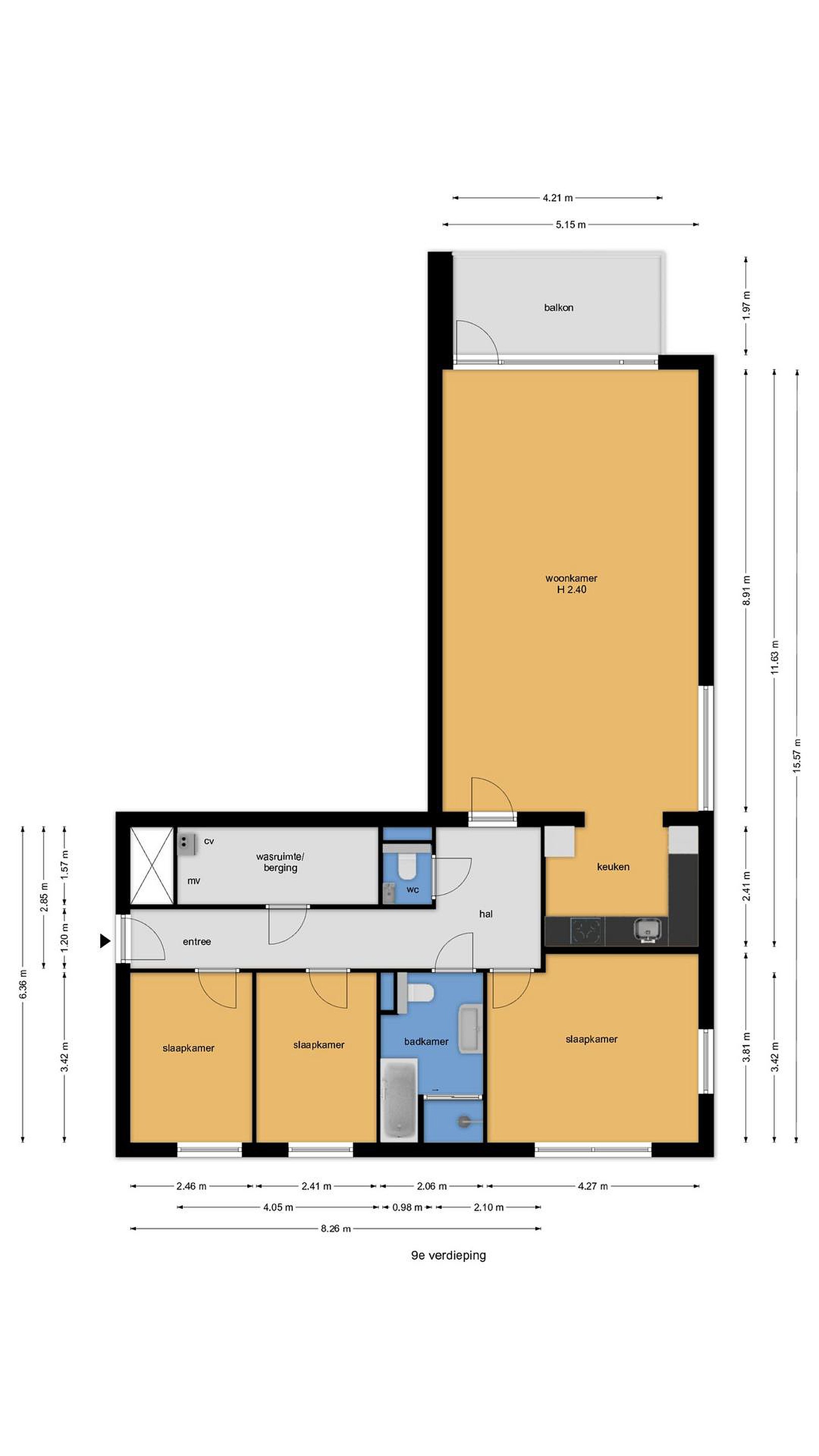 Het appartement beschikt over 3 slaapkamers, waarvan 1 master bedroom.