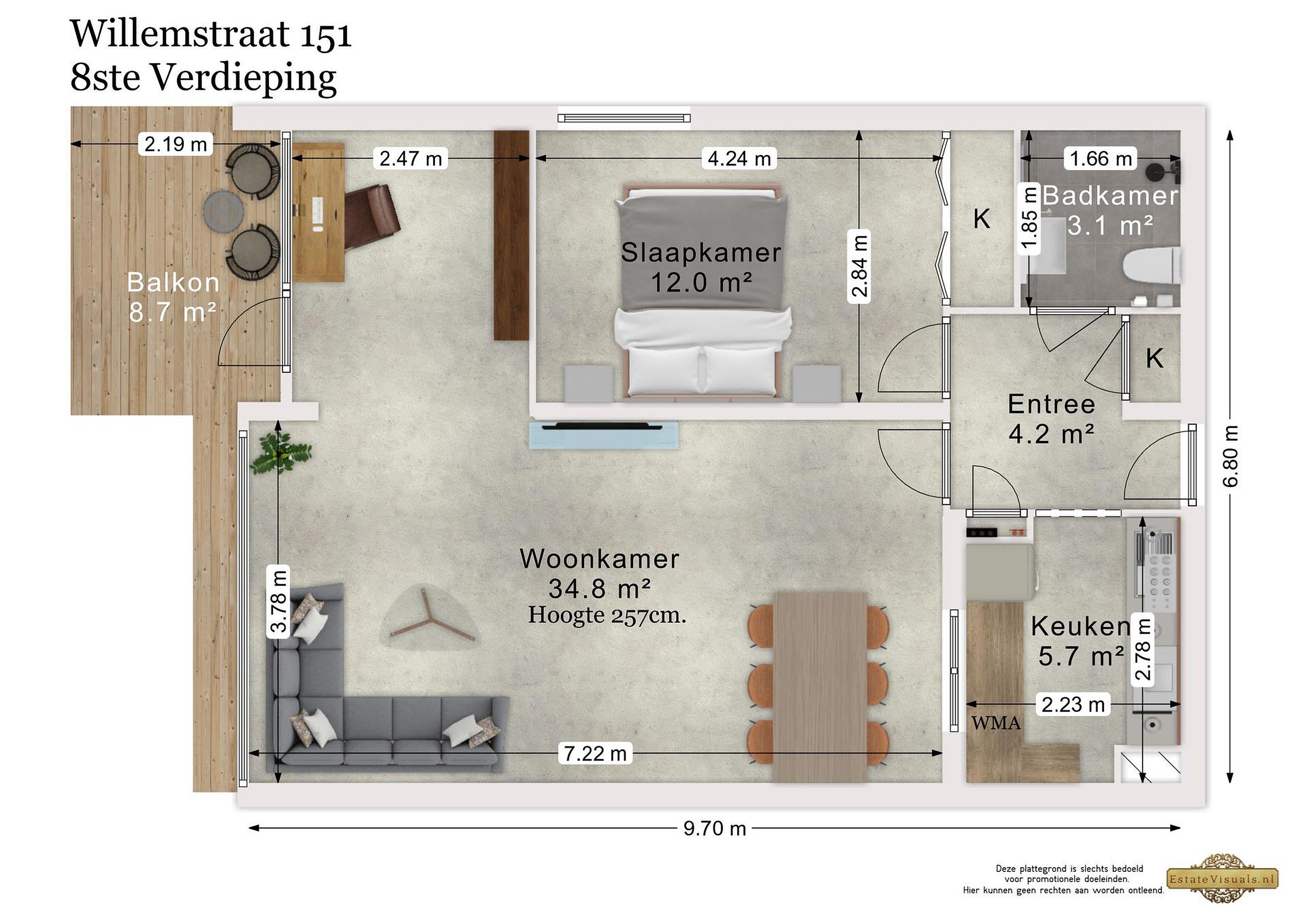 - VvE-bijdrage € 224,77 per maand (incl. reserveringen onderhoud, huismeester, verzekeringen, schoonmaak gemeenschappelijke ruimtes) voorschot stookkosten is € 100,00 per maand.