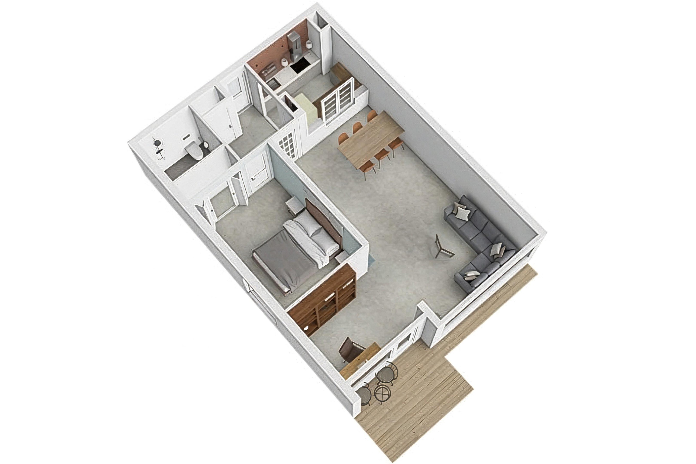 De slaapkamer beschikt over een raam in de zijgevel en een vaste kast.