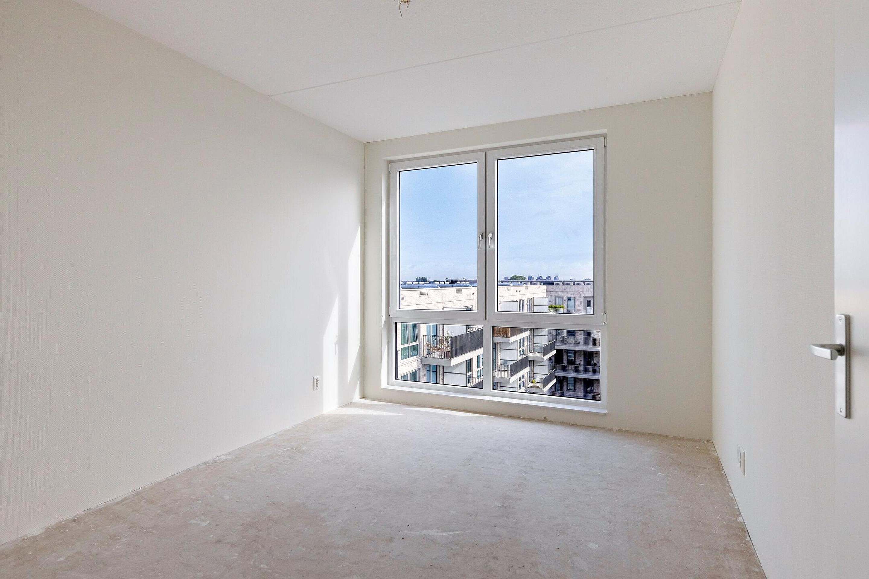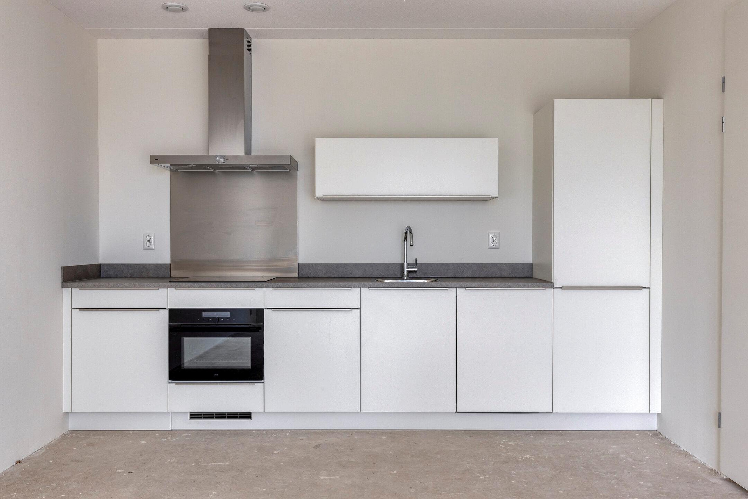 Entree woning. Gang met videofooninstallatie, meterkast en een moderne toiletruimte met hangend closet + fonteintje. Separate (berg)ruimte met warmtepompsysteem (lucht-water), wasmachineaansluiting en de opstelplaats voor de warmte terugwin installatie. De geheel betegelde badkamer is voorzien van een inloopdouche, wastafel en een designradiator (elektrisch). De twee slaapkamers bevinden zich aan de achterzijde van de woning. De verdiepingshoge raampartij van de dubbele openslaande deuren zorgen voor een lichte woonkamer. De moderne open keuken beschikt o.a. over een inductiekookplaat, afzuigkap, combi magnetron, koel/vriescombinatie en een vaatwasser. De wanden zijn netjes afgewerkt. De betonvloer van de gang, woonkamer, keukenruimte en de slaapkamers zijn nog niet afgewerkt. Dé kans om uw eigen wensen te realiseren! Vanuit de woonkamer, beide slaapkamers en het balkon heeft u uitzicht op o.a. de binnentuin.