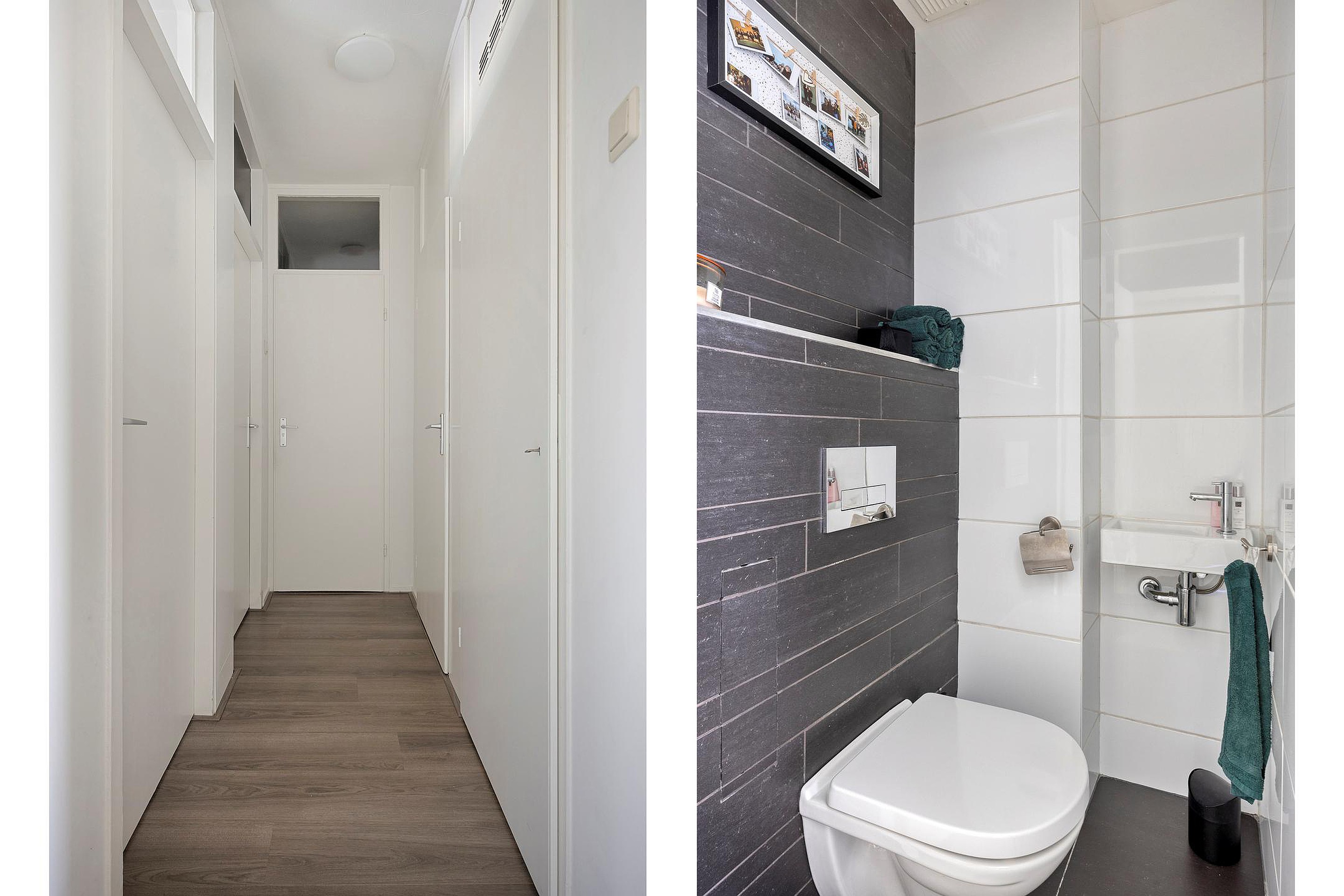 Ruime hal met toegang tot alle vertrekken en de meterkast.