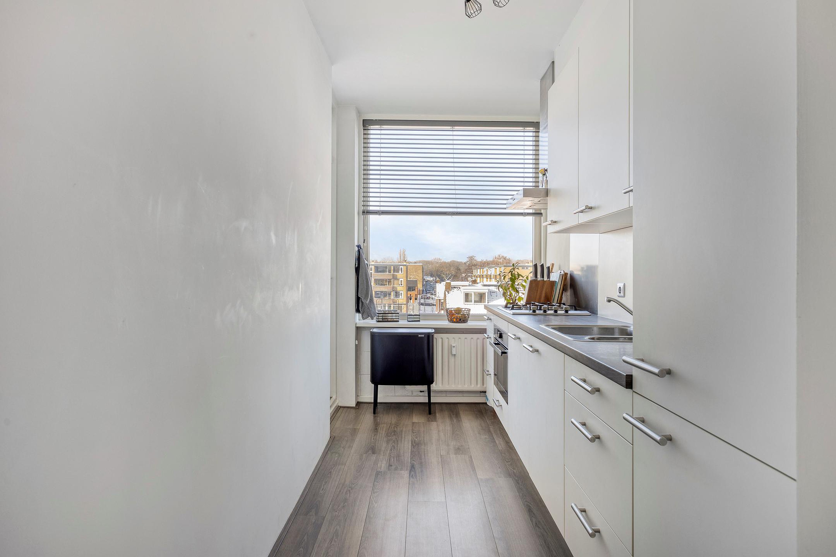 De keuken is voorzien van een moderne keuken opstelling (2021) met inbouwapparatuur. Hier vandaan heeft u toegang tot een klein balkon aan de voorzijde van het appartement.