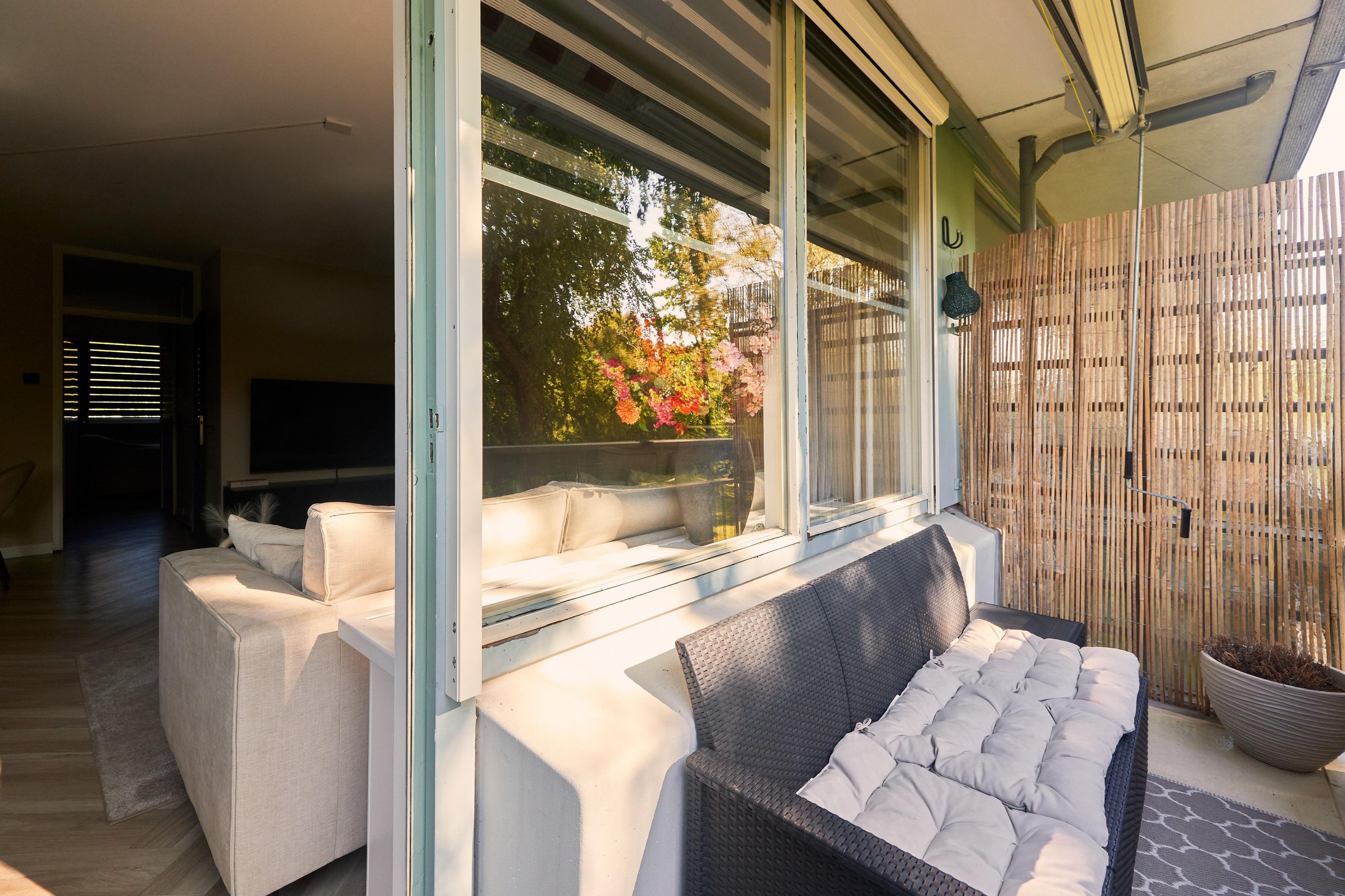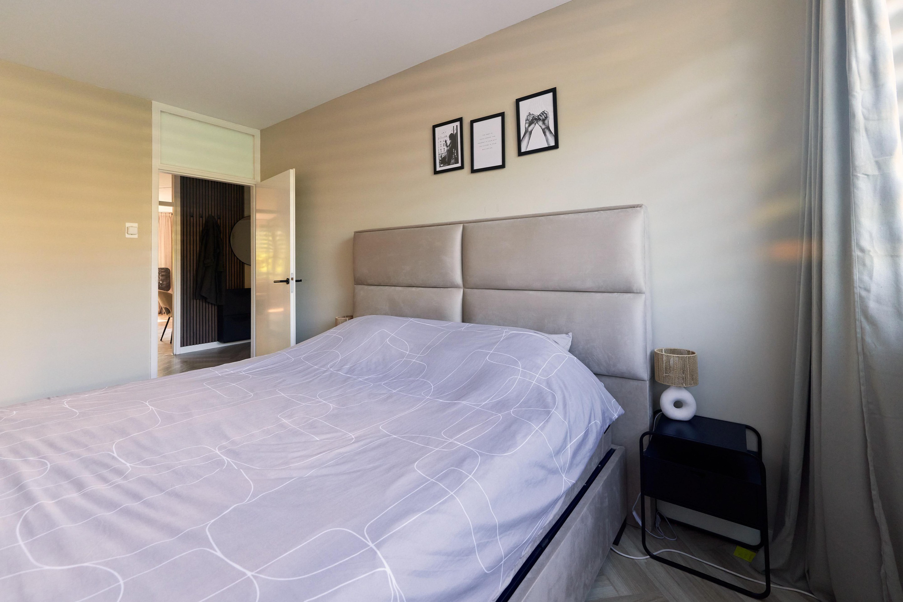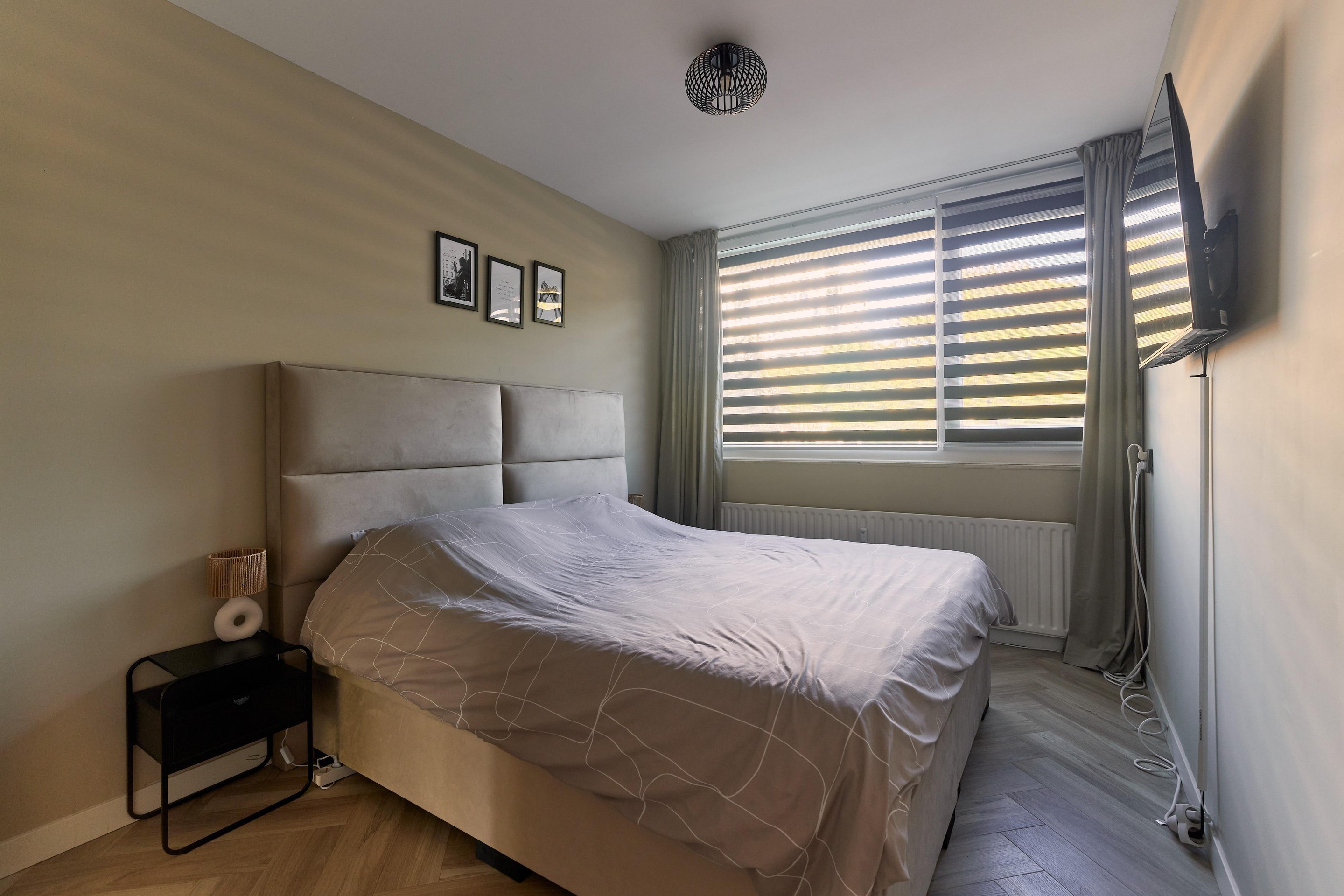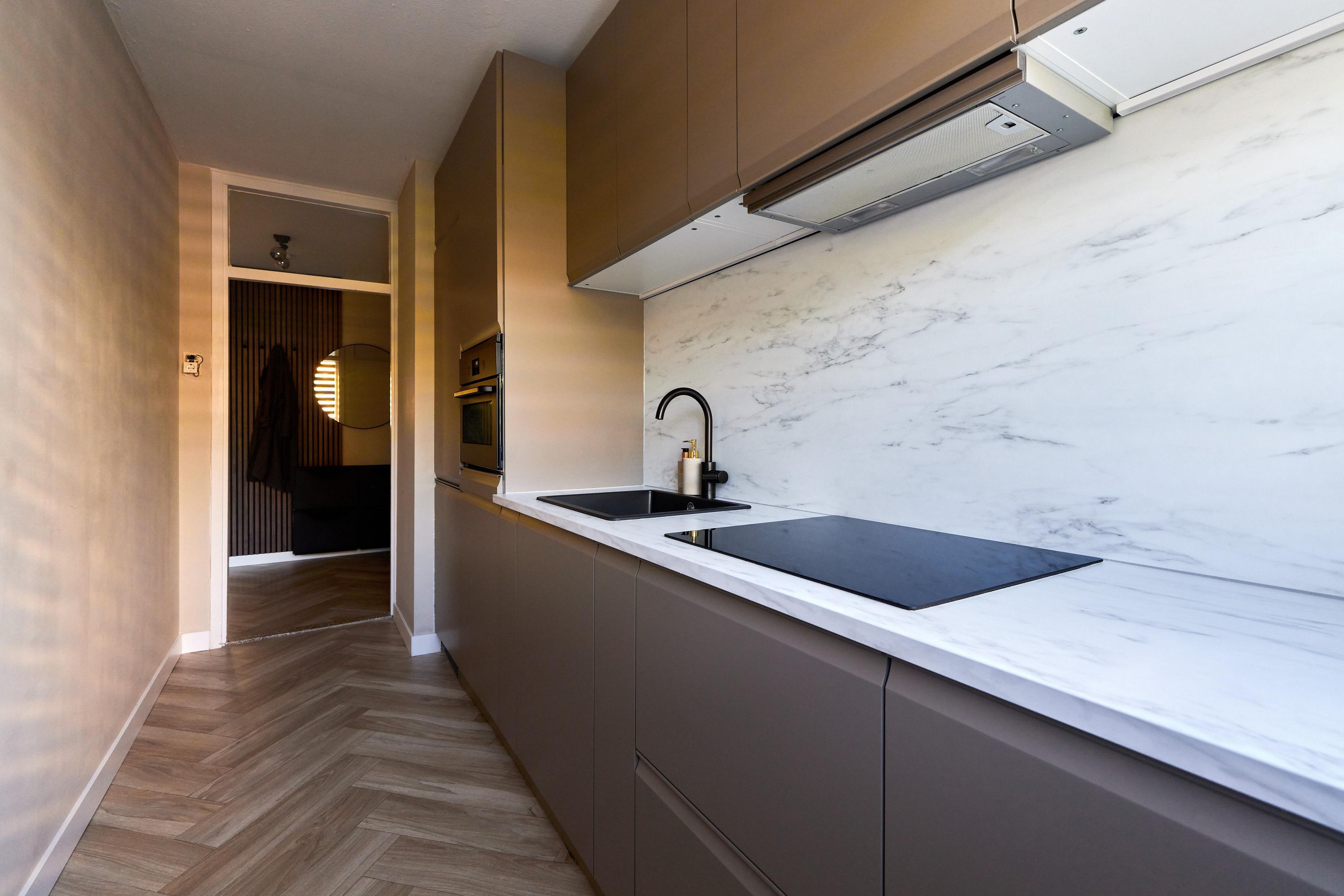 Begane grond Via de centrale entree op de begane grond, met intercom en brievenbussen, stap je het verzorgde complex binnen. Het appartement op de eerste verdieping bereik je eenvoudig met de trap of de lift – ideaal voor wie gemak en toegankelijkheid belangrijk vindt. Achter de voordeur wacht een verrassend licht en goed onderhouden appartement, waar de strakke afwerking en de warme sfeer je meteen zullen aanspreken. De ruime hal biedt plaats aan je garderobe en geeft toegang tot alle vertrekken. De woonkamer is heerlijk licht dankzij de grote raampartijen en het vrije uitzicht. De moderne PVC-vloer loopt door het hele appartement en alle gordijnen, rolgordijnen en rails blijven achter. Vanuit de woonkamer stap je bovendien zo het balkon op, gelegen op het zonnige zuiden – een fijne plek om in alle rust te genieten van de middag- en avondzon. Grenzend aan de woonkamer ligt een van de twee slaapkamers, momenteel ingericht als werkkamer maar ook zeer geschikt als eetkamer of hobbyruimte. De tweede slaapkamer ligt aan de andere zijde van de hal en is eveneens licht en netjes afgewerkt. De keuken is in 2024 volledig vernieuwd: strak vormgegeven in een rustige kleurstelling met een stijlvolle marmerlook achterwand en uitgerust met moderne inbouwapparatuur zoals een 4-pits inductiekookplaat, afzuigkap, combimagnetron, vaatwasser, koelkast en vriezer. De badkamer is modern betegeld en voorzien van een inloopdouche, wastafelmeubel en verwarmde spiegel. Het toilet bevindt zich apart, naast de badkamer. Een groot pluspunt is de aanwezigheid van twee bergingen: één direct naast de voordeur, met elektra en aansluitingen voor de wasmachine en droger – handig dat ze niet in de badkamer staan – en een tweede, ruime berging op de begane grond, ideaal voor fietsen en grotere spullen. De verwarming verloopt via blokverwarming. De maandelijkse bijdrage bedraagt in totaal € 269,90, bestaande uit € 164,90 aan servicekosten en een voorschot van € 105,- voor de stookkosten.