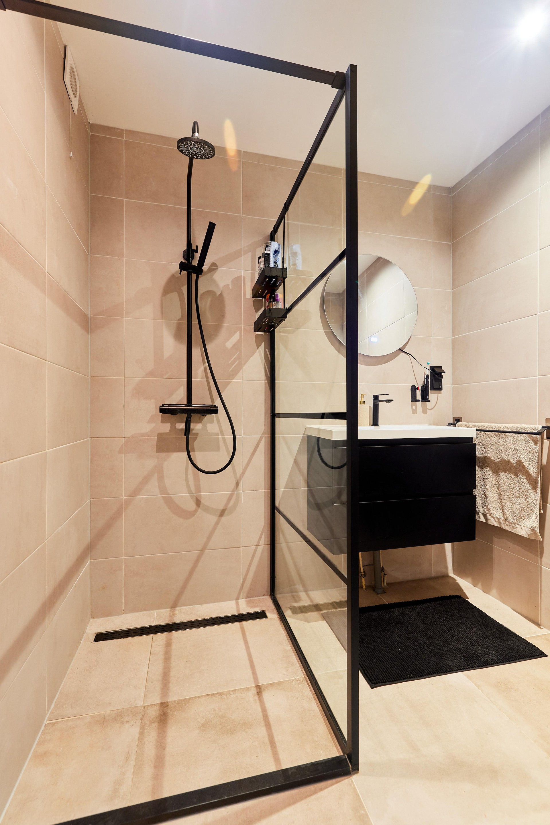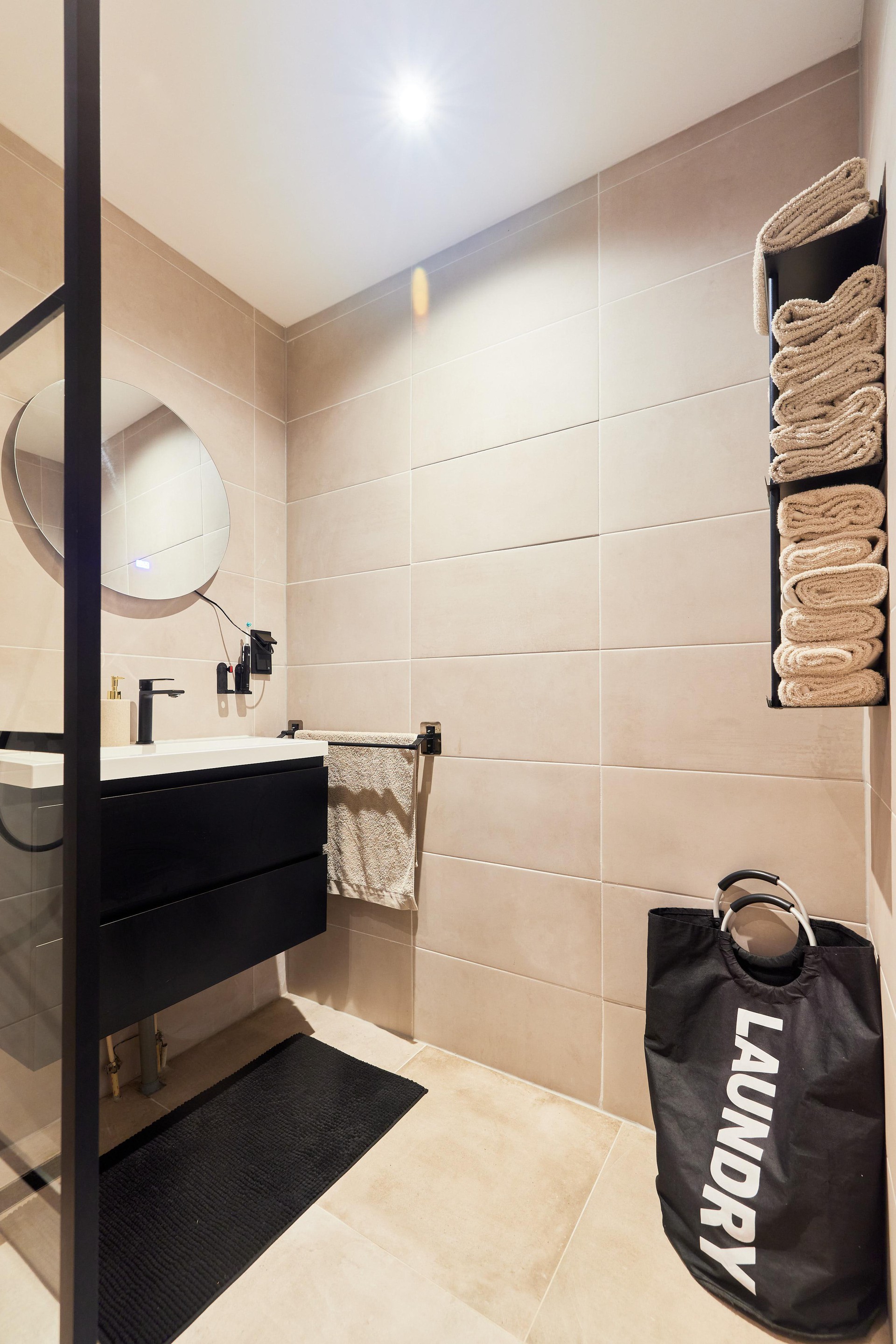 - Badkamer met inloopdouche, wastafelmeubel en verwarmde spiegel