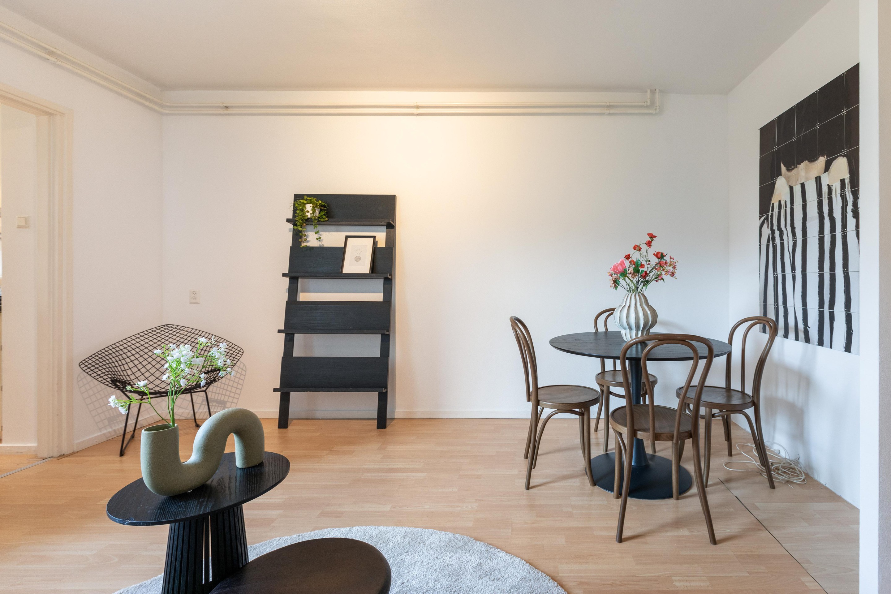 At the front of the apartment is the spacious bedroom, offering a pleasant view of the lively Van Oldenbarneveldtstraat. At the rear, the bright living room overlooks the quiet courtyard garden — a perfect place to unwind after a busy day.