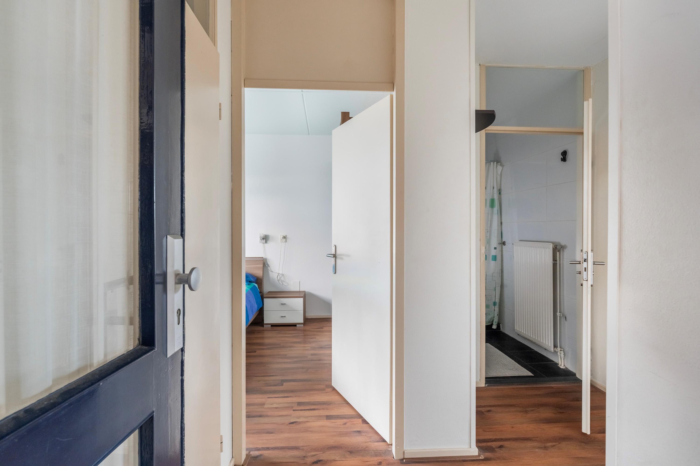 Begane grond: Trapopgang met brievenbussen. Via het trappenhuis bereikt u het appartement. Op de begane grond is een eigen berging ter beschikking.