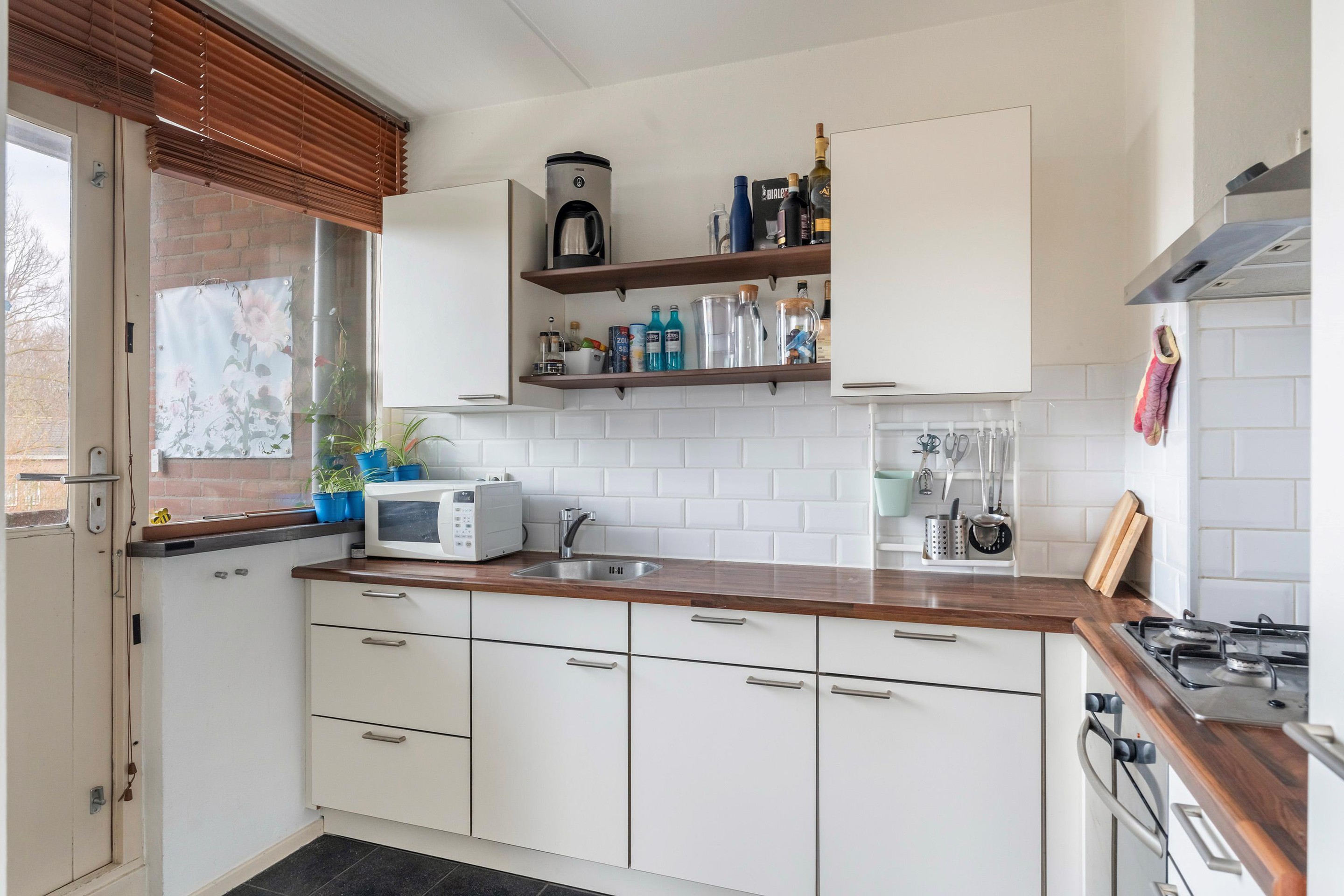 De lichte woonkamer biedt vrij uitzicht over groen. Dankzij de hoekligging profiteer je van extra daglicht – dat merk je meteen! De keuken is functioneel, praktisch ingericht en heeft prettig contact met de woonkamer. Vanuit de keuken is het 2e balkon (NO) bereikbaar. Dit balkon kan ook bij de woning betrokken worden waardoor er extra ruimte ontstaat.