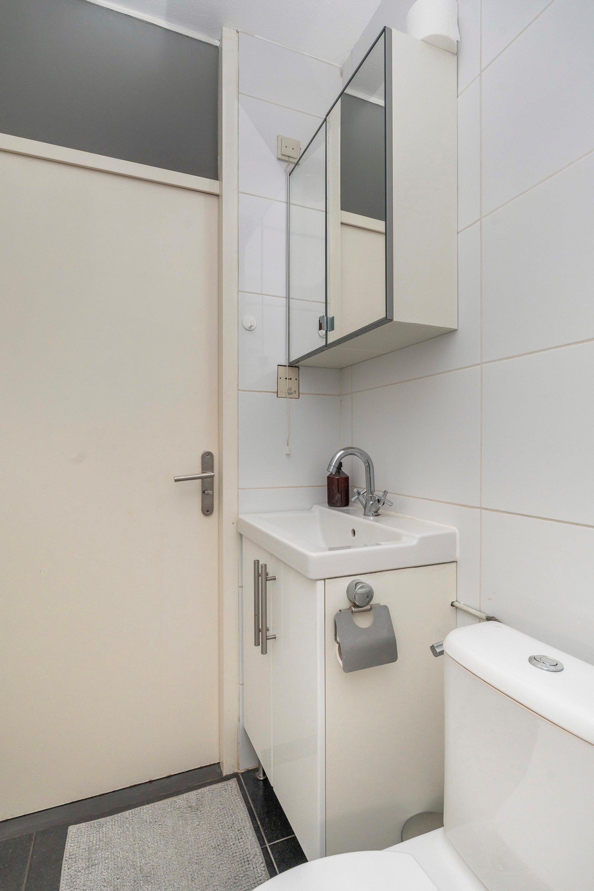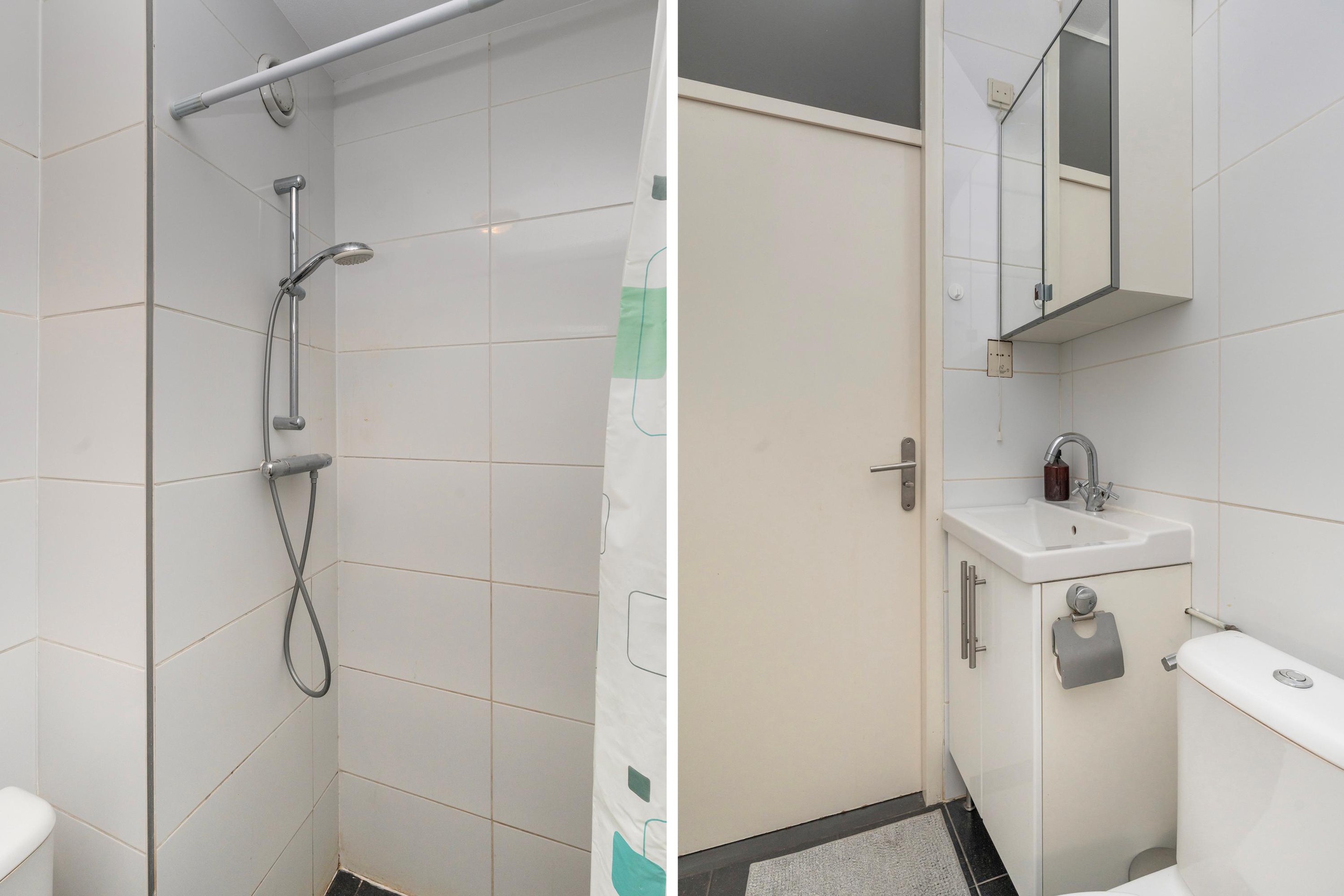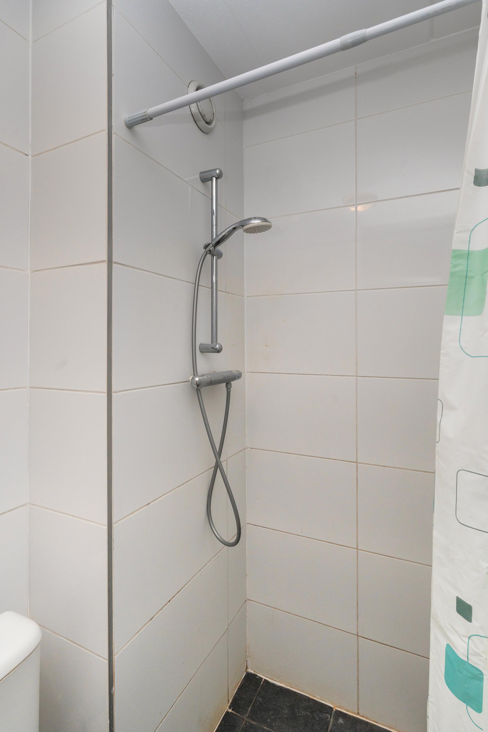 De slaapkamer is royaal van formaat (ca. 13 m2) en geeft toegang tot het zonnige inpandige balkon (ZW), gelegen op het zuiden, een fijne plek voor je ochtendkoffie of een goed boek. De badkamer is netjes, volledig betegeld en voorzien van een inloopdouche, toilet, wastafelmeubel en een radiator. De slaapkamer, hal en woonkamer zijn voorzien van een laminaatvloer. De badkamer, keuken en inpandige berging zijn voorzien van een plavuizen vloer.