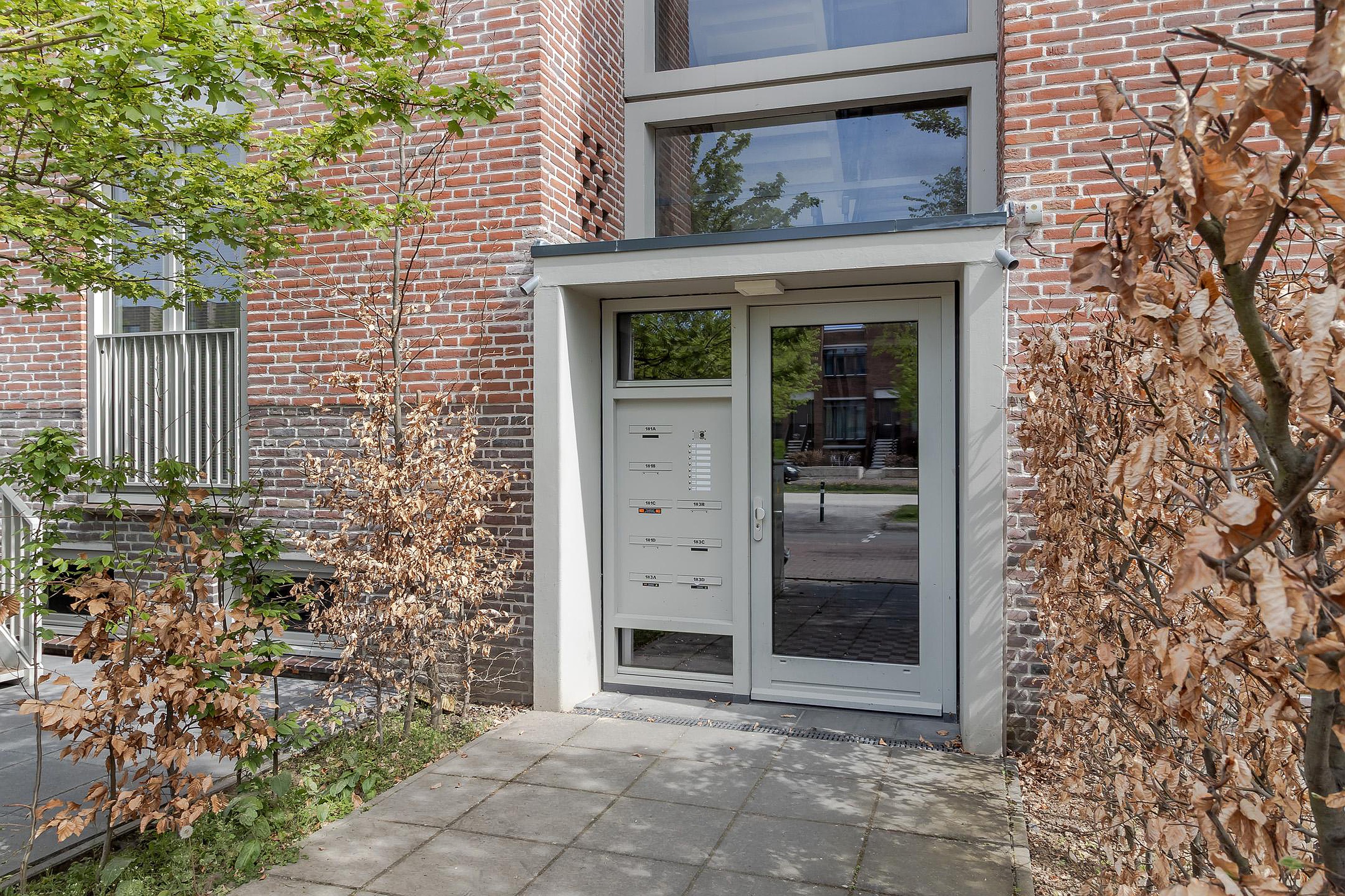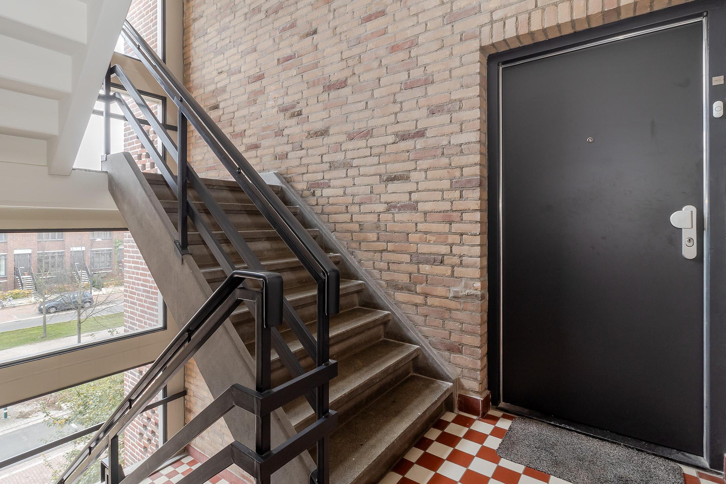 Gezamenlijke entree met bellentableau, brievenbussen en trappenhuis.