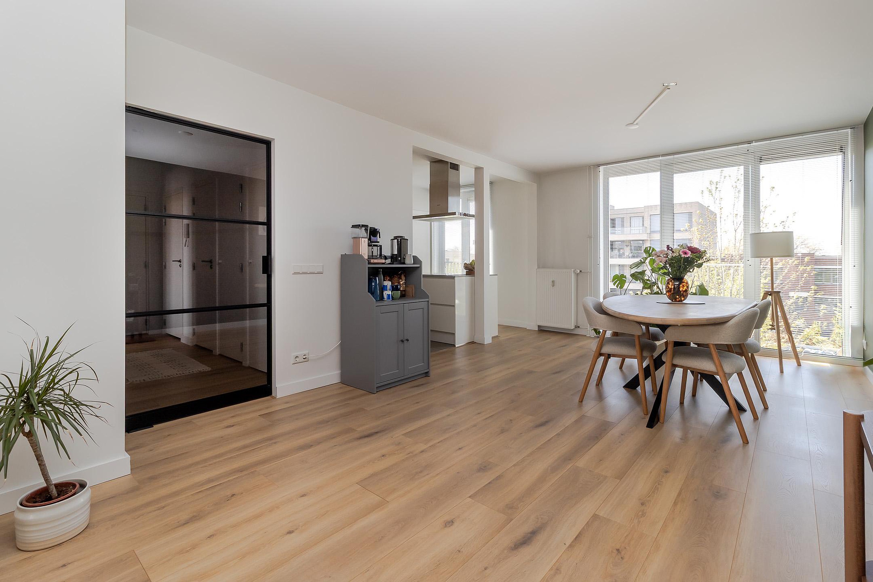 - Het appartement is voorzien van een laminaatvloer gecombineerd met een tegelvloer;