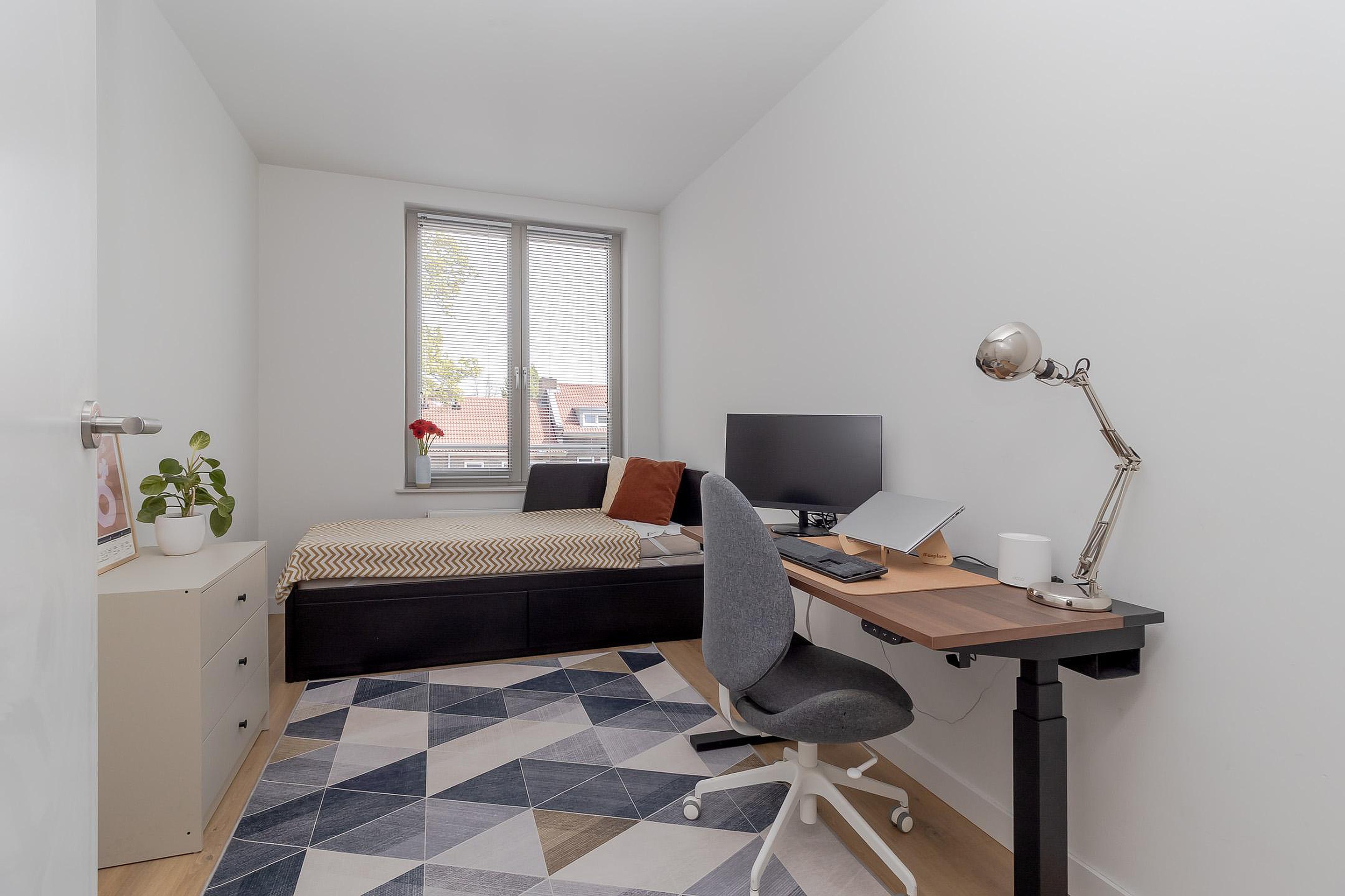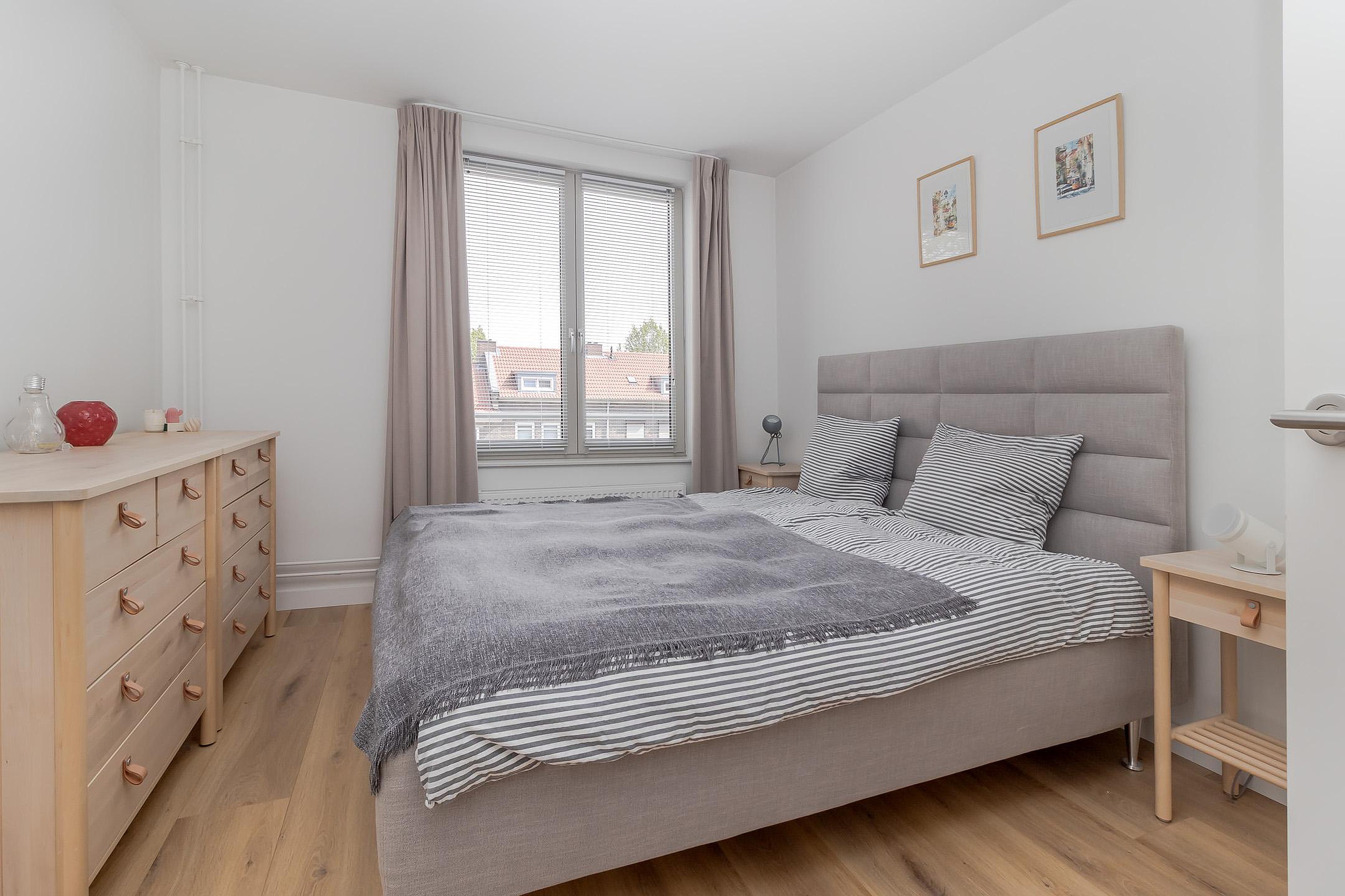 Het appartement beschikt over twee slaapkamers en beiden zijn aan de achterzijde gesitueerd. Slaapkamer 1 heeft een afmeting van ca. 13m2 en slaapkamer 2 heeft een afmeting van ca. 10m2. De geheel betegelde badkamer (2m2) beschikt over een douche met wastafel, wastafelmeubel, spiegel met ledverlichting en designradiator. De separate toiletruimte (1m2) is eveneens deels betegeld en voorzien van een zwevend closet en fonteintje.