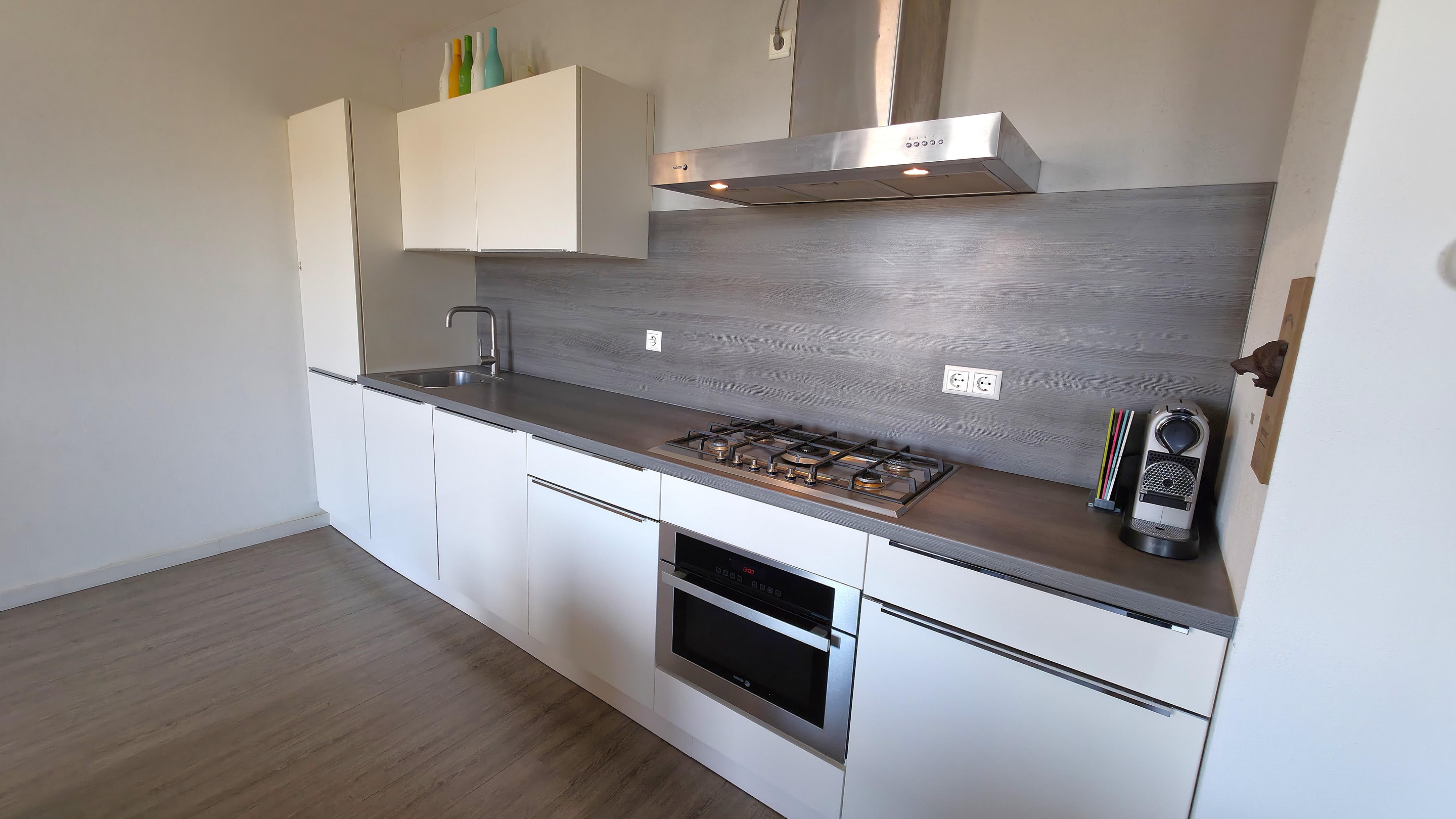 De open keuken sluit naadloos aan op de woonkamer en is volledig uitgerust met diverse inbouwapparatuur, waaronder een vaatwasser, combimagnetron en gaskookplaat. Praktisch ingericht en klaar voor zowel een snelle maaltijd als een uitgebreid diner.