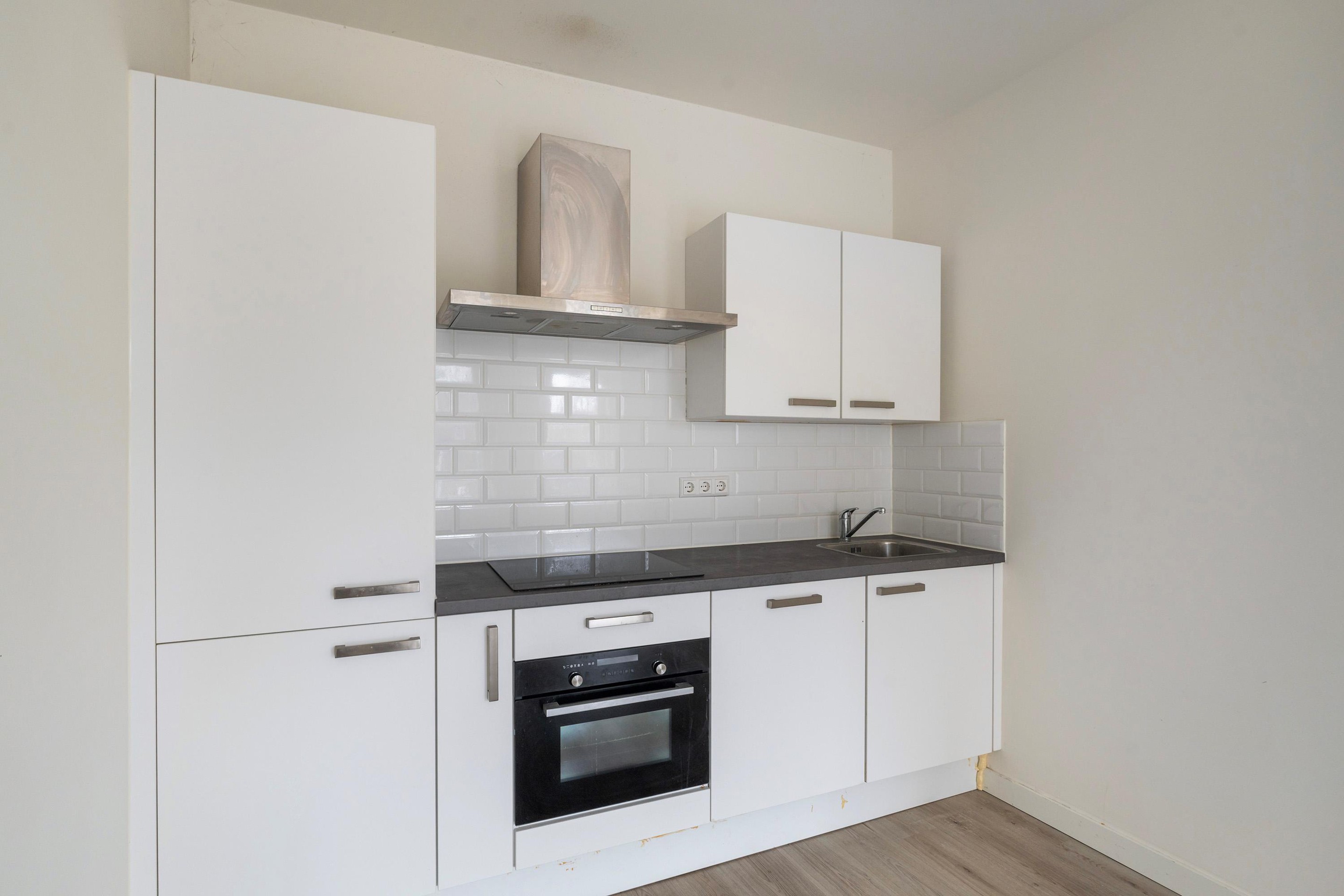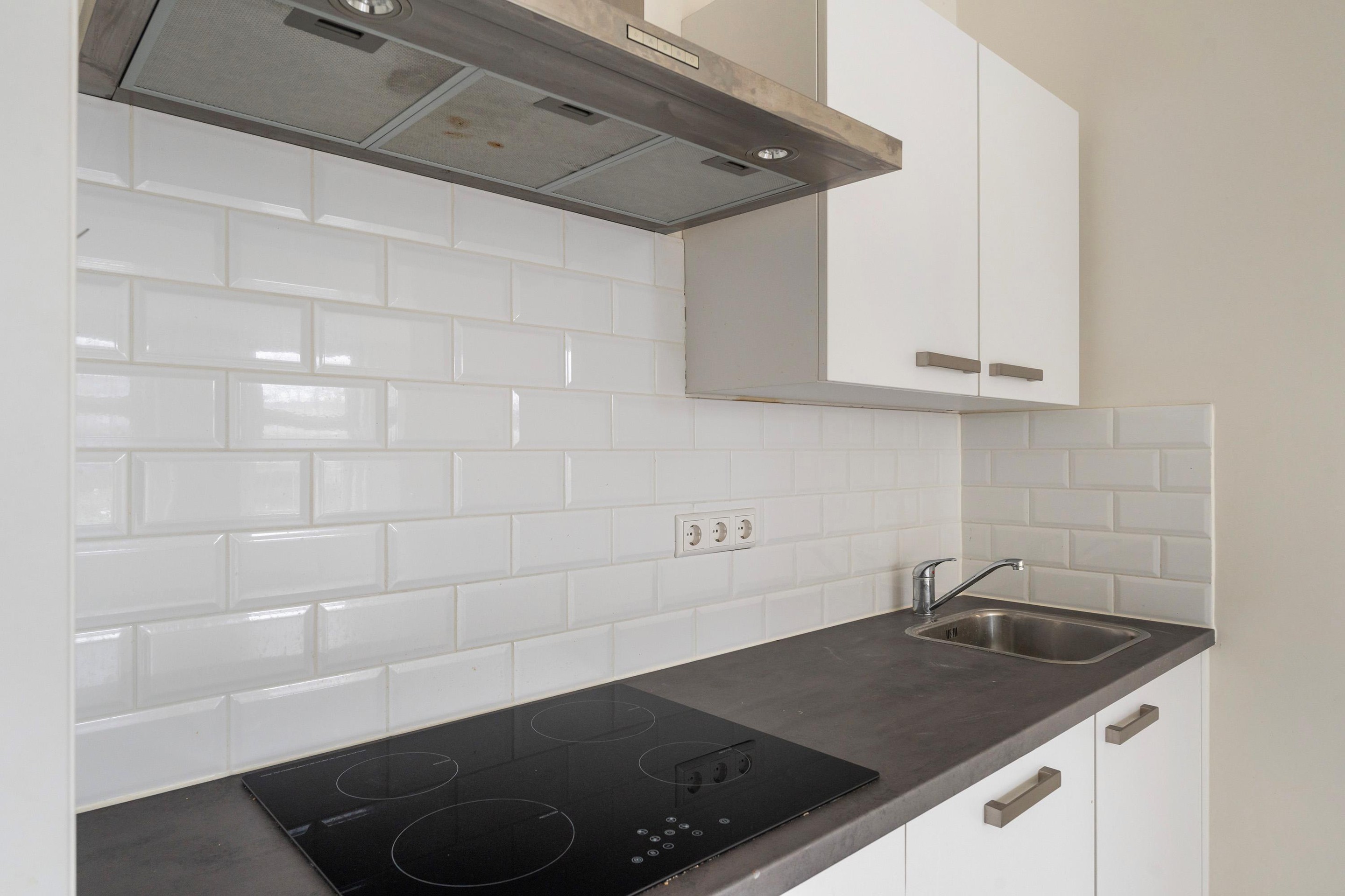 De lichte woonkamer vormt het hart van de woning en sluit aan op een open keuken. De ruimte voelt overzichtelijk en functioneel aan, met voldoende plaats voor een zithoek en eettafel.